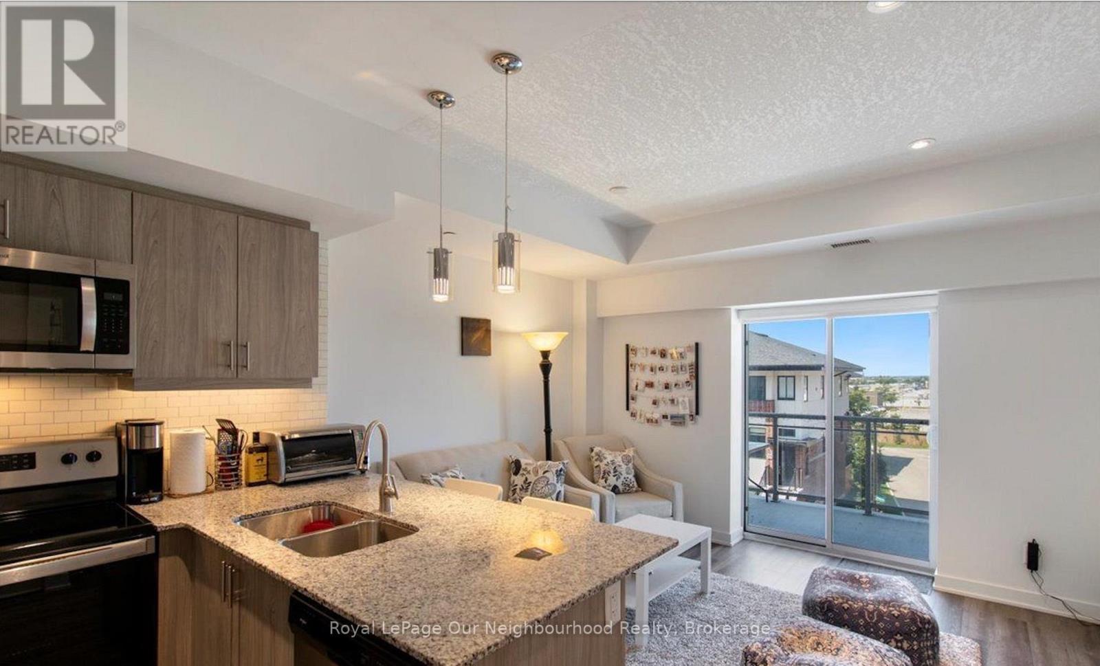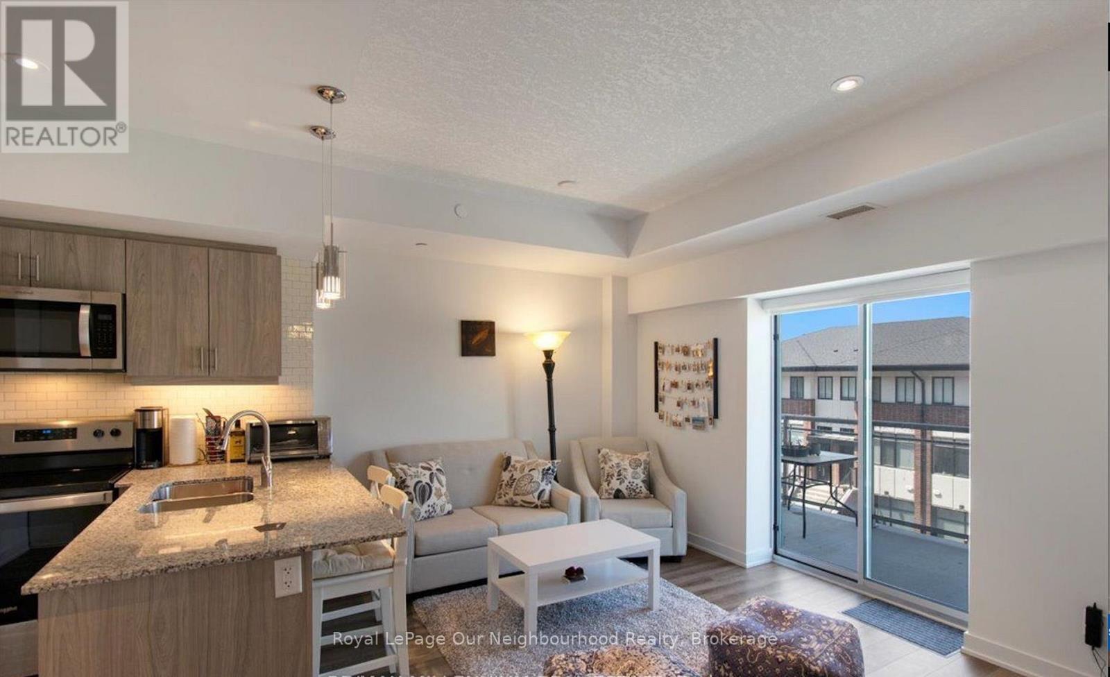 Welcome to this beautifully maintained 1-bedroom suite in the sought-after Monterey Heights community! Showcasing a like-new condition, this stylish unit features a contemporary kitchen complete with stainless steel appliances, granite countertops, sleek cabinetry with under-mount lighting, and a spacious breakfast bar-perfect for casual dining or entertaining.The bright and inviting living area offers pot lights and seamless access to a generous 79 sq. ft. private balcony, ideal for relaxing or enjoying your morning coffee. Additional highlights include in-suite laundry and ample storage throughout for added convenience. Very Close To Highway 403, Schools, Many Shopping Centers, Parks, Golf Club And Bus Routes. 1 Underground Parking Spot And Access To Gym. A perfect blend of comfort and modern living in a prime Ancaster location! (id:64974)