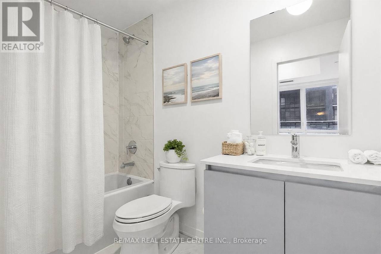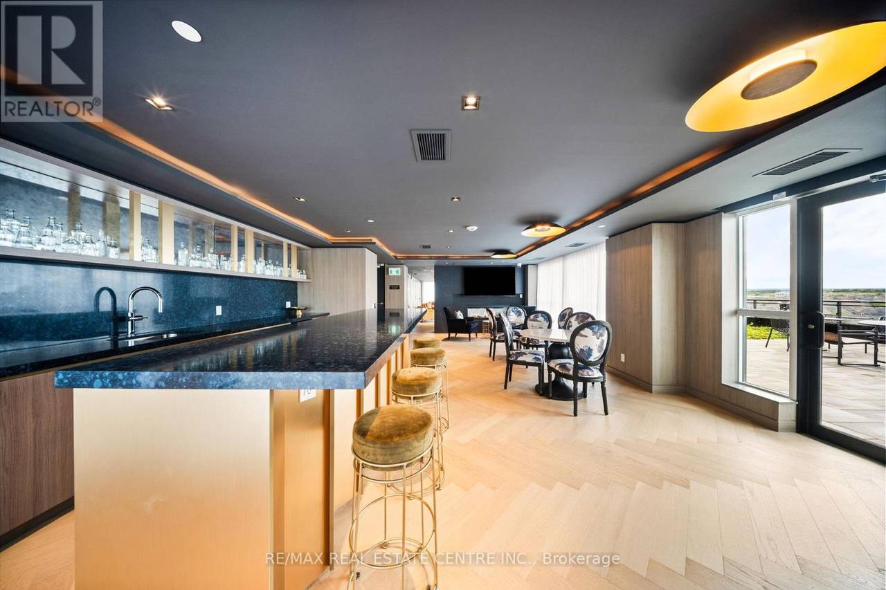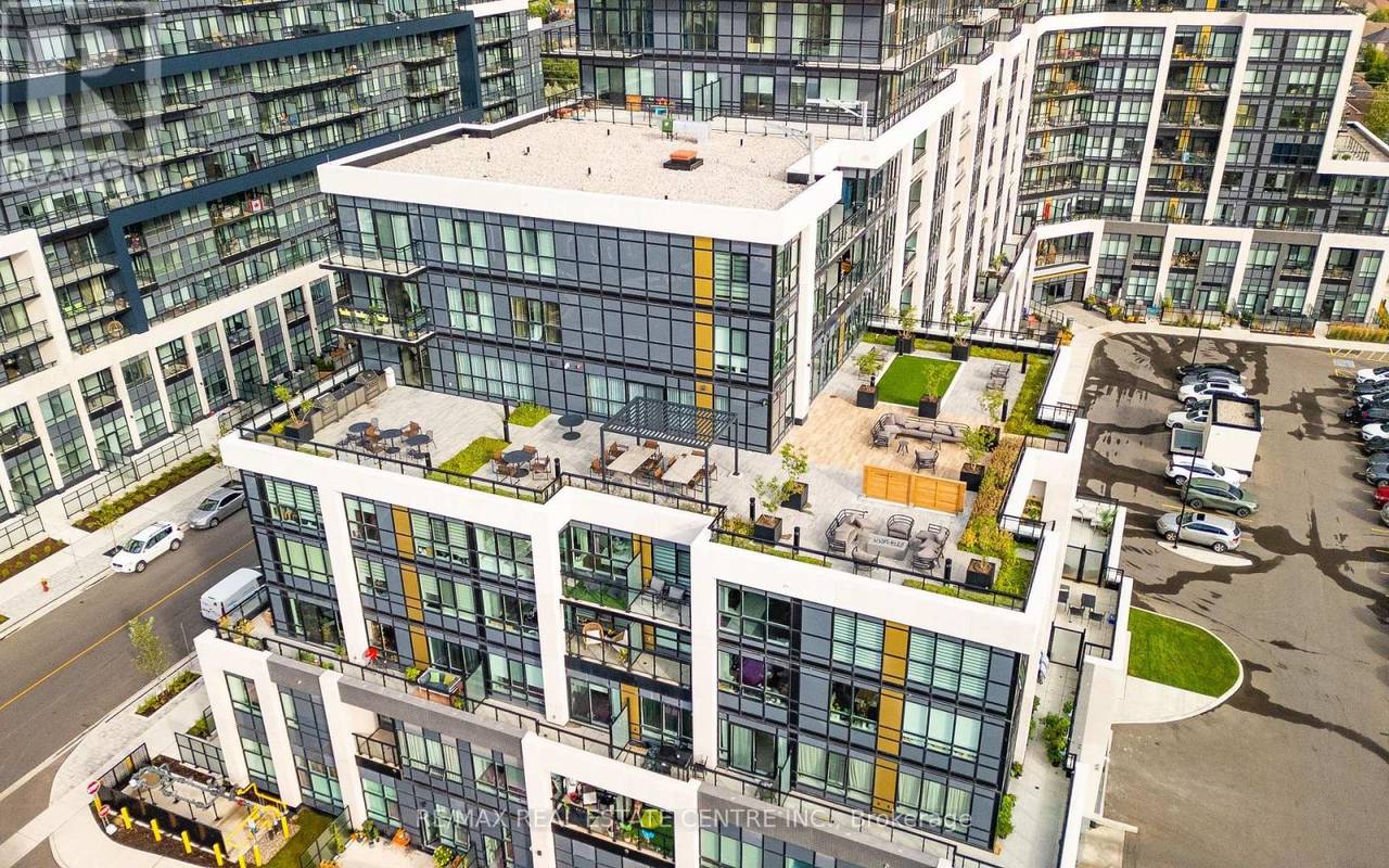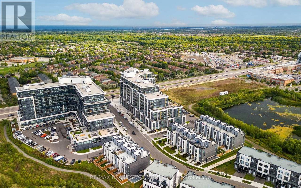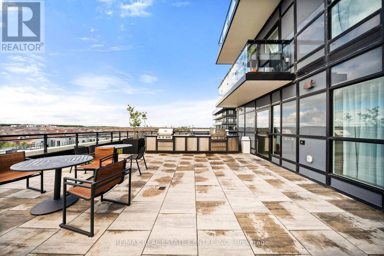Welcome to Distrikt Trailside in sought-after Oakville. Condo Living Redefined! Discover boutique condo living at its finest in this recently completed building, offering modern finishes, outstanding amenities, and stunning curb appeal. Perfectly positioned with an unobstructed view, this residence combines contemporary design with everyday convenience. Step into the grand lobby, complete with 24-hour concierge service, onsite management, and secure parcel storage. Residents enjoy a host of lifestyle amenities including a furnished rooftop terrace with BBQs, fireside lounge, private dining with chef's kitchen, games room, yoga & pilates studios, pet spa washing station, and a state-of-the-art fitness centre. This beautifully upgraded 1 Bedroom + Den, 2 Bathrooms suite is flooded with natural light and showcases 9' ceilings, floor-to-ceiling windows, and wide-plank flooring for a bright, airy feel. The sleek modern kitchen features quartz countertops, stainless steel appliances, and stylish cabinetry, flowing seamlessly into the open living/dining space with a walk-out to a private balcony. The spacious bedroom offers Ensuite bathroom privilege and a large window making it bright. Additional highlights include: In-suite laundry with full-size washer & dryer, Secure underground parking with designated spot, Smart home integration & energy-efficient building systems, Den ideal as a home office, guest room, or flex space. Enjoy walking distance to shopping, restaurants, Sixteen Mile Sports Complex, and scenic trails. Minutes to Glen Abbey Golf Club, Oakville GO Station, top schools, and major highways (403/407/QEW). Grocery, cafes, banks, and daily conveniences are right at your doorstep. This sought-after North Oakville community offers the perfect blend of urban convenience and natural beauty. Whether entertaining on the rooftop, enjoying nearby parks, or commuting with ease, this condo delivers turnkey, contemporary living at its best (id:64974)