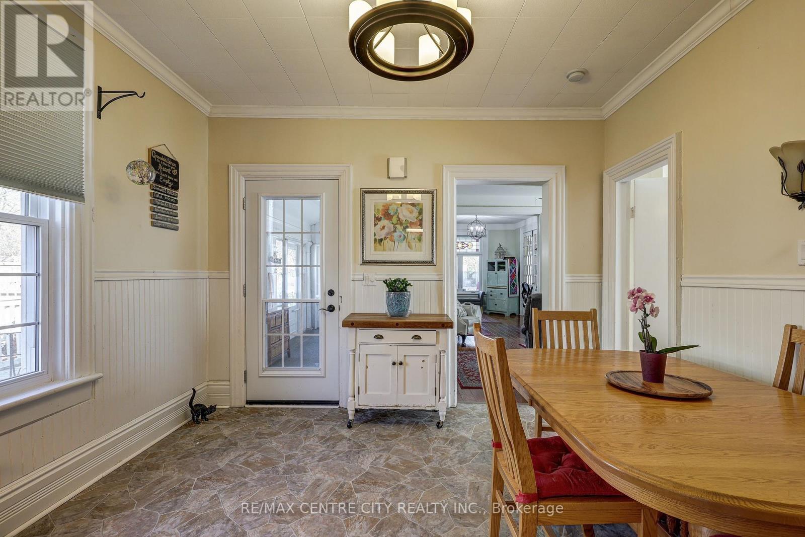 At 316 Talbot St E in Aylmer, you'll find a charming New England-inspired home featuring classic white siding over brick, a welcoming front porch, and warm, traditional interiors that blend timeless character with everyday comfort. Carefully maintained and offered at $529,900, this stately two-storey home reflects early-century proportions with its tall profile, generous windows, and inviting verandah. Set on a large lot, the property offers privacy, charm, and excellent outdoor utility, complemented by two garden sheds and an oversized two-car brick garage ideal for vehicles, hobbies, or workshop use.****Inside, the home offers a generous and versatile layout, with a main floor designed for full-time living without stairs. The living, dining, and kitchen areas flow naturally, creating a warm and functional core, while the study provides a flexible bonus space for work or quiet retreat. A main-floor bedroom adds convenience for multi-generational living or those who prefer single-level comfort. Each level includes a full bath, and the bright sunroom and classic verandah extend the home's charm. Upstairs, two additional bedrooms and an updated 3-piece bath create a private, restful space for children, guests, or a dedicated primary suite.****Mechanical updates include a breaker-panel electrical system, new furnace and central air, durable metal roof, and owned water softener. The treed, private yard extends the living space outdoors-perfect for gardening, play, pets, or entertaining. With its blend of character, practicality, and thoughtful updates, this is a home clearly cared for and ready for its next chapter.**--- (id:64974)
