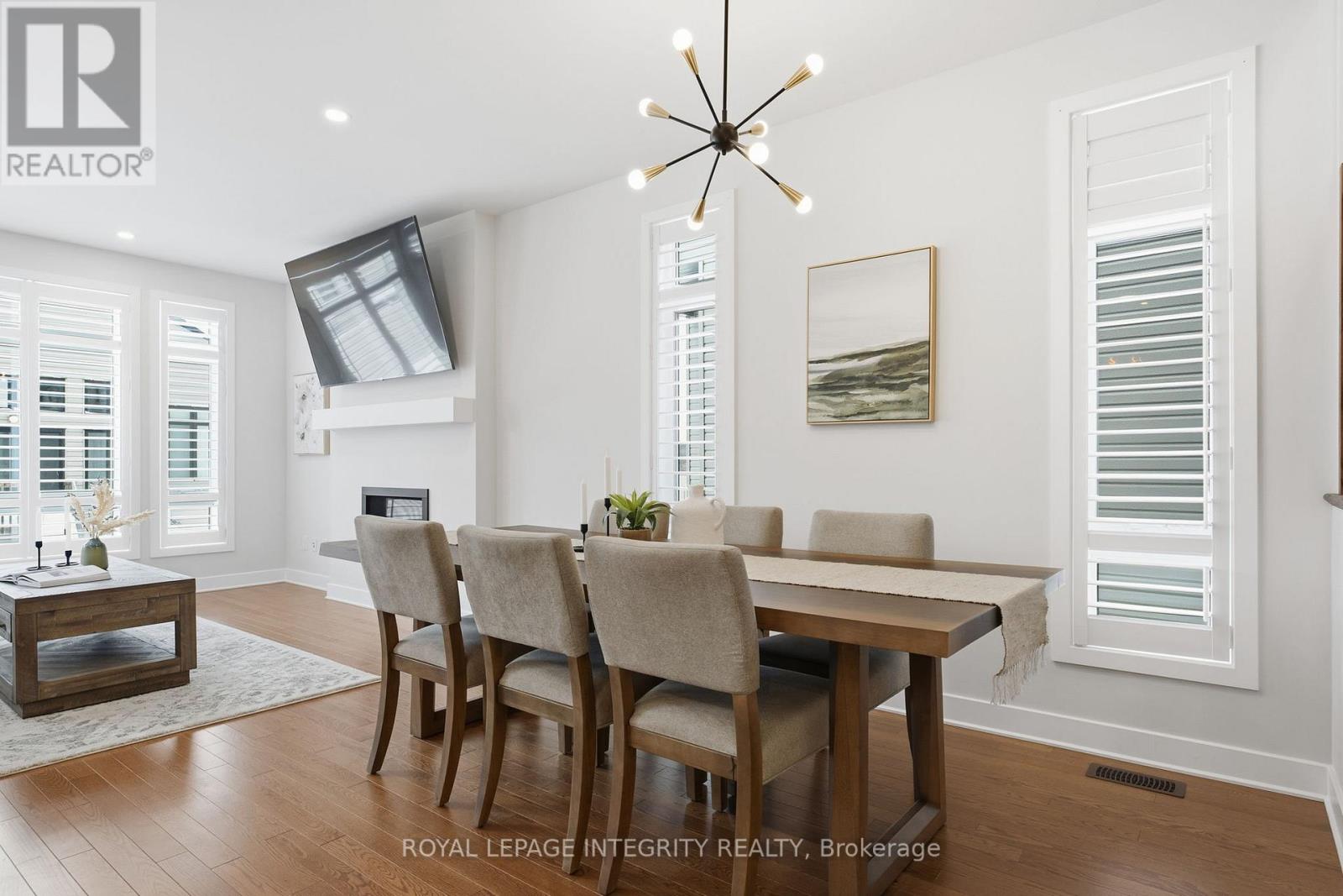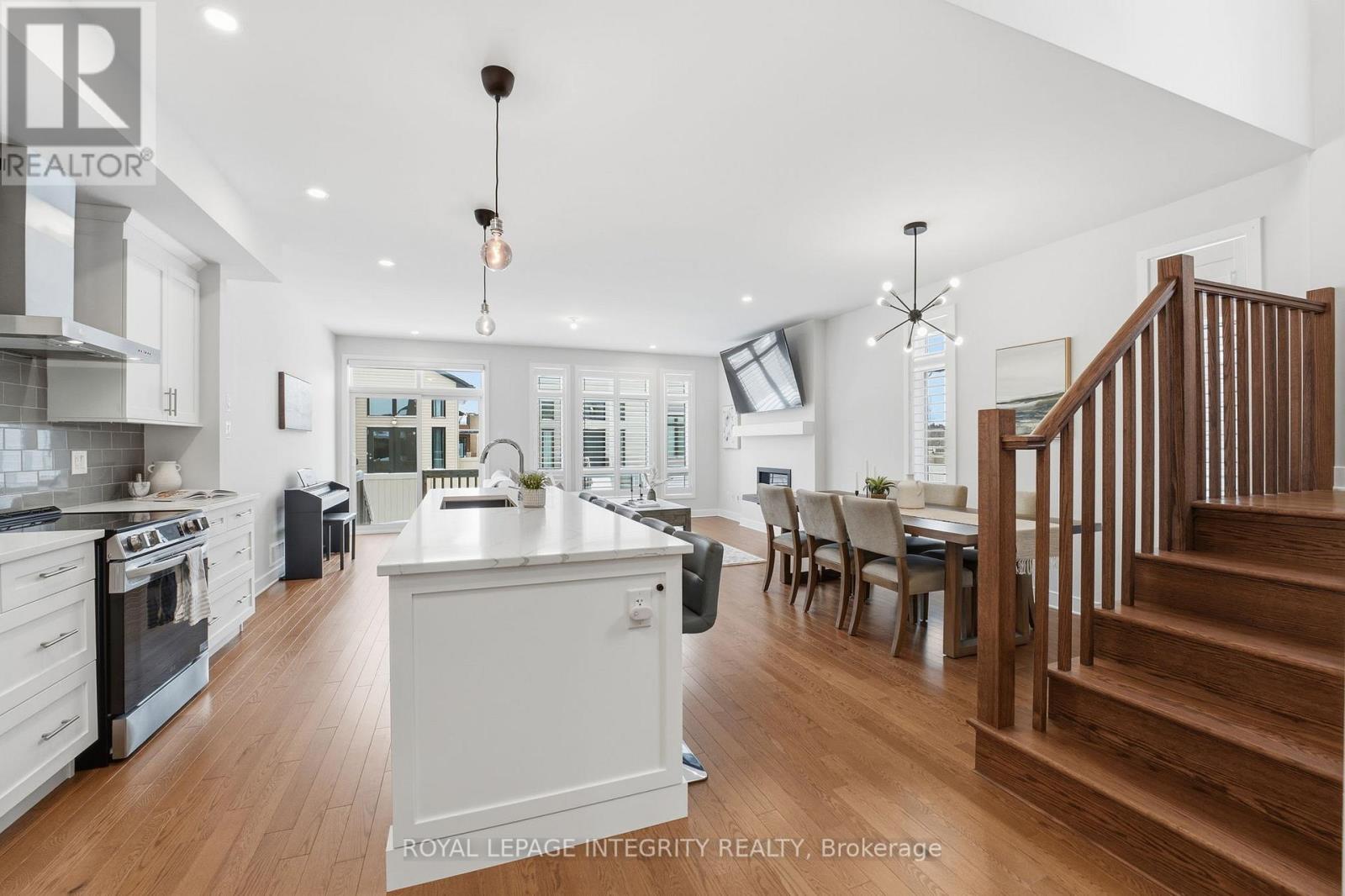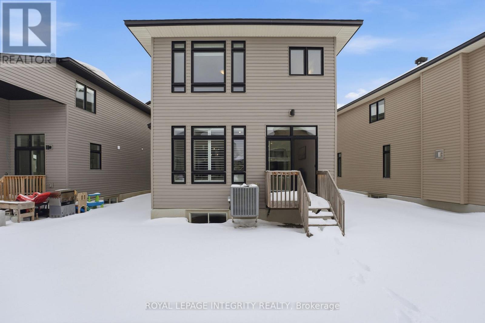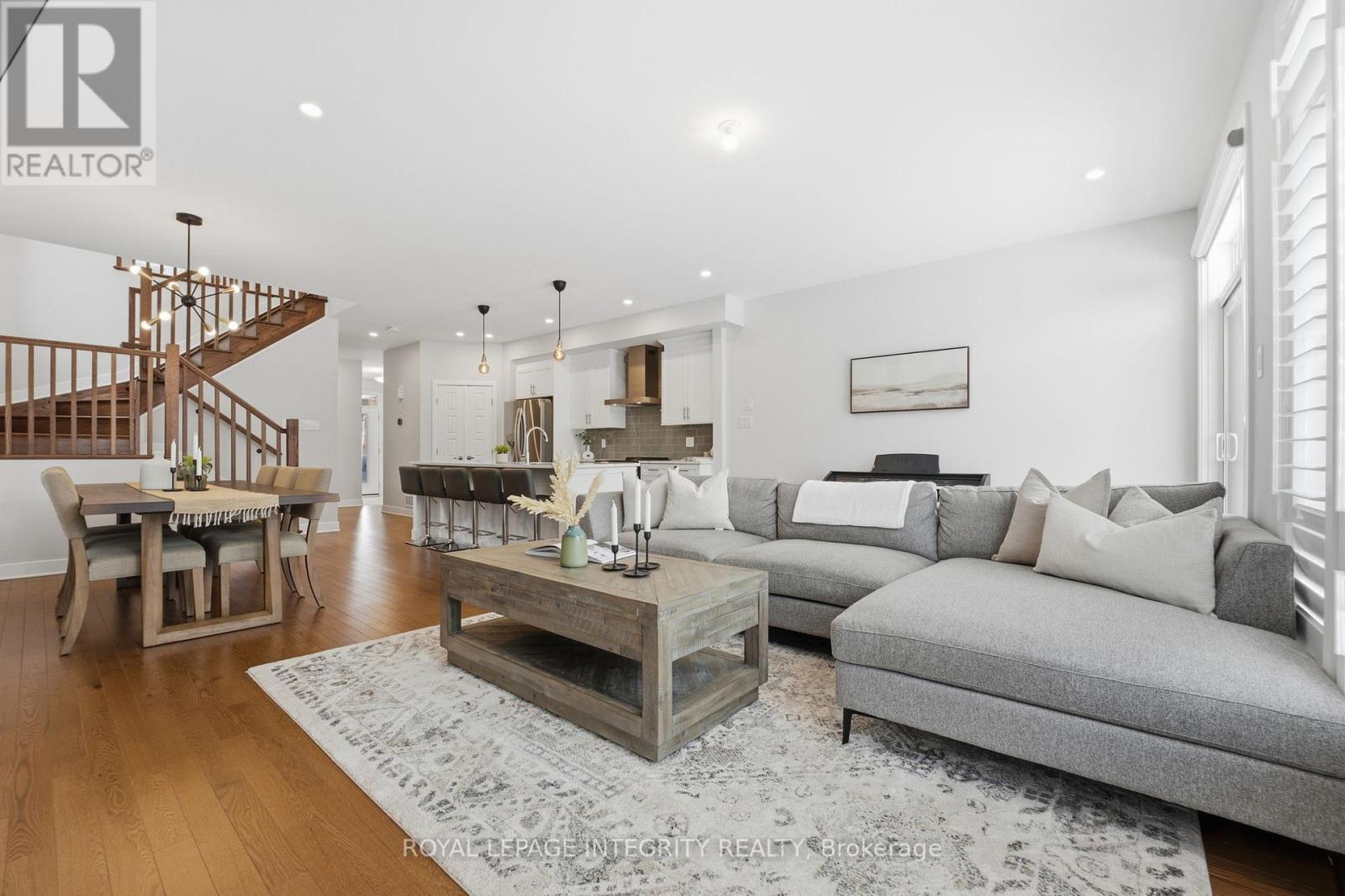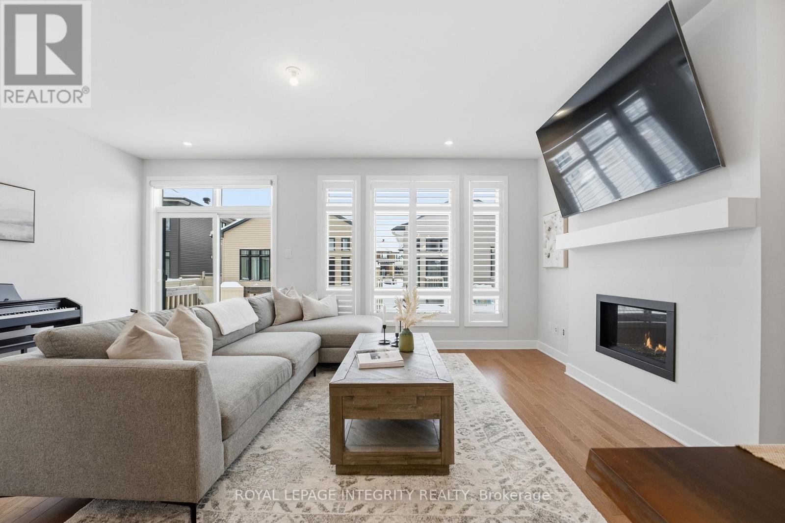Welcome to this impeccably designed two-storey single-family home, built by Urbandale in 2023, offering refined style, generous space, and modern comfort just 30 minutes from Ottawa in the growing town of Kemptville. From the moment you arrive, the home impresses with its double driveway, oversized two-car garage, and welcoming front entrance. Step inside to a spacious foyer that opens into a thoughtfully designed open-concept main level, ideal for both everyday living and elegant entertaining. The chef-inspired kitchen is a true centrepiece, showcasing quartz countertops, stainless steel appliances, upgraded cabinetry, and a walk-in pantry for exceptional storage. The kitchen flows seamlessly into the sun-filled living and dining areas, highlighted by gleaming hardwood floors, custom California shutters, and stylish pot lights and upgraded light fixtures throughout. Upstairs, the home offers four generously sized bedrooms and two full bathrooms. The luxurious primary suite is accessed through double doors and serves as a private retreat, complete with a spa-like five-piece ensuite featuring a soaker tub, glass walk-in shower, and double vanity. Three additional bedrooms, a well-appointed four-piece main bath, and a convenient upper-level laundry room and custom blinds in every room complete the second floor. The fully finished basement provides valuable additional living space with a large recreation room and ample pot lighting-perfect for a home theatre, gym, or playroom. Outside, the partially fenced backyard offers green space ready to be customized for relaxing, entertaining, or family enjoyment. A perfect blend of modern design, quality craftsmanship, and functionality, this move-in-ready home is ideal for families seeking comfort, style, and long-term value. (id:64974)