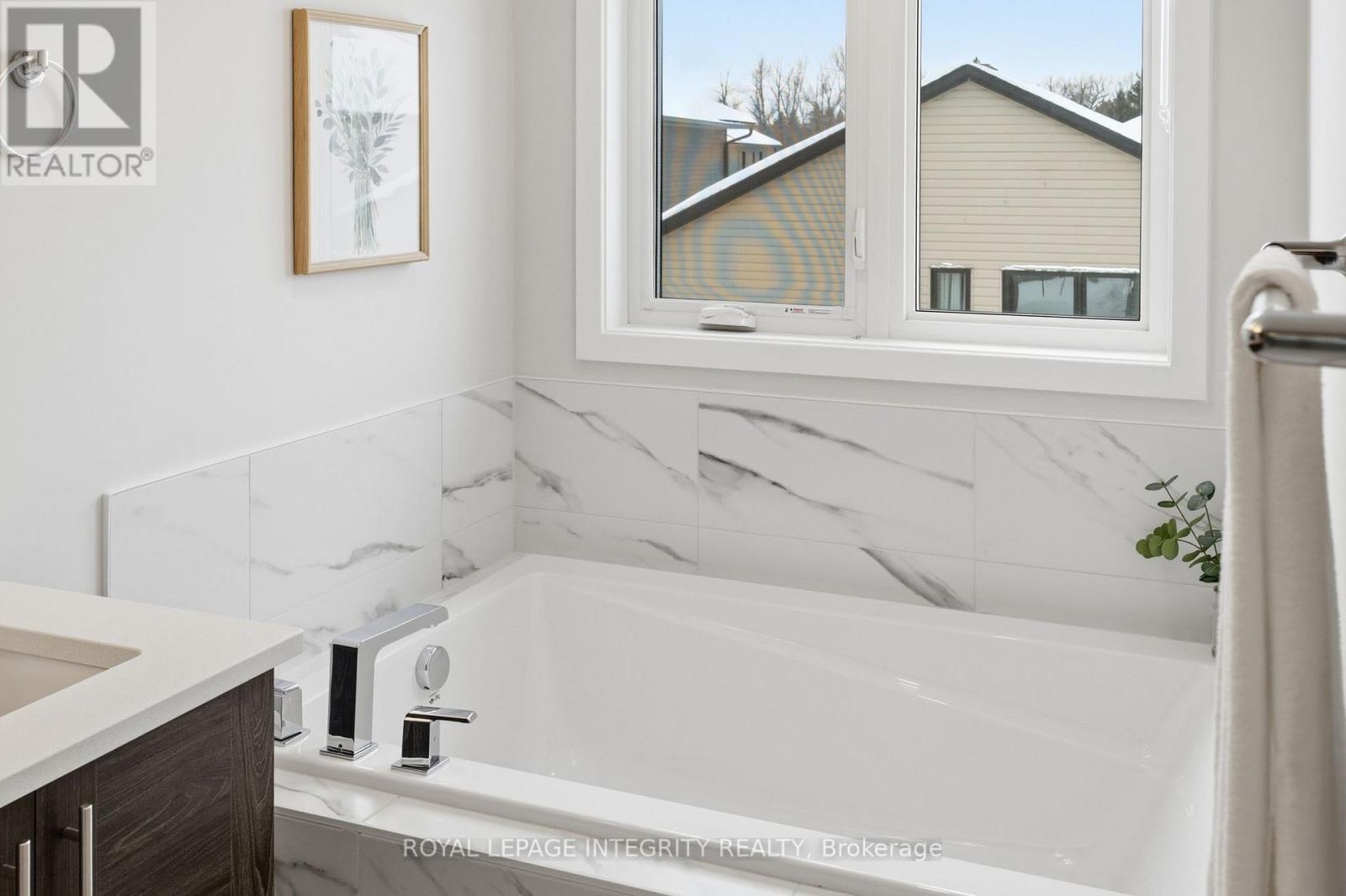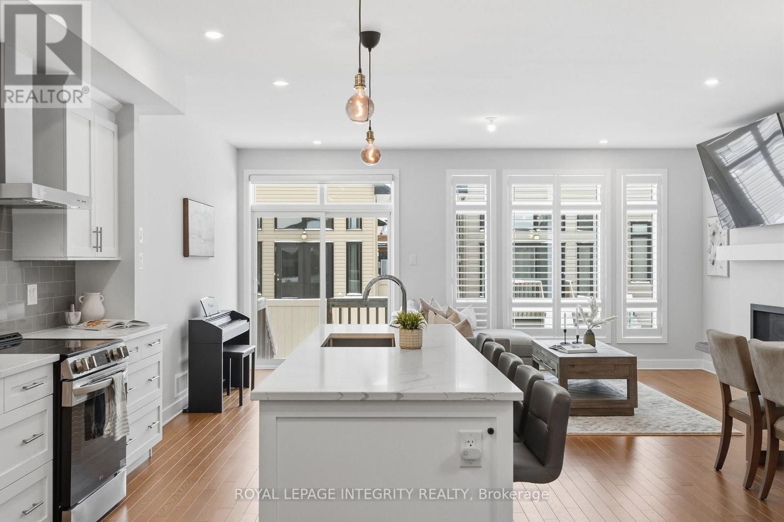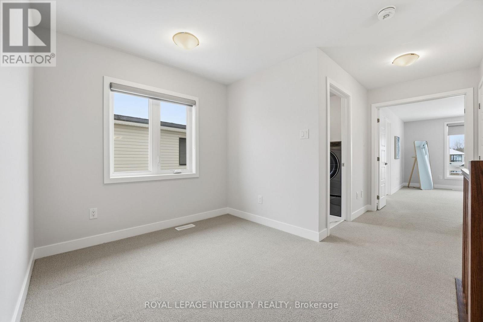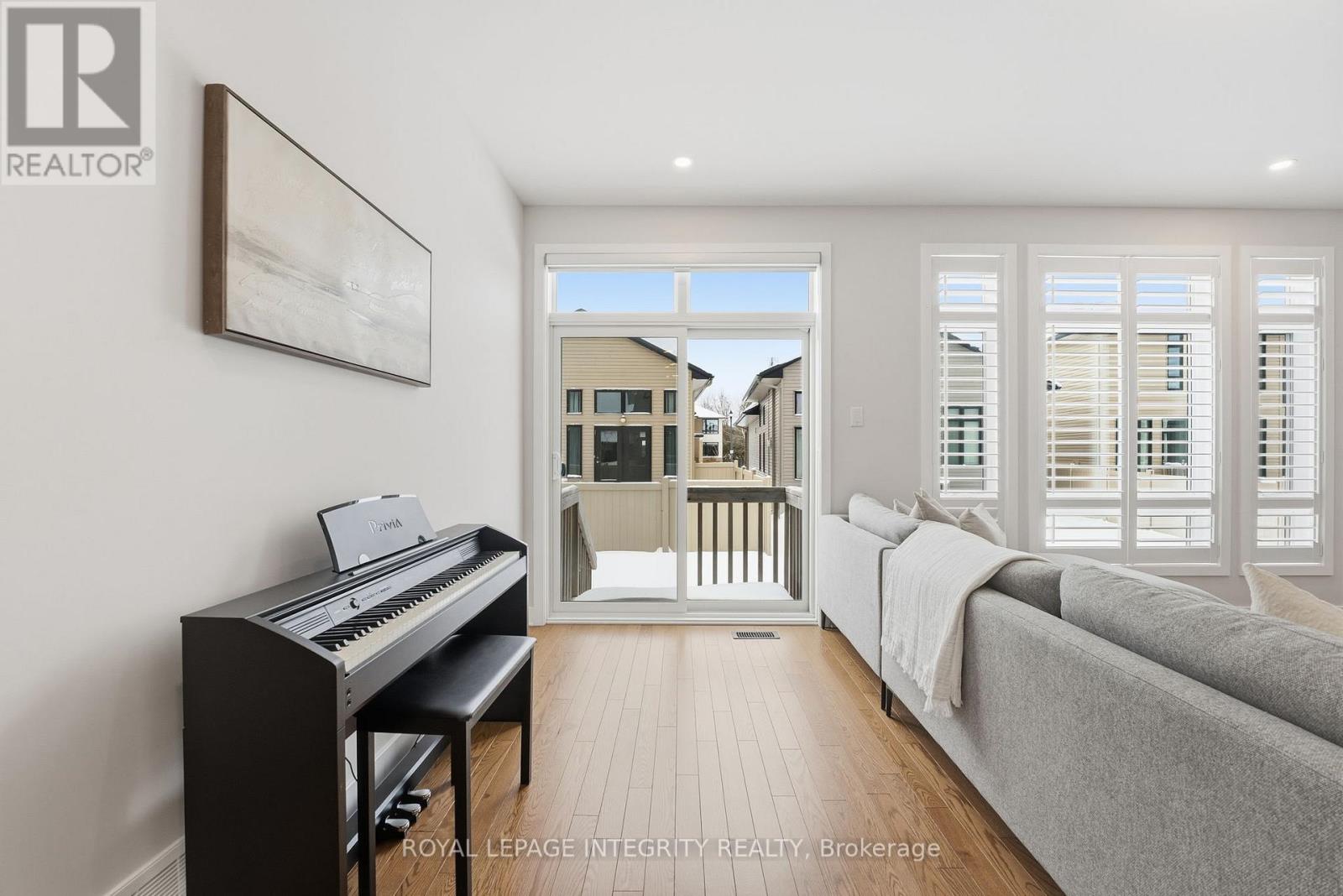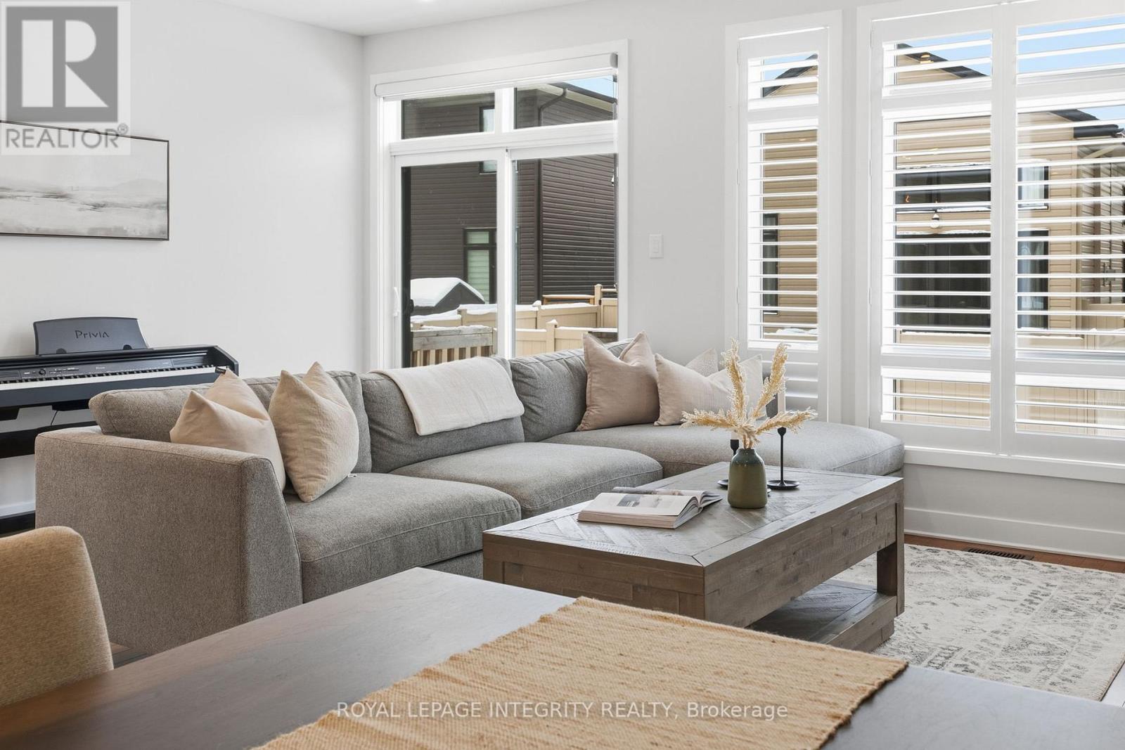 Welcome to this impeccably designed two-storey single-family home, built by Urbandale in 2023, offering refined style, generous space, and modern comfort just 30 minutes from Ottawa in the growing town of Kemptville. From the moment you arrive, the home impresses with its double driveway, oversized two-car garage, and welcoming front entrance. Step inside to a spacious foyer that opens into a thoughtfully designed open-concept main level, ideal for both everyday living and elegant entertaining. The chef-inspired kitchen is a true centrepiece, showcasing quartz countertops, stainless steel appliances, upgraded cabinetry, and a walk-in pantry for exceptional storage. The kitchen flows seamlessly into the sun-filled living and dining areas, highlighted by gleaming hardwood floors, custom California shutters, and stylish pot lights and upgraded light fixtures throughout. Upstairs, the home offers four generously sized bedrooms and two full bathrooms. The luxurious primary suite is accessed through double doors and serves as a private retreat, complete with a spa-like five-piece ensuite featuring a soaker tub, glass walk-in shower, and double vanity. Three additional bedrooms, a well-appointed four-piece main bath, and a convenient upper-level laundry room and custom blinds in every room complete the second floor. The fully finished basement provides valuable additional living space with a large recreation room and ample pot lighting-perfect for a home theatre, gym, or playroom. Outside, the partially fenced backyard offers green space ready to be customized for relaxing, entertaining, or family enjoyment. A perfect blend of modern design, quality craftsmanship, and functionality, this move-in-ready home is ideal for families seeking comfort, style, and long-term value. (id:64974)