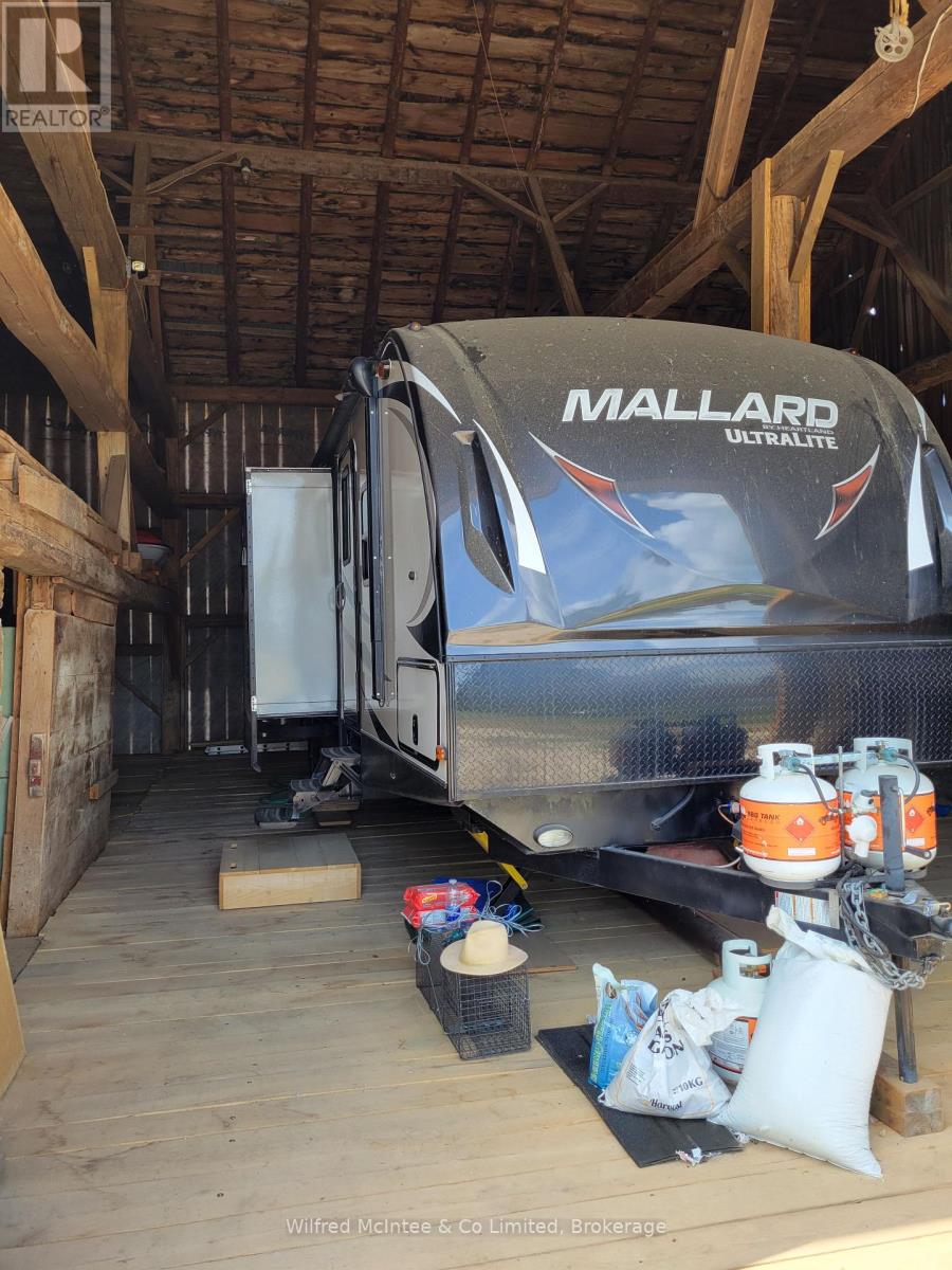 55 acres of scenic farm with a 26acre field, Osprey Loam soil, currently in beans. The 45'X40' bank barn has been meticulously upkept and renovated to feature a large walk-out deck/balcony overlooking the fields and indoor dry storage with new flooring for an RV with septic, well and hydro hook-up. Plus additional storage shed 19'4"x10'5". Relax and explore the trails, pond, and bush on this great property. Whether seeking a hunt camp, to add some land to your portfolio, or to build - this property has tons of potential. Conveniently located along Hwy 6 just South of Chatsworth. ( 35' 2017 Mallard M33 RV included ). 94acres with 48 workable, on South property boundary also available; MLS Number: X12919004 (id:64974)