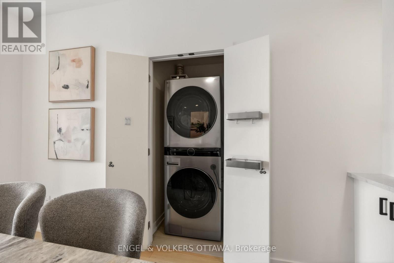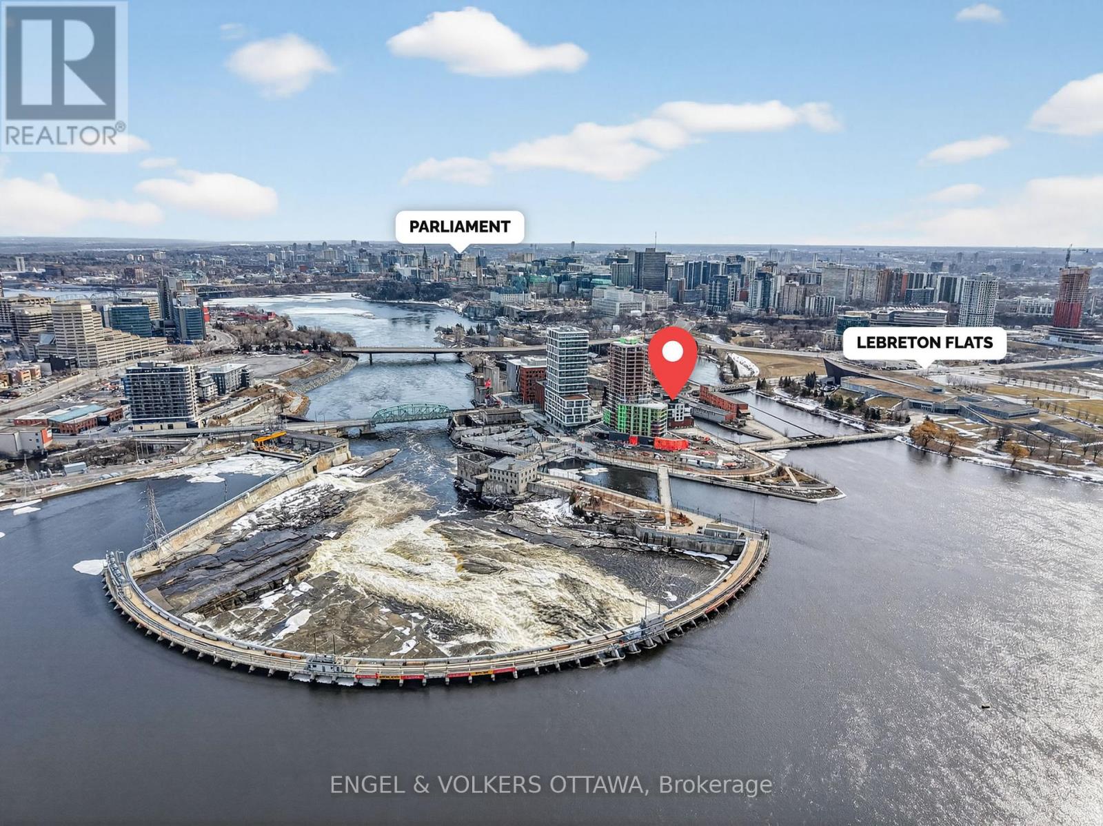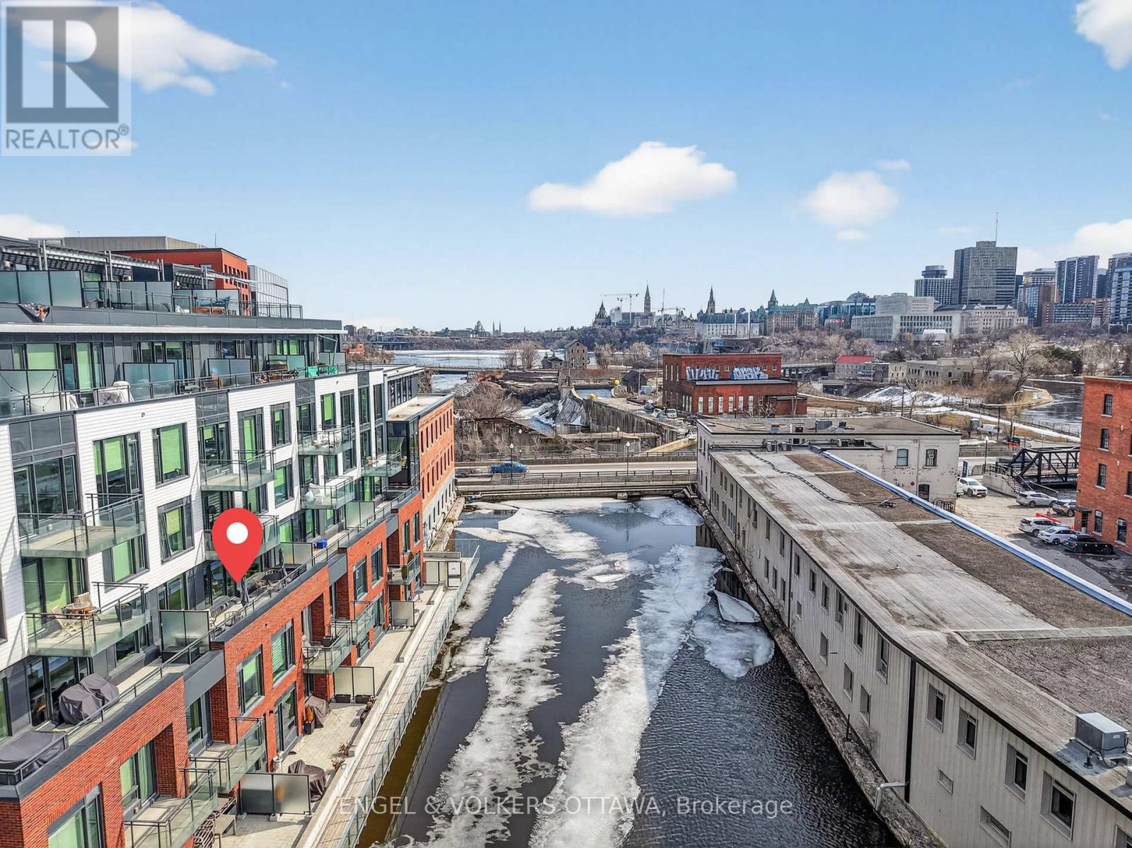 Experience luxurious island living in this beautiful condo in a highly energy-efficient LEED-certified building with views of Parliament Hill & waterfront views of the Ottawa River. The unit features a bright, open concept main living area with 9' ceilings and expansive south-facing windows that fill the space with natural light. The living room flows seamlessly to the balcony, offering a generous outdoor space ideal for both relaxation & entertaining with waterfront views. The kitchen is both functional and stylish, complete with quartz countertops, white cabinetry, stainless steel appliances and a large island with a built-in wine rack and plenty of room for seating, making it great for hosting. The primary bedroom is spacious & features large windows, newly installed custom closets and an ensuite with heated floors and a walk-in shower. A second room is great as a home office or guest bedroom, and it also benefits from excellent natural light. The second full bathroom boasts stunning sleek finishes with a tub/shower combo. This apartment includes in-unit laundry, a spacious storage locker, and an underground garage parking space in an excellent location right by the elevator. Residents of the Kanaal building enjoy premium on-site amenities, including a fitness room located on the same floor as the unit, a library, a pet wash station and secure bicycle storage. Perfectly positioned, this location offers the best of downtown living in a community built for what's next. Just steps to Pimisi LRT, you're seamlessly connected across the city, with bike paths and scenic waterfront trails right outside your door. Set along the Ottawa River & minutes from the Canadian War Museum, the new Ottawa Public Library and neighbourhoods like Hintonburg, Little Italy & more. With LeBreton Flats continuing to evolve, including plans for the likely future home of the Ottawa Senators, this is a rare opportunity to be part of one of the city's most exciting and transforming areas. (id:64974)