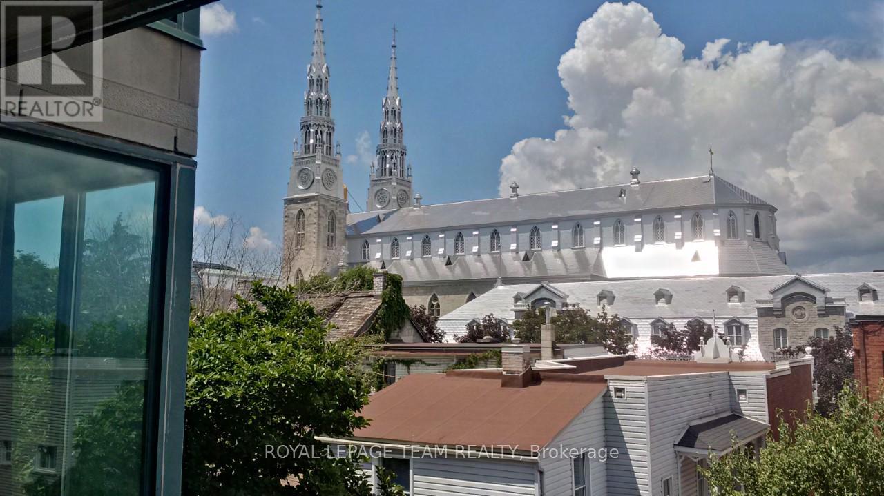 Enjoy living in the trendy, historic and vibrant ByWard Market neighbourhood steps to restaurants, shops and cafes, Global Affairs Canada, Parliament, NAC, uOttawa, Ntl Gallery, numerous parks, walking/bike trails and the Ottawa River. Gallery Court Condos provide you with an urban lifestyle right at your door. All is within walking distance... Chic and stylish, this 1-bdr condo lets you entertain in style. Combined lvr/dnr with tall windows/patio doors lead to your private balcony overlooking the Basilica. Kitchen features 4 stainless steel appliances. Bathroom includes stylish vessel sink and storage vanity. In-unit front load laundry. Good size bedroom boasts a double size closet, corner windows and has plenty of room for a home office. Beautiful, easy maintenance dark floors throughout. 1 locker & 1 parking in underground garage for mid-size vehicle included. Great value! (id:64974)