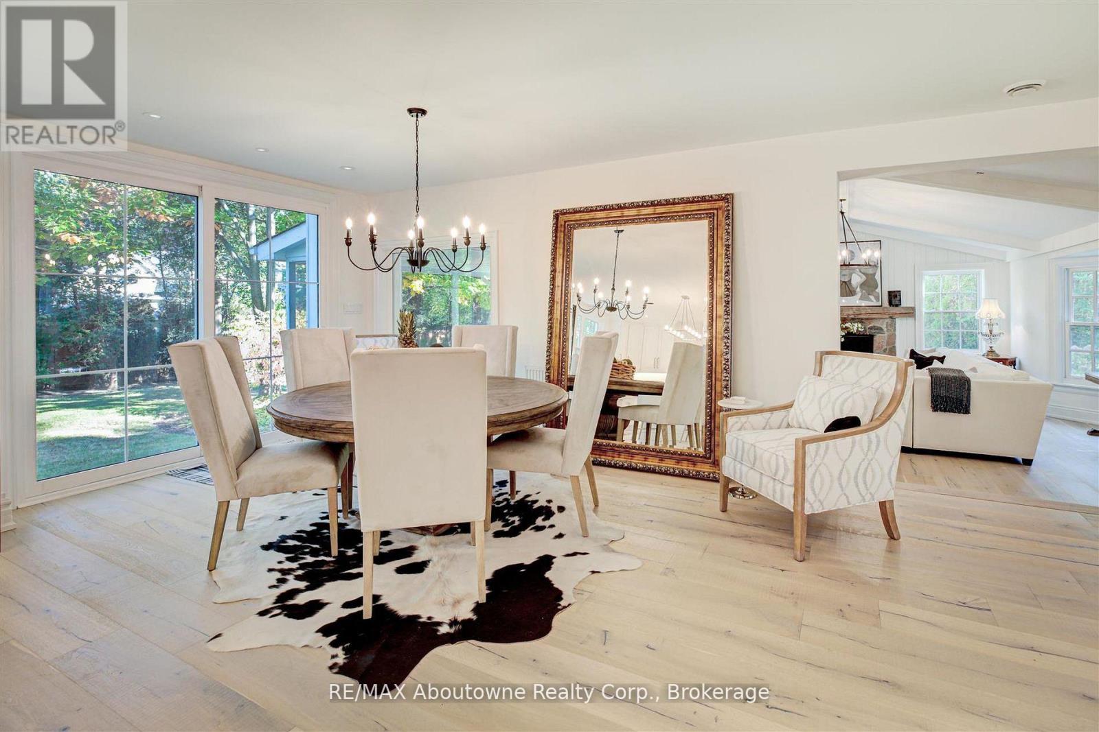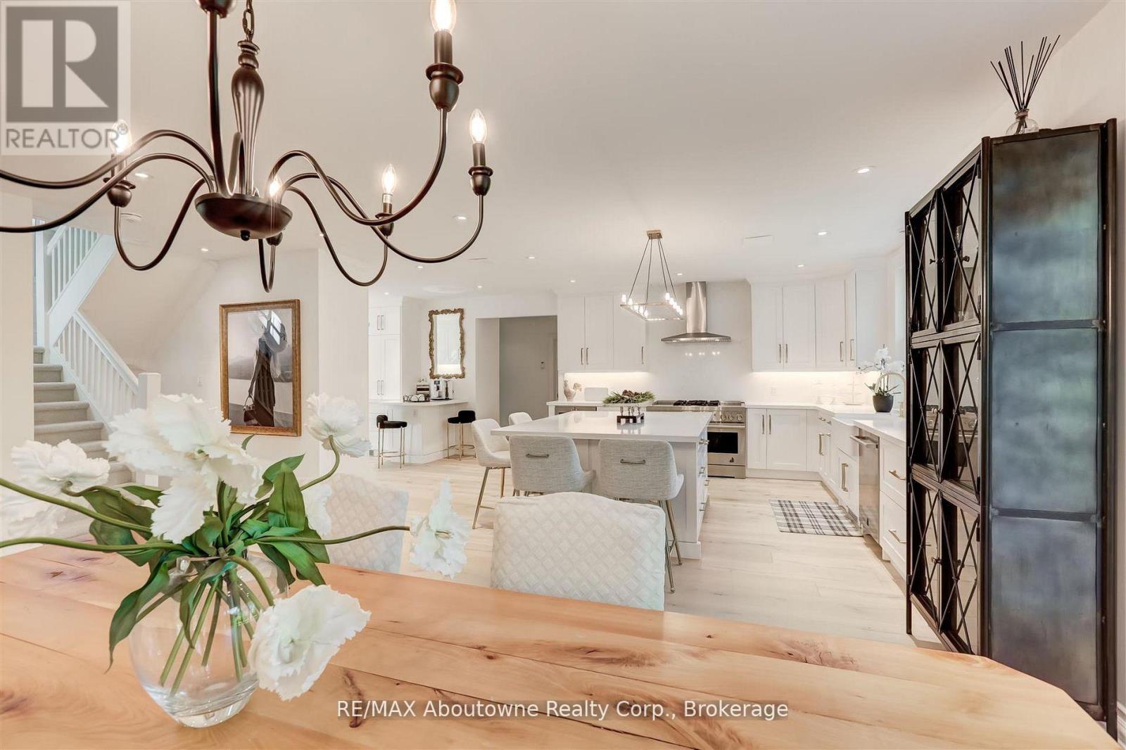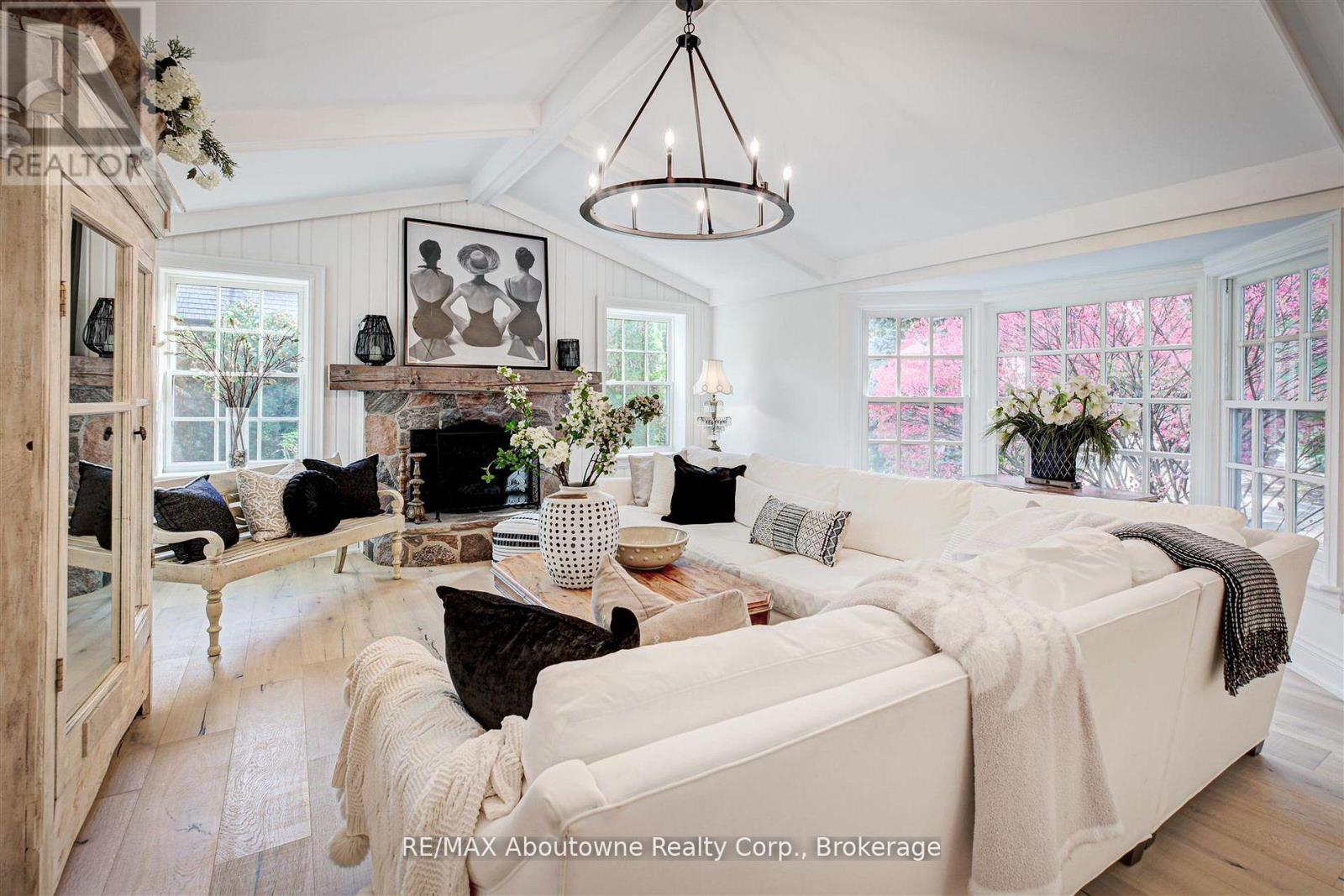Transitional Elegance in the Heart of Olde Oakville. A rare property on one of the community's most coveted streets. Experience refined living in this exceptional residence- set on a triple lot over 1/2 acres with an impressive 154.73 ft frontage, curated for those who value privacy, design and indoor-outdoor living at its finest. Beautifully reimagined in 2024, the main level showcases a sophisticated blend of transitional elegance and casual upscale comfort, perfect for both everyday living and effortless entertaining. A Main Floor Redesigned for Modern Luxury. Step inside to wide-plank oak hardwood floors, luxurious finishes, and stunning sightlines to the property's park-like grounds. The brand-new designer kitchen is a true showpiece, featuring: Main kitchen+ second "messy kitchen" for concealed prep, storage, and small appliances. Silk granite farmhouse sink with brushed gold gooseneck faucet and gold hardware accents throughout.- Oversized picture window overlooking the gardens. Square island with integrated fridge/freezer drawers. Quartz countertops & full-height backsplash in both kitchens. Built-in wine/beverage station. Dedicated coffee bar. A walk-out from the dining room and a large picture window open to views of the serene screened-in sun porch, creating a seamless flow for indoor-outdoor enjoyment. The magnificent great room features dramatic cathedral ceilings, a stone wood-burning fireplace (forced-air assist) with aged beam mantel, and wiring/rough-ins for a full theatre- quality sound system. A second walk-out continues to the sun porch- offering year-round enjoyment framed by nature. Flexible living spaces: Third floor loft/suite ideal for guests, teens, studio or office.4+1 bedrooms, 4 bathrooms, and over 5200 sq ft of total finished living space. Finished basement with heated floors in media room (or current gym). Dust-free heat system with individually controlled room zones. **Remarks continued in Attachments (id:64974)
