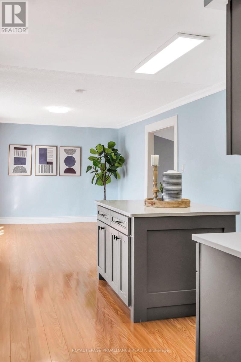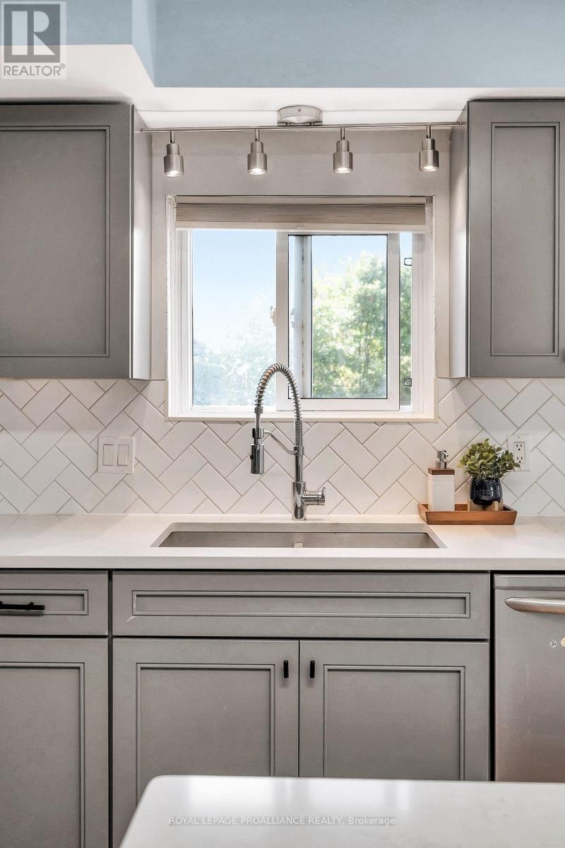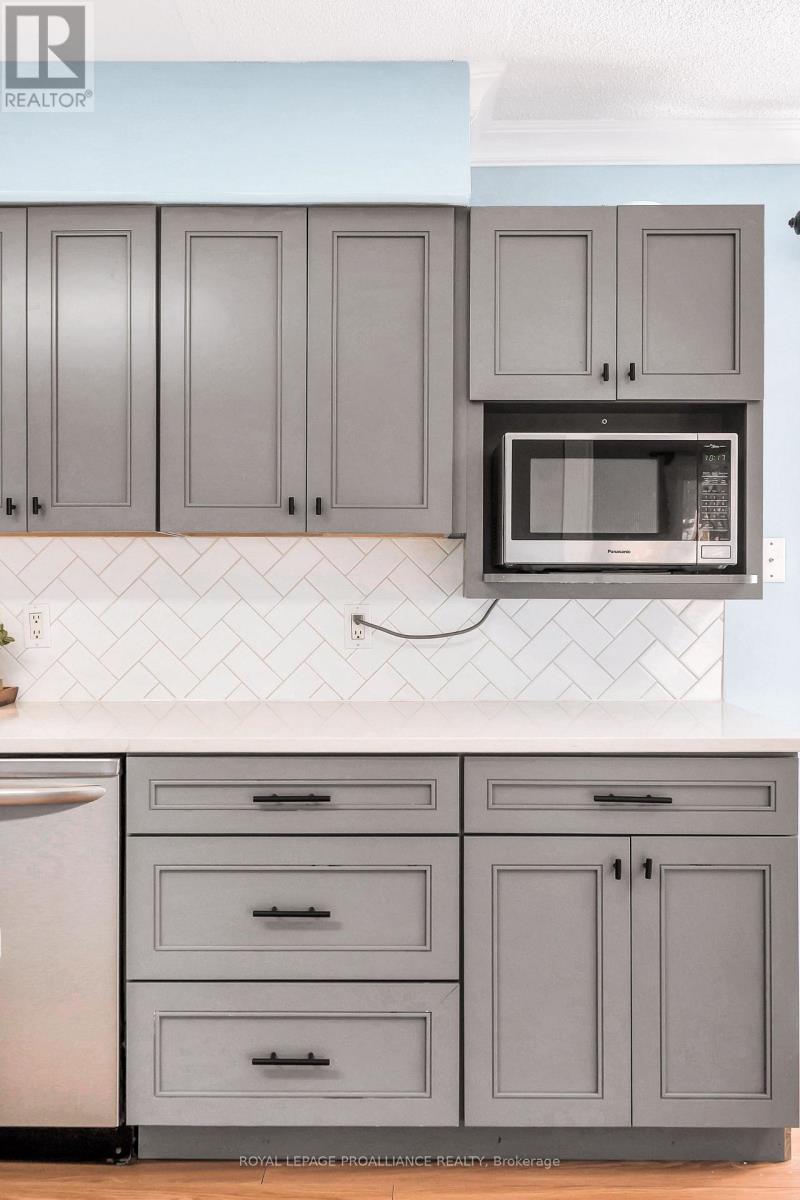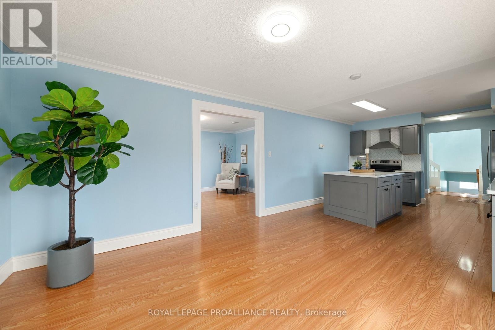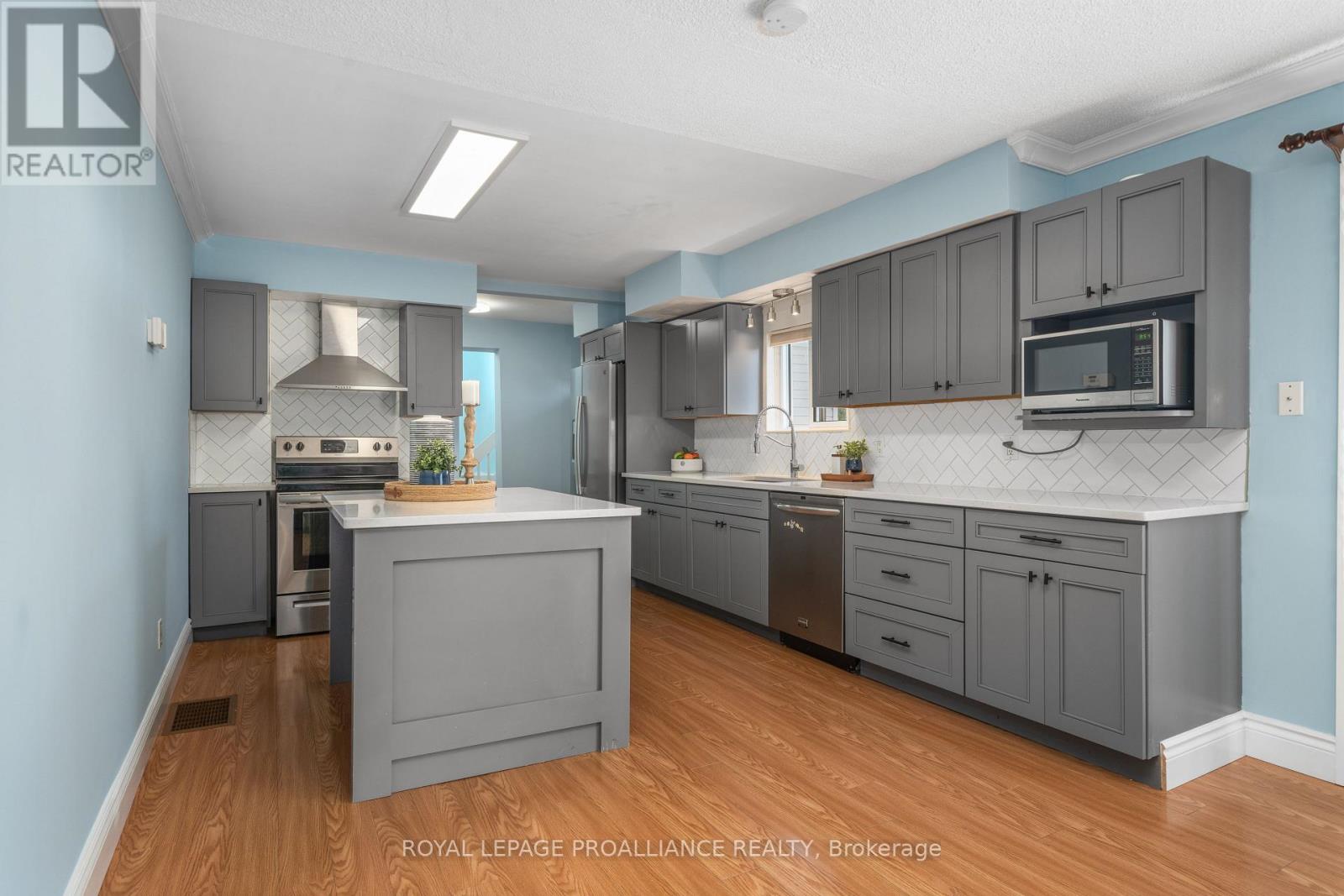 Discover this thoughtfully updated 4-bedroom, 2-bathroom home, offering the perfect blend of functionality and charm. From the moment you arrive, the neat, tasteful landscaping sets a clean and inviting first impression. Inside, you'll find a bright and neutral space. Whether you're a first-time buyer, a growing family, or looking to downsize, this home offers the flexibility to suit your needs. The kitchen is a standout feature, complete with durable acrylic countertops, a large center island, updated soft-close cabinetry, and stainless steel appliances-including a built-in dishwasher-making everyday living both easy and efficient. Step outside to a wrap around deck with fully fenced backyard-ideal for children, pets, or weekend gardening. Steps to park and shopping, close to the Trent River and Highway 401, minutes to Centennial Park and Harbor front. (id:64974)