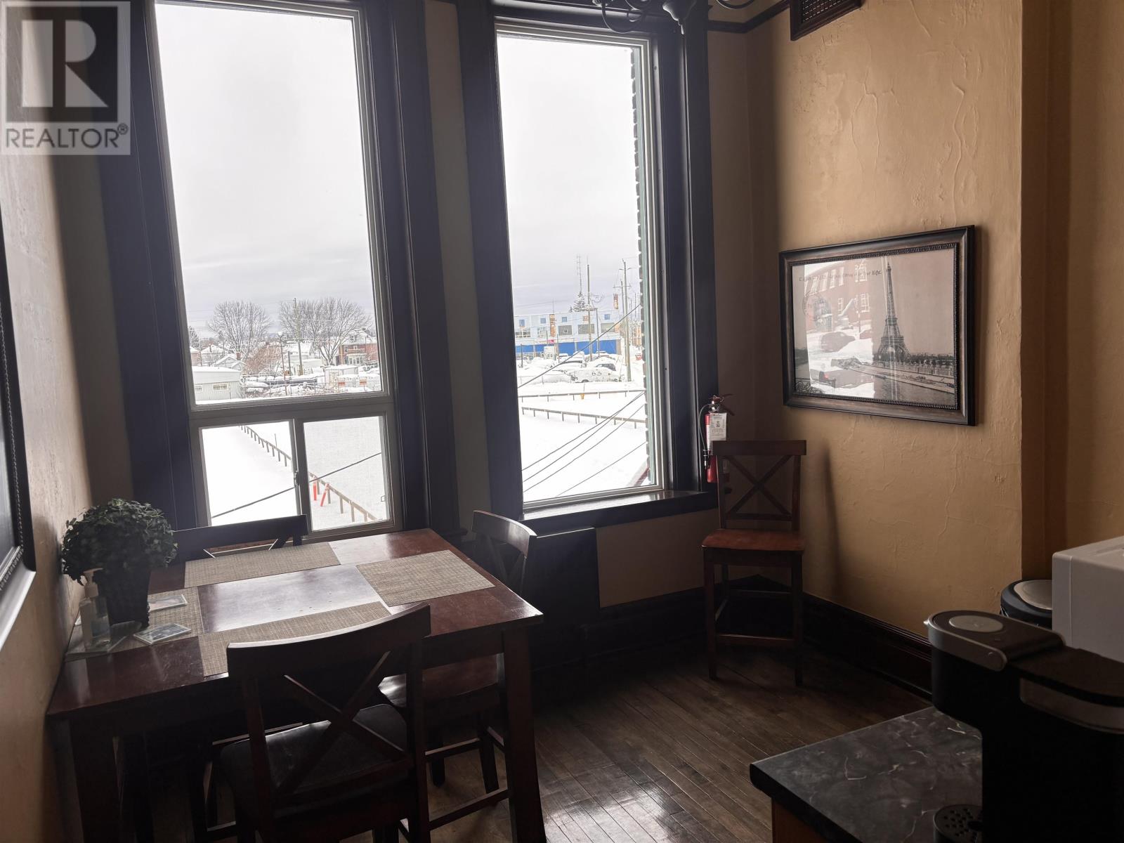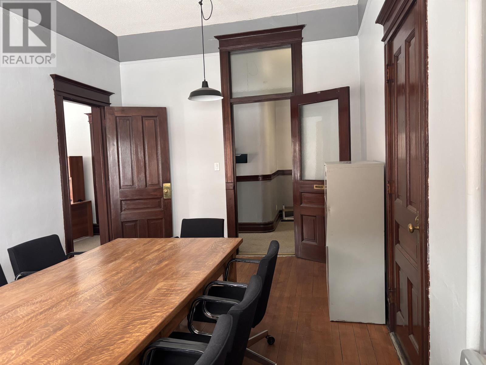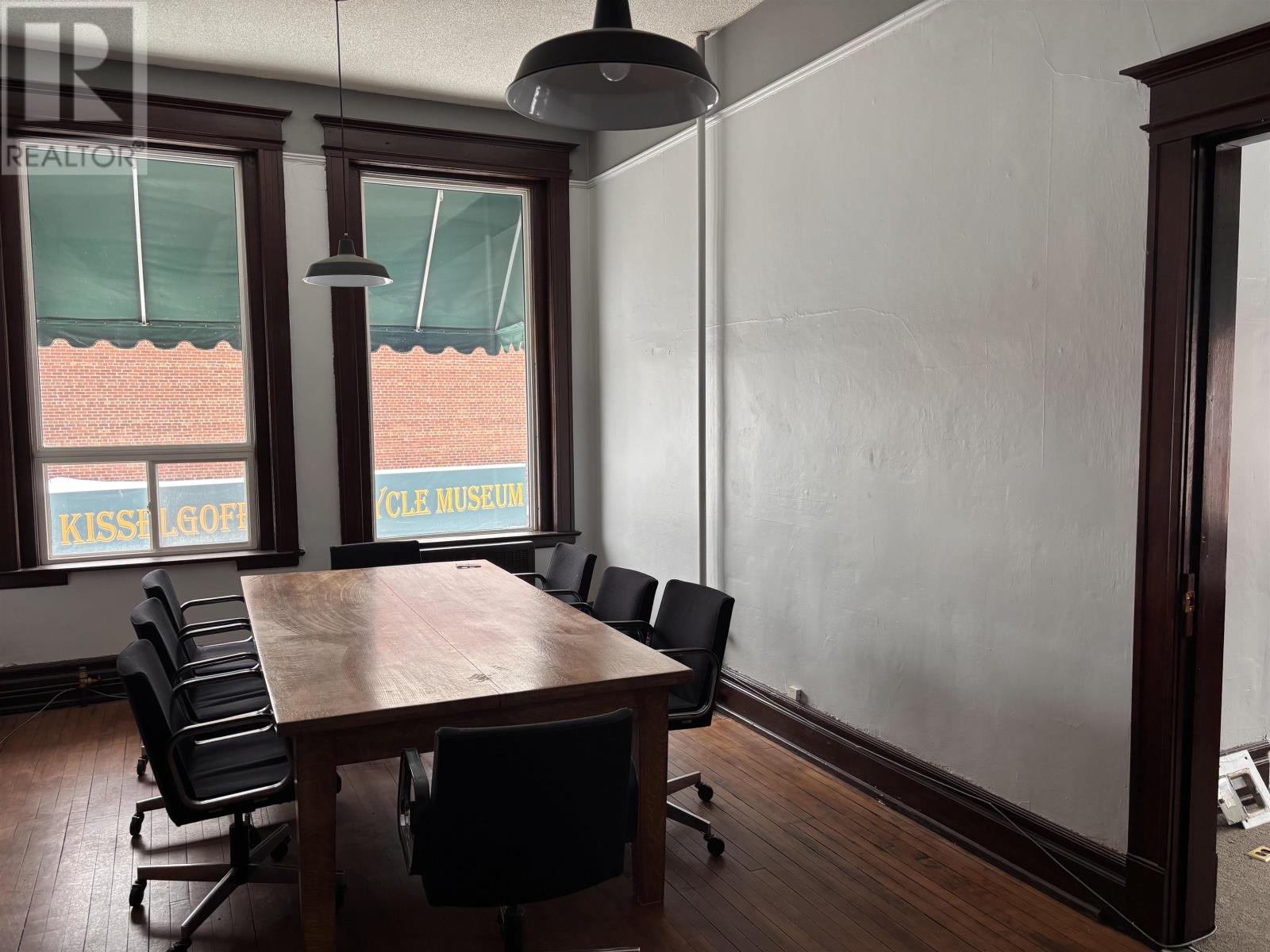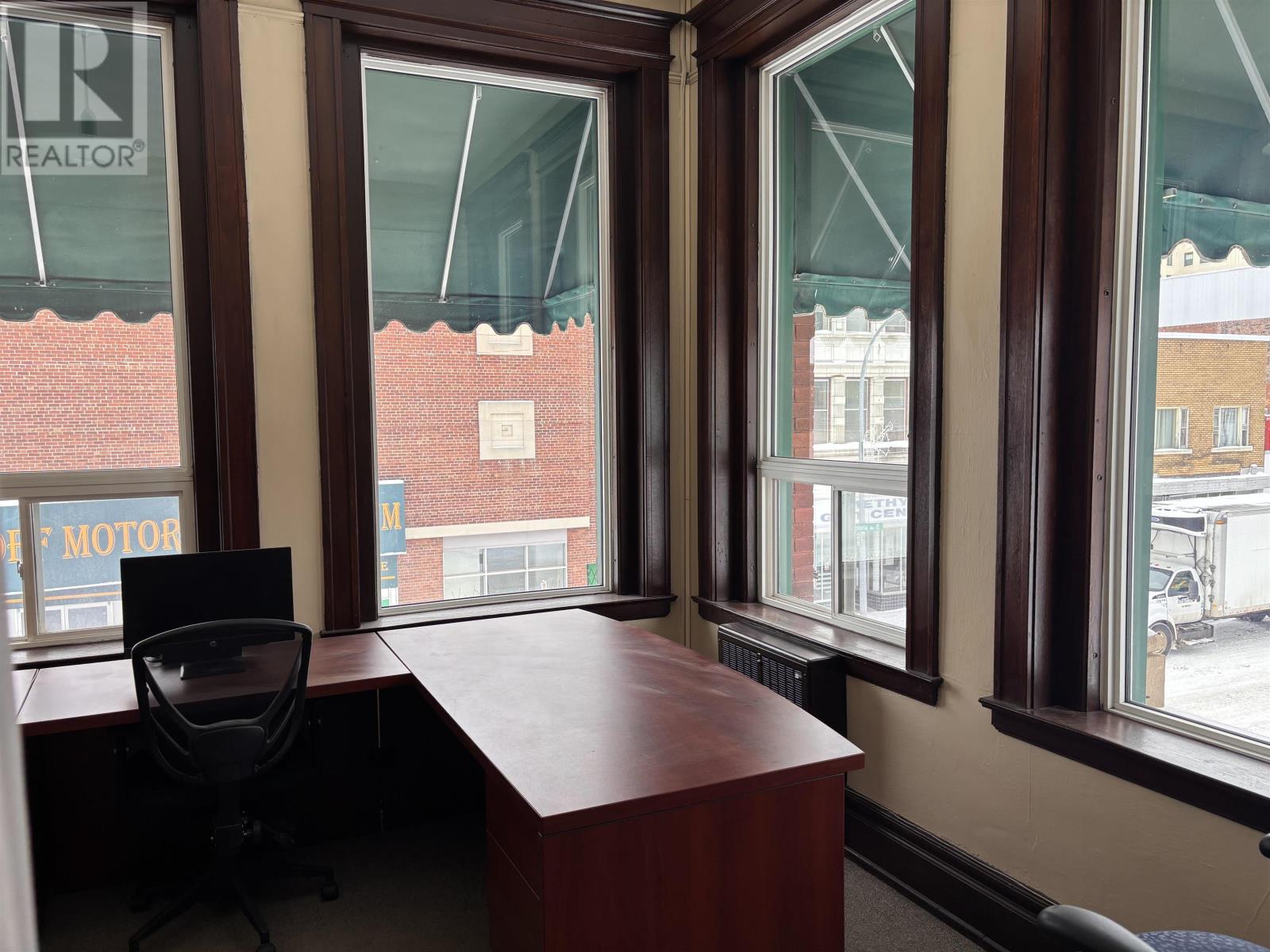 Bright second-floor professional office offering approx. 690 sq. ft. with two private offices, boardroom and reception area. 11 ft ceilings and excellent south and west facing natural light. Updated lighting, shared amenities (bathrooms, lunch room, waiting area), heating included, and 24-hour secure access. Ideal for professional or consulting users seeking a downtown office with character. (id:64974)