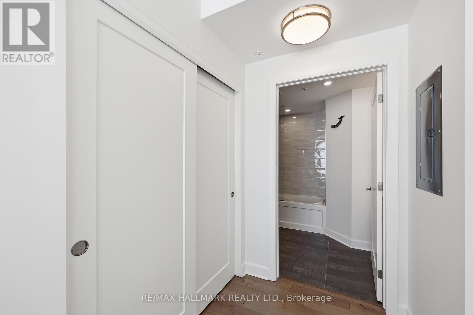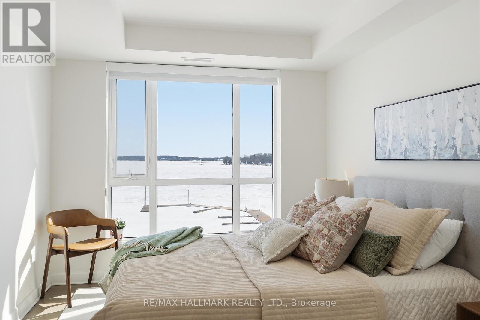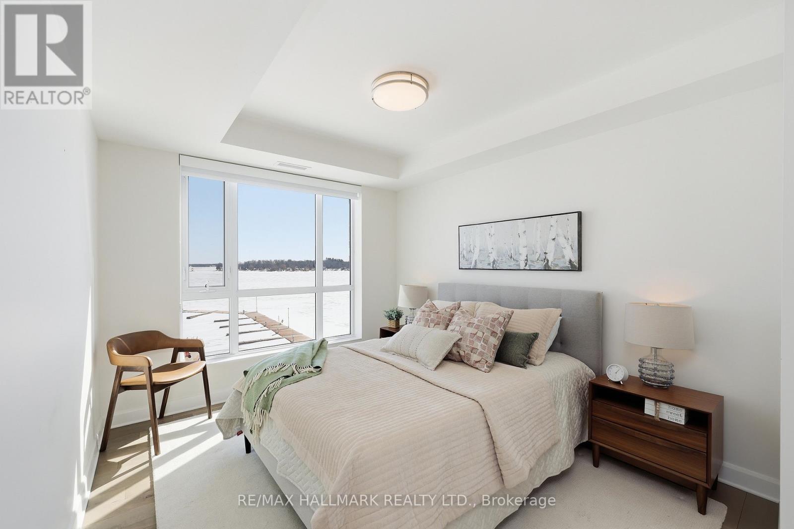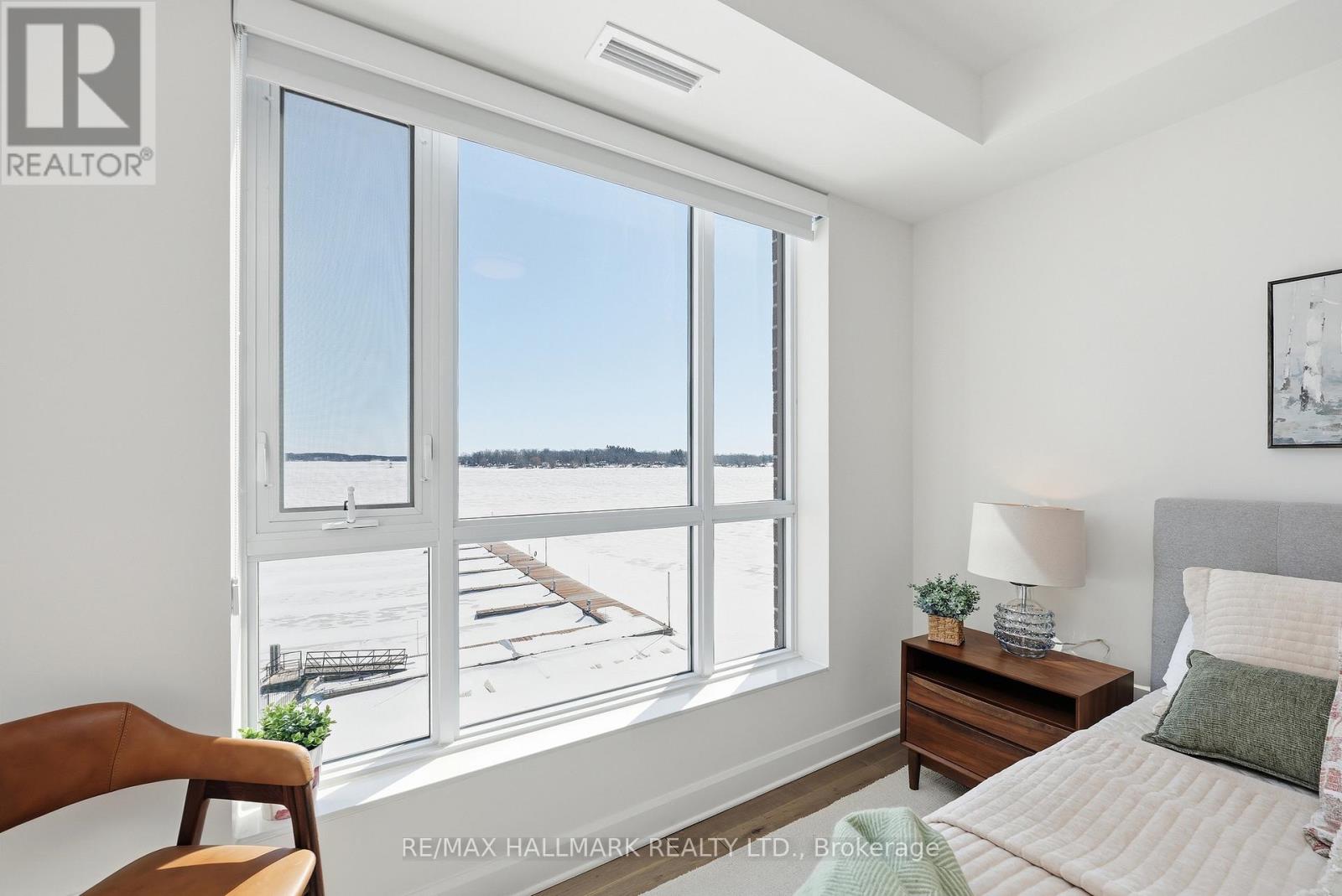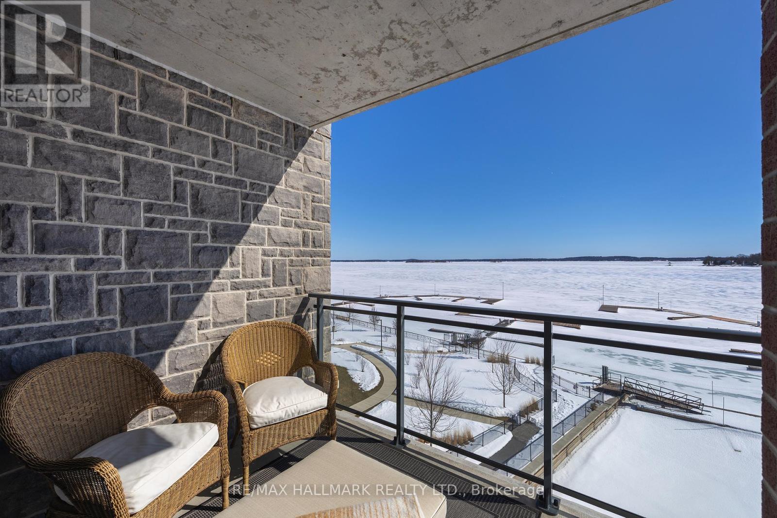 Modern 1000 Islands Lifestyle ~ water, trees & wildlife. Come & experience Stone & South on the St. Lawrence River. Designed for an active, easygoing lifestyle, this 1-bedroom + den offers a comfortable & convenient waterfront retreat. Features include; smooth ceilings, hardwood floors, quartz counters, and well-proportioned rooms filled with abundant natural light. The practical 802 sq ft layout includes a private balcony with unobstructed southwest water views, while the flexible den space adapts easily as a home office, a dedicated dining area, or a cozy guest room. Convenient underground parking with easy access to a large format storage locker. Built by CaraCo & designed by Chamberlain Architect in 2021, the building amenities include; fitness centre, party room, visitor parking, BBQ patio, and marina access. Efficient central heating & A/C energy incl. in maintenance fee. The 1000 Islands diverse & welcoming community that offers boating, golf, kayaking, swimming, fishing, hiking & so much more! Set in the historic town of Gananoque & steps from Thousand Islands Playhouse. Enjoy community events, walkable shops, pubs, dining, and outdoor sight-seeing. And for those that need a bigger city fix, historic Kingston is only 25 mins away, while Toronto, Ottawa & Montreal are a reasonable cottage drive. Life is better in the Islands! (id:64974)