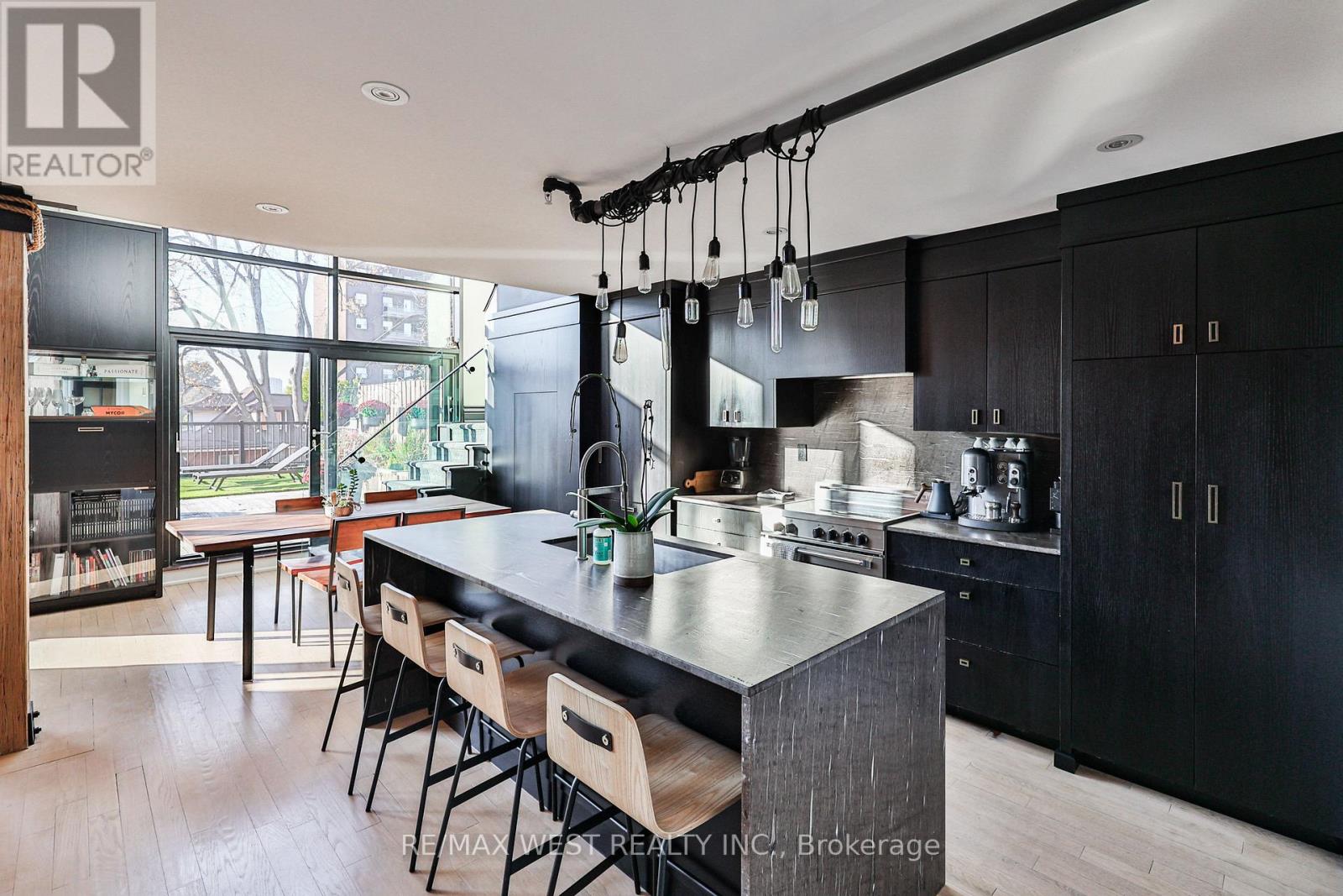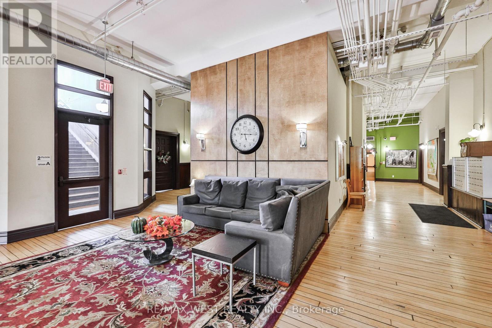 Welcome to a showstopping, one-of-a-kind hard loft set within the iconic Stinson School Lofts. This historic boutique conversion blends timeless Victorian architecture with refined, modern design in a way that's truly unmatched. With 1300 sq ft of interior living space and an additional 864 sq ft private terrace, this two-level loft is a rare find. Soaring 17-foot ceilings and two-storey Reynaers windows flood the home with natural light. Original brick, exposed PSL beams, and industrial steel hardware add authentic character, while curated finishes bring elevated style. The chefs kitchen features maple cabinetry, premium European appliances, and a dramatic denim granite waterfall island. Entertain in the open-concept great room or step outside to your custom Japanese-style wood patio with planters and treetop views - your own private outdoor retreat. Upstairs, the primary suite is a peaceful haven with custom closets, a feature PSL post, and a spa-worthy ensuite wrapped in marble. A second bedroom or flexible office/guest space offers built-ins and warm wool carpeting. Every inch has been considered - from the bespoke glass staircase to the custom lighting throughout. Set in a boutique building rich with history, and located near Hamilton's downtown core, Wentworth Steps, and the Escarpment trails, this loft offers urban edge with soul. A true architectural gem - rarely offered and impossible to replicate. (id:64974)