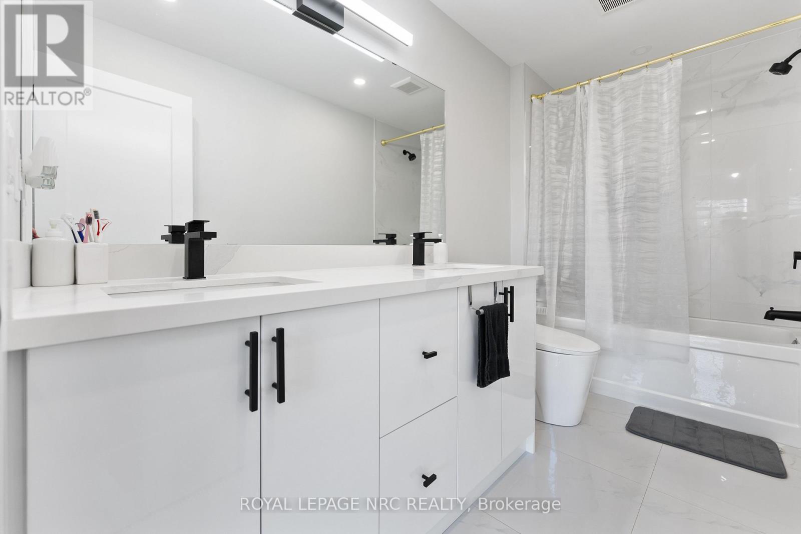 Welcome to modern living. A modern 4 bedroom semi plus accessory suite in the heart of Welland. Two complete units occupy this custom built two storey semi-detached home features 4 bedrooms, 2.5 bathrooms with large open concept kitchen/living/dining area that accesses the rear deck and fenced backyard. Attention to detail and craftsmanship are apparent with engineered hardwood flooring and tile throughout, custom kitchen with island, stainless steel appliances and quartz counters. Four spacious bedrooms occupy the second floor. The large primary suite features an en-suite and walk-in closet, with large windows overlooking the Welland River and Merritt Island Park. Further features include single car garage, main floor laundry, HRV system, tankless on demand hot water heater. Completing the package is a fully self contained, 1 bedroom, 1 bathroom lower accessory unit, accessed via a separate side entrance, with separate laundry, hydro and gas meters, is perfect for multi-gen living or to generate income and offset costs. Conveniently located in a quiet neighbourhood, with outdoor greenspace and trails ideal for walking along the river. Walking distance to the Downtown core complete with retail, grocery, food service, public transit and community facilities. Positioned close to Woodlawn Rd., featuring a newer big box retail hub, and Youngs Sportsplex providing east access to the Seaway Mall and Highway 406 for connection throughout the region. This property offers a ready opportunity to live in high quality construction while generating income from the lower unit. (id:64974)