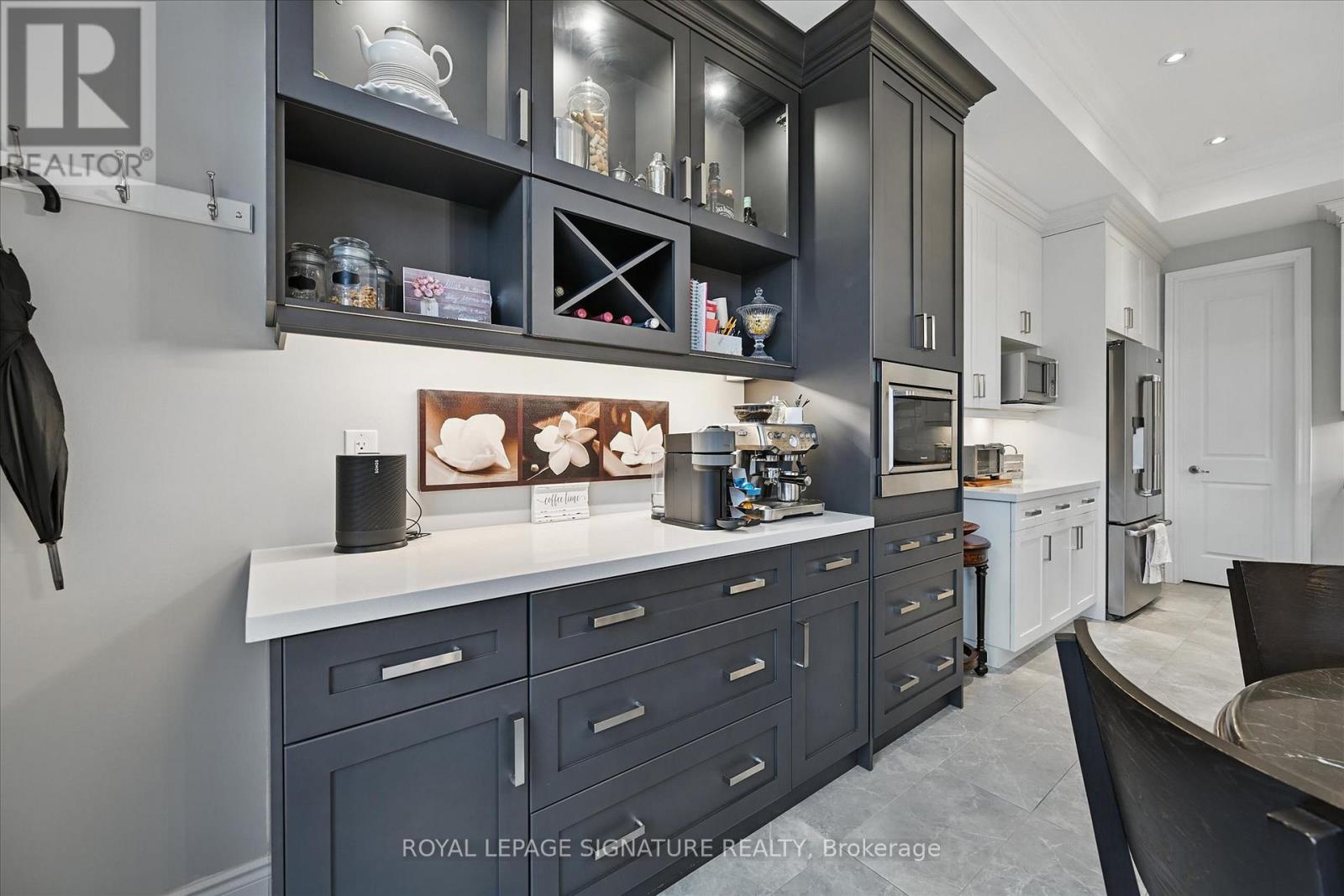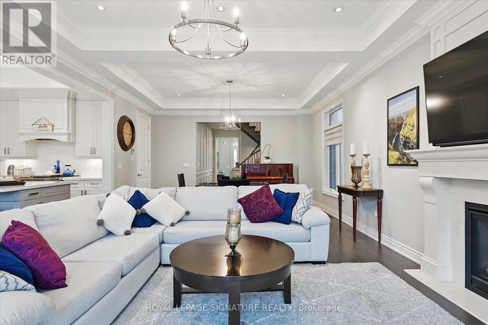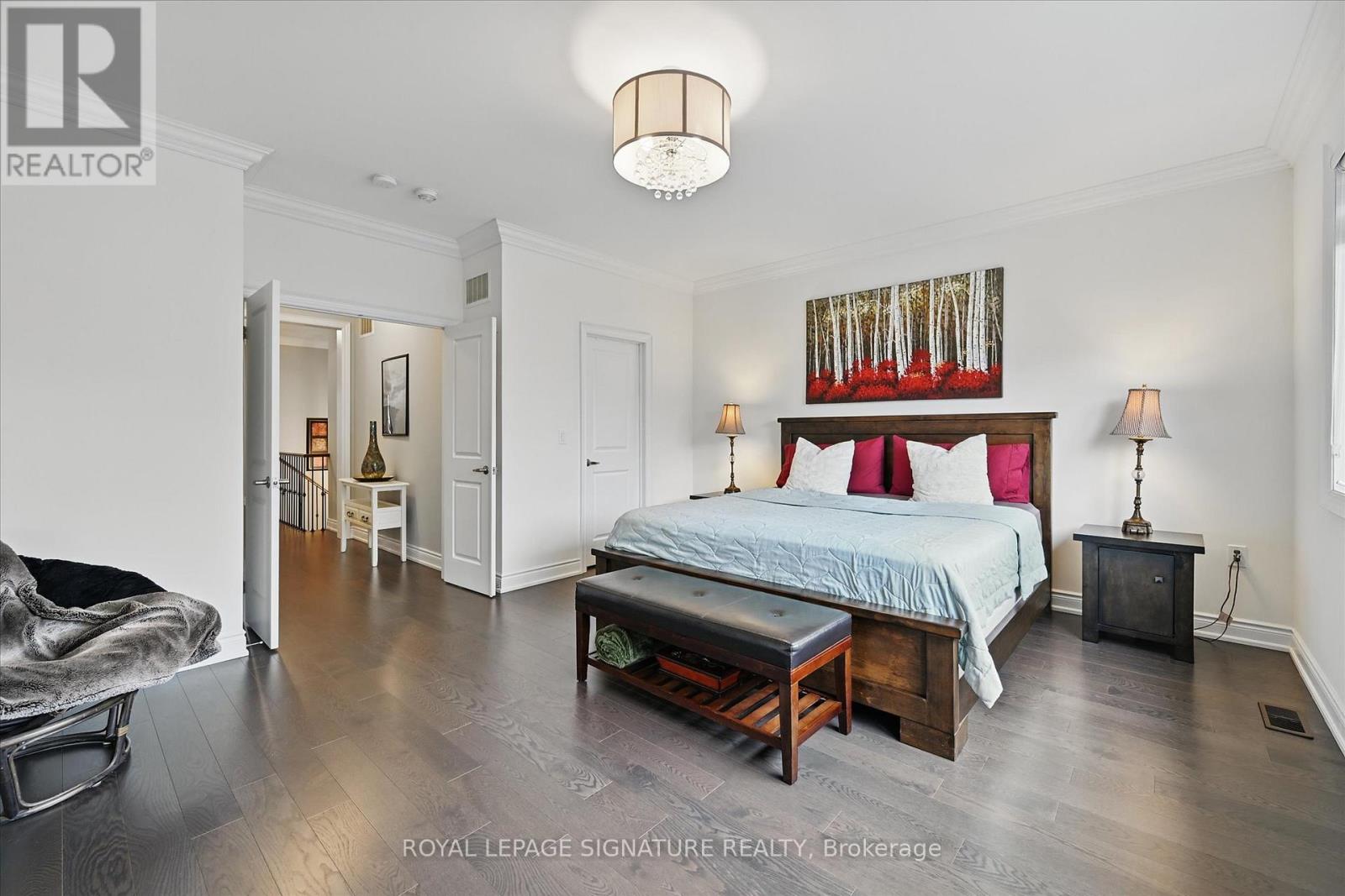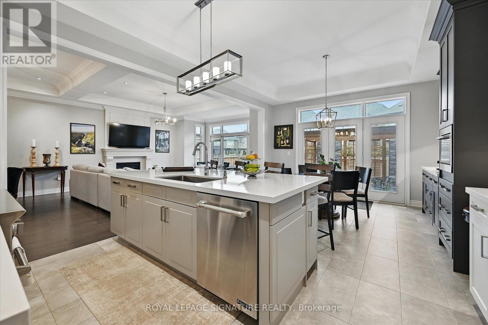 An Exceptional Fernbrook Carnegie Model in the Prestigious Glenorchy Community, ideally situated across from a beautiful park. This elegant 4+1 bedroom, 5-bath residence offers 2,963 sq. ft. of refined living space above grade, plus a professionally finished basement. Built in 2018, the home showcases a striking stone and stucco exterior and premium upgrades throughout. The open-concept design features 10-foot ceilings on the main level, coffered ceilings, and a chef-inspired kitchen with quartz countertops, high-end appliances, a large island, and custom coffee bar. The upper level offers four spacious bedrooms with ensuite or semi-ensuite access, including a luxurious primary suite with spa-like ensuite and walk-in closet. The finished basement includes a recreation area, fireplace, bar, additional bedroom, and full bath. Enjoy a beautifully landscaped backyard with a custom pergola, all in a sought-after location close to top schools, trails, shopping, and transit. (id:64974)