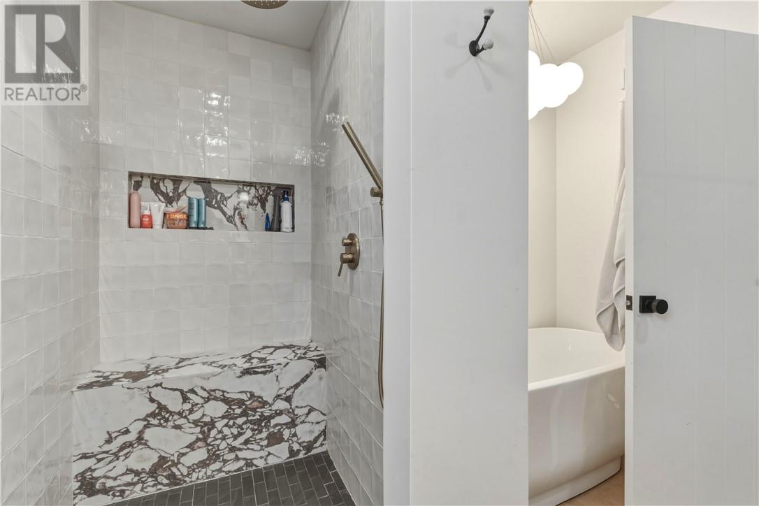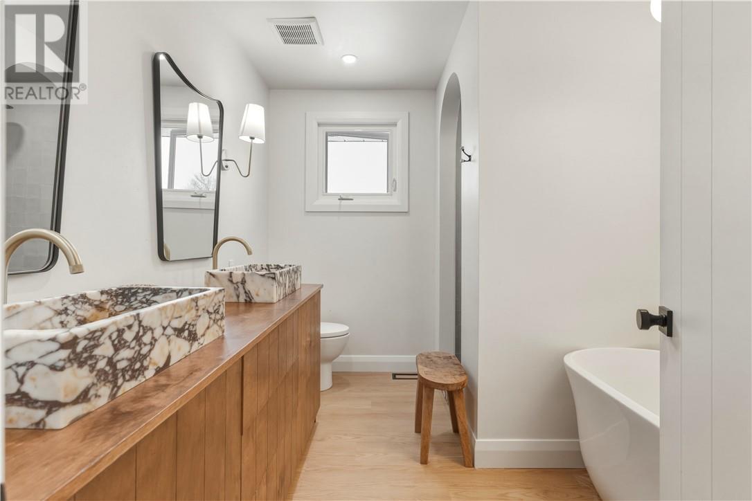 Located in a mature, tree-lined neighborhood, 3182 Leo is a stunning, solid brick bungalow offering 4 spacious bedrooms, 2 bathrooms, and an exquisitely appointed interior. The main floor welcomes you with light-filled living spaces featuring blonde hardwood-style flooring, a chic fluted fireplace surround with an integrated TV mount, and sleek modern lighting. This opens effortlessly into a defined dining area illuminated by a sophisticated clam-shell chandelier, perfectly positioned for a seamless flow when entertaining. The contemporary aesthetic continues through the bedrooms—including a primary suite with a minimalist ceiling fan and integrated media—and into the home's absolute showstopper bathrooms. These spa-like retreats showcase eye-catching marble vessel sinks, a matching marble-lined walk-in shower bench, custom slatted wood vanities, and a freestanding soaking tub. Adding incredible value is the beautifully updated in-law suite, featuring a high-end kitchen complete with light flat-panel cabinetry, dark stone countertops, an apron-front farmhouse sink, and elegant brass hardware. Outside, the property sits on a spectacular large lot that is fully fenced for maximum privacy. The landscaped inground pool serves as the centerpiece of an expansive yard that includes a play structure and outbuildings, providing the ultimate private summer oasis. Complete with an attached garage and undeniable curb appeal, this home is a rare and complete offering. (id:64974)