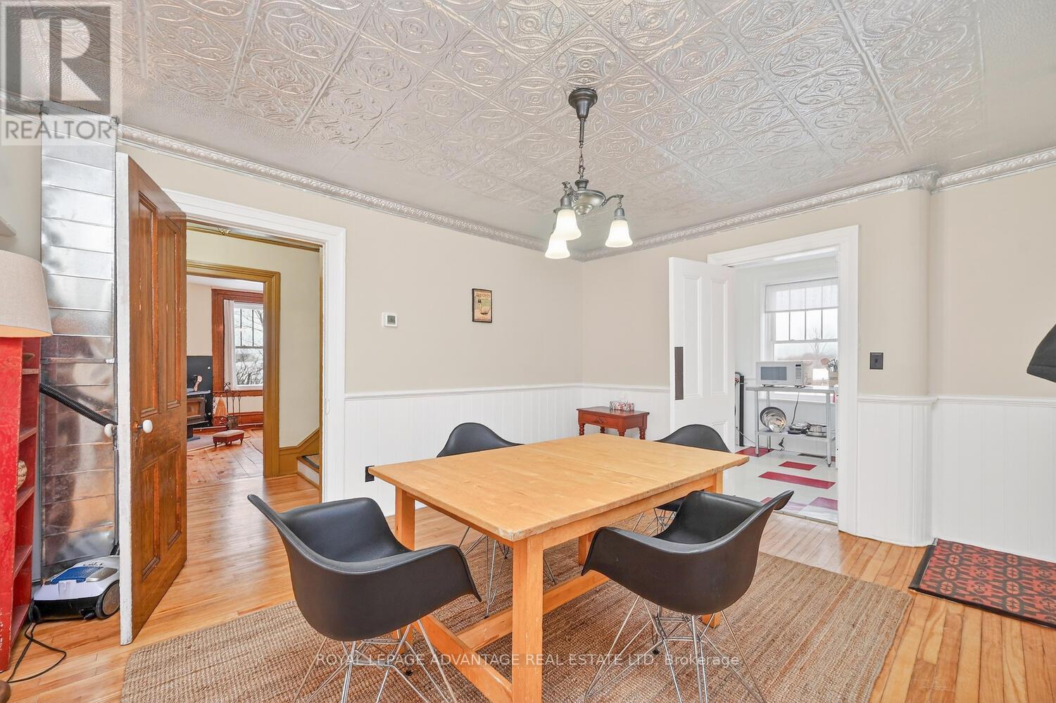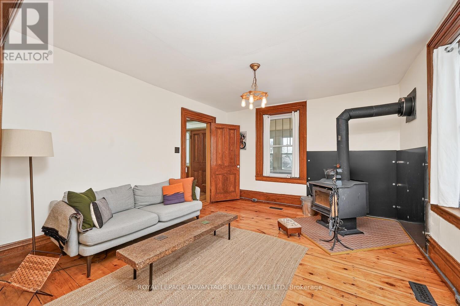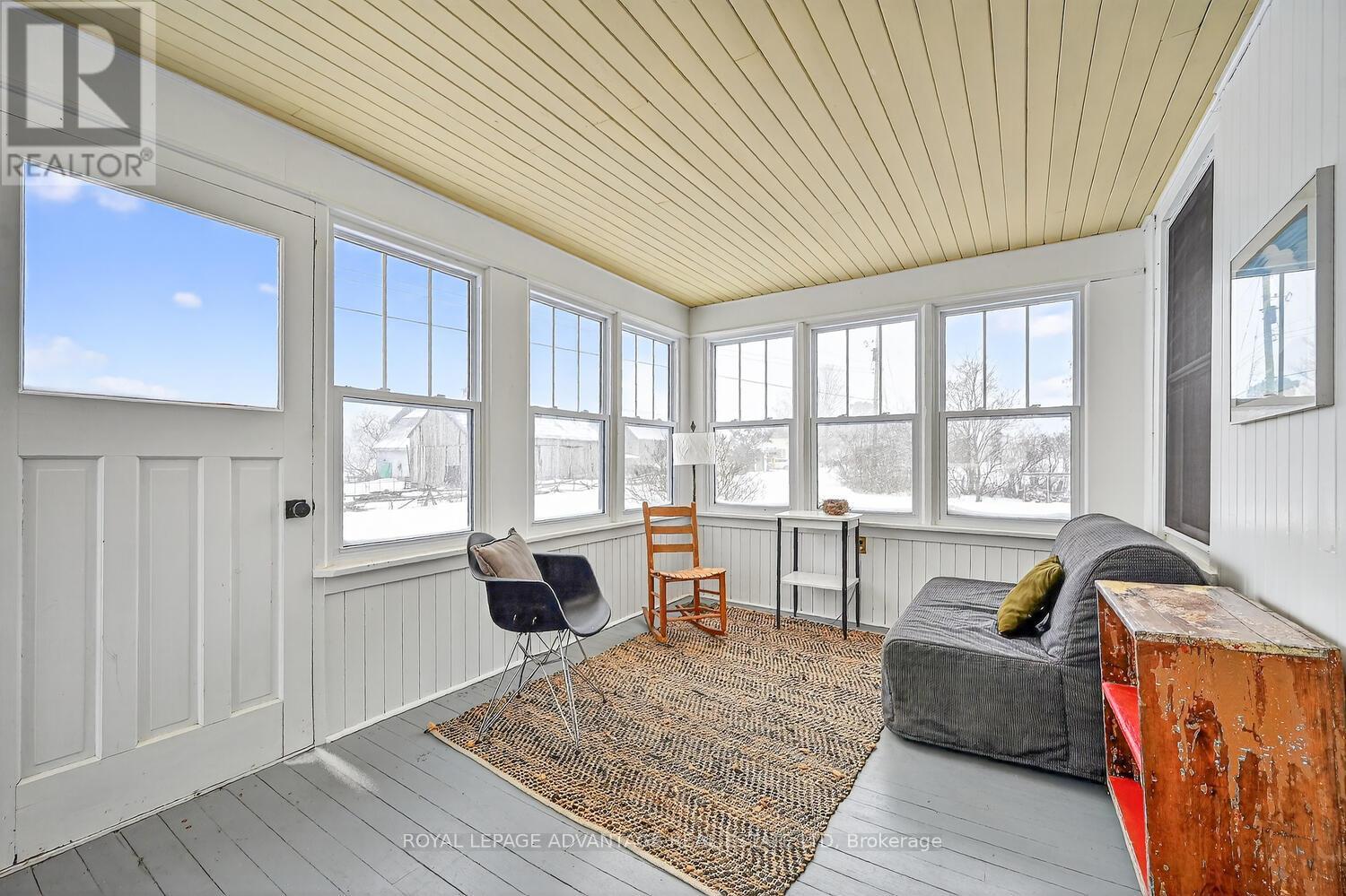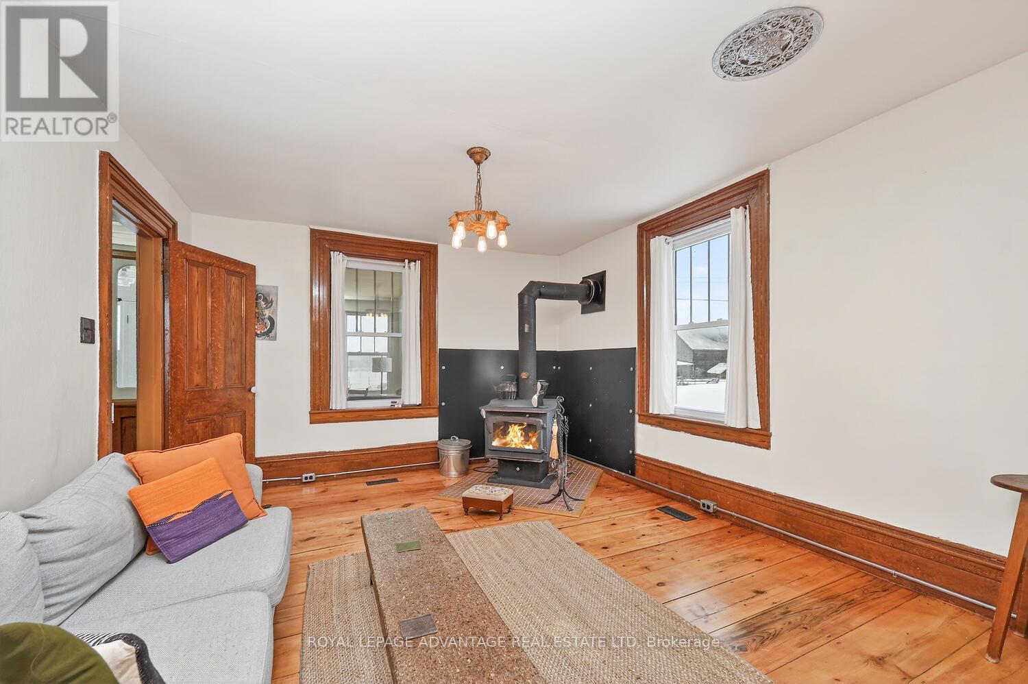 Discover the perfect rural retreat in this beautifully maintained 1 1/2 story country home, ideally located just minutes from the village of Portland. Framed by farmland, this property makes a wonderful first impression with its white siding, durable steel roof, and a vibrant red front door that welcomes you into a large, bright sun porch. Inside, the home blends character with modern feel, featuring broad plank pine floors, original baseboards, and elegant "reproduction" tin ceilings throughout several rooms.The thoughtful layout offers 3 bedrooms and two updated 3-piece bathrooms (completed in 2023), including one with a soaking tub and another with a standalone shower. The primary suite provides exceptional flexibility, featuring an adjacent bonus room perfect for a nursery, home office, or a dream walk-in closet. For those who work from home, stay connected with high-speed internet provided by WTC, ensuring you never have to sacrifice productivity for peace and quiet.This home is as functional as it is beautiful, boasting significant mechanical and energy upgrades. A modern heat pump, supplemented by a cozy wood stove for those crisp winter nights. The home has been enhanced with updated windows and professional spray foam insulation in both the attic and basement. With a septic system, survey, and well documentation all on file, plus updated plumbing (2023) and additional outbuildings for storage, this turn-key property is ready for its next owner. (id:64974)