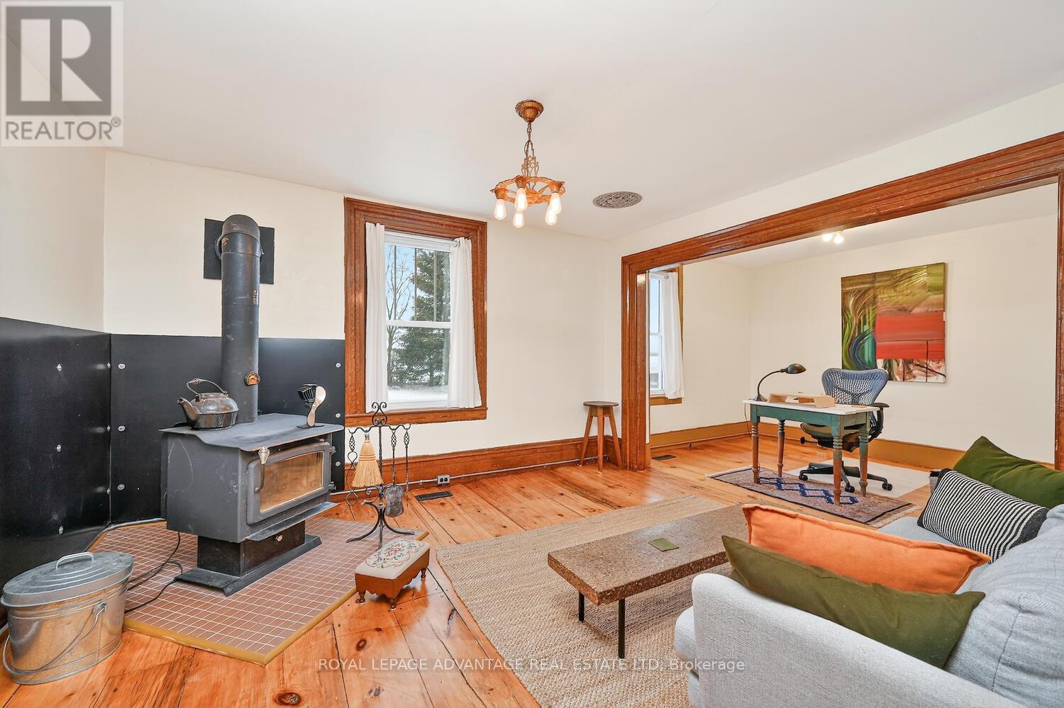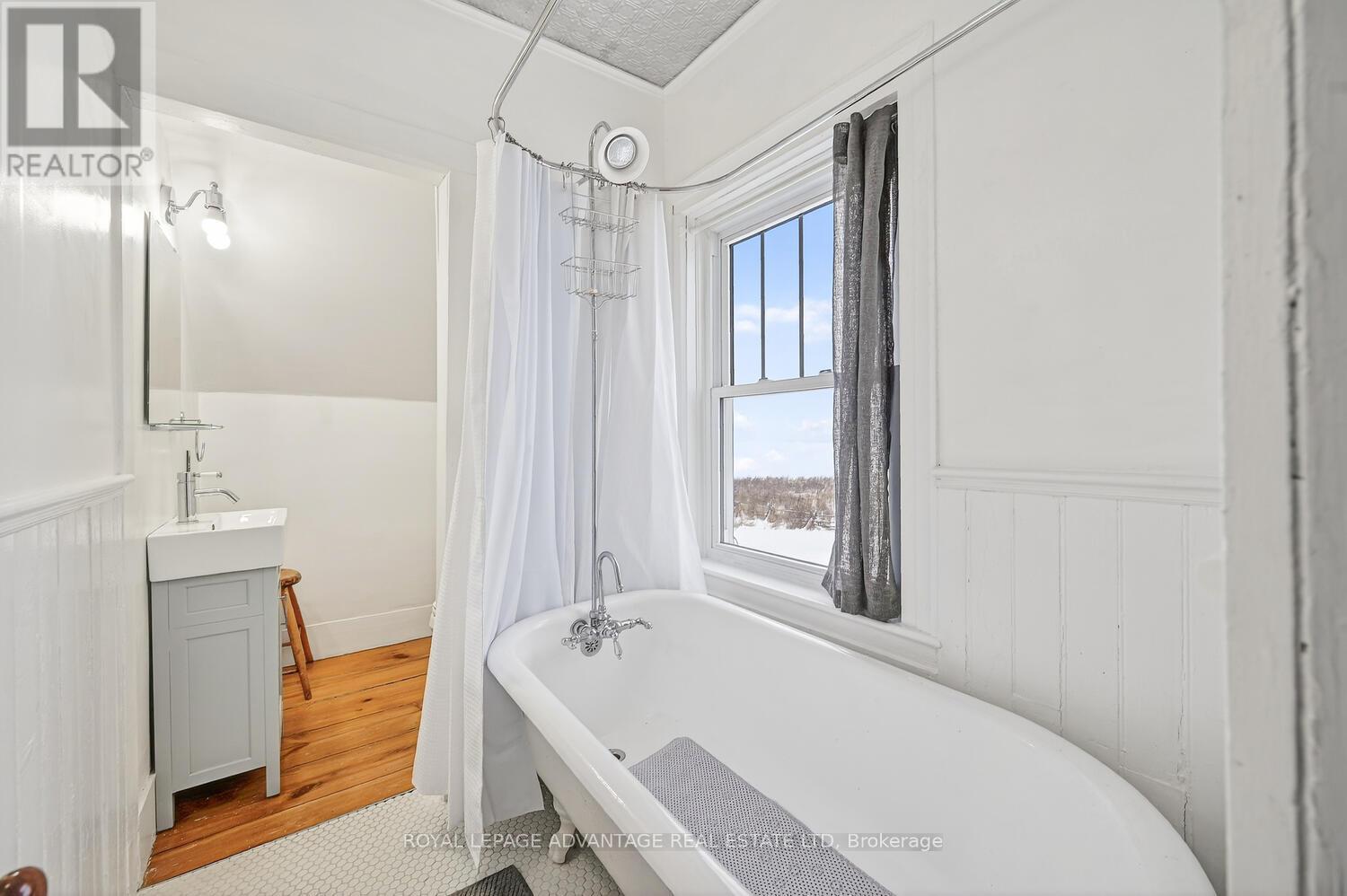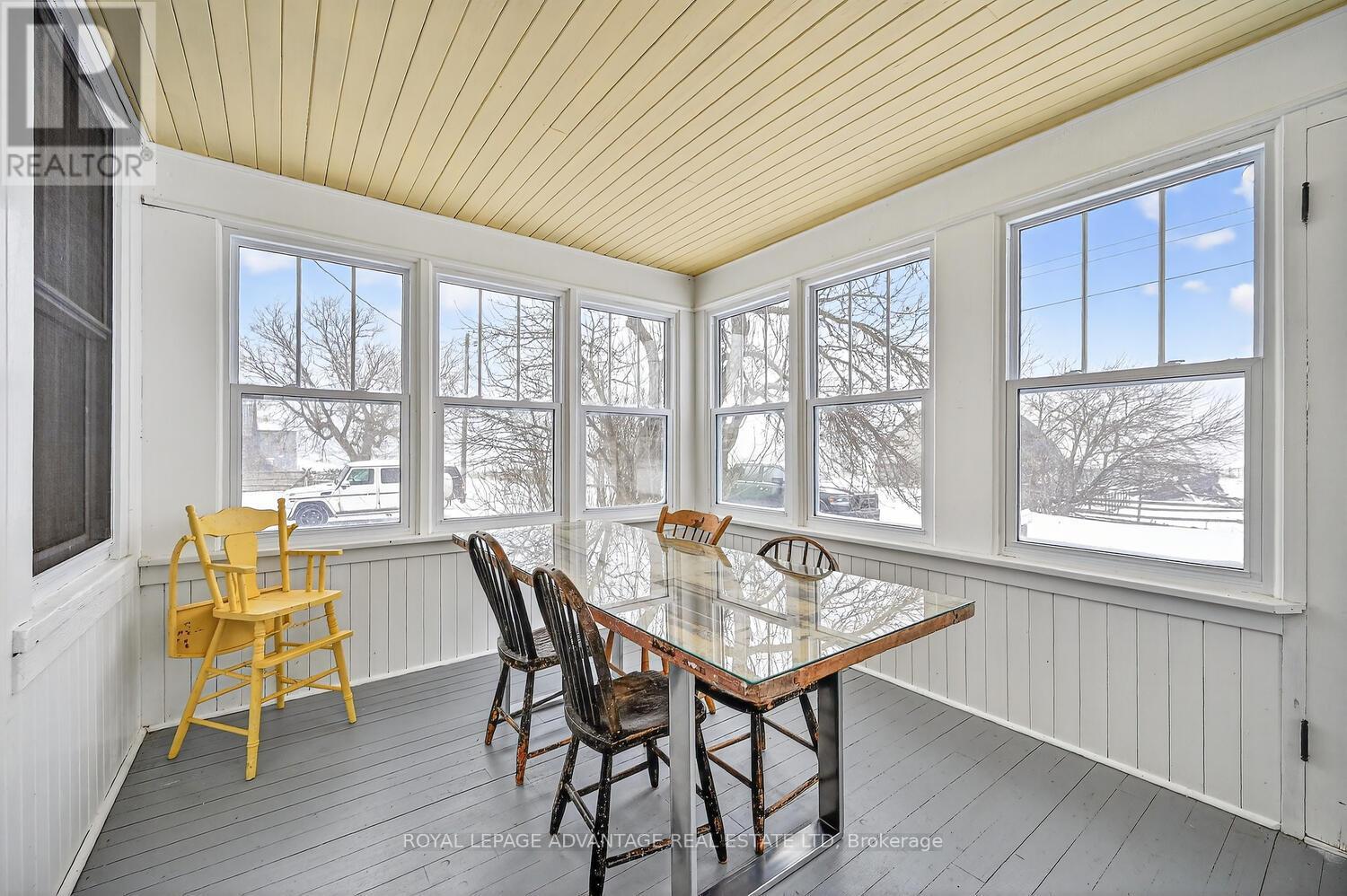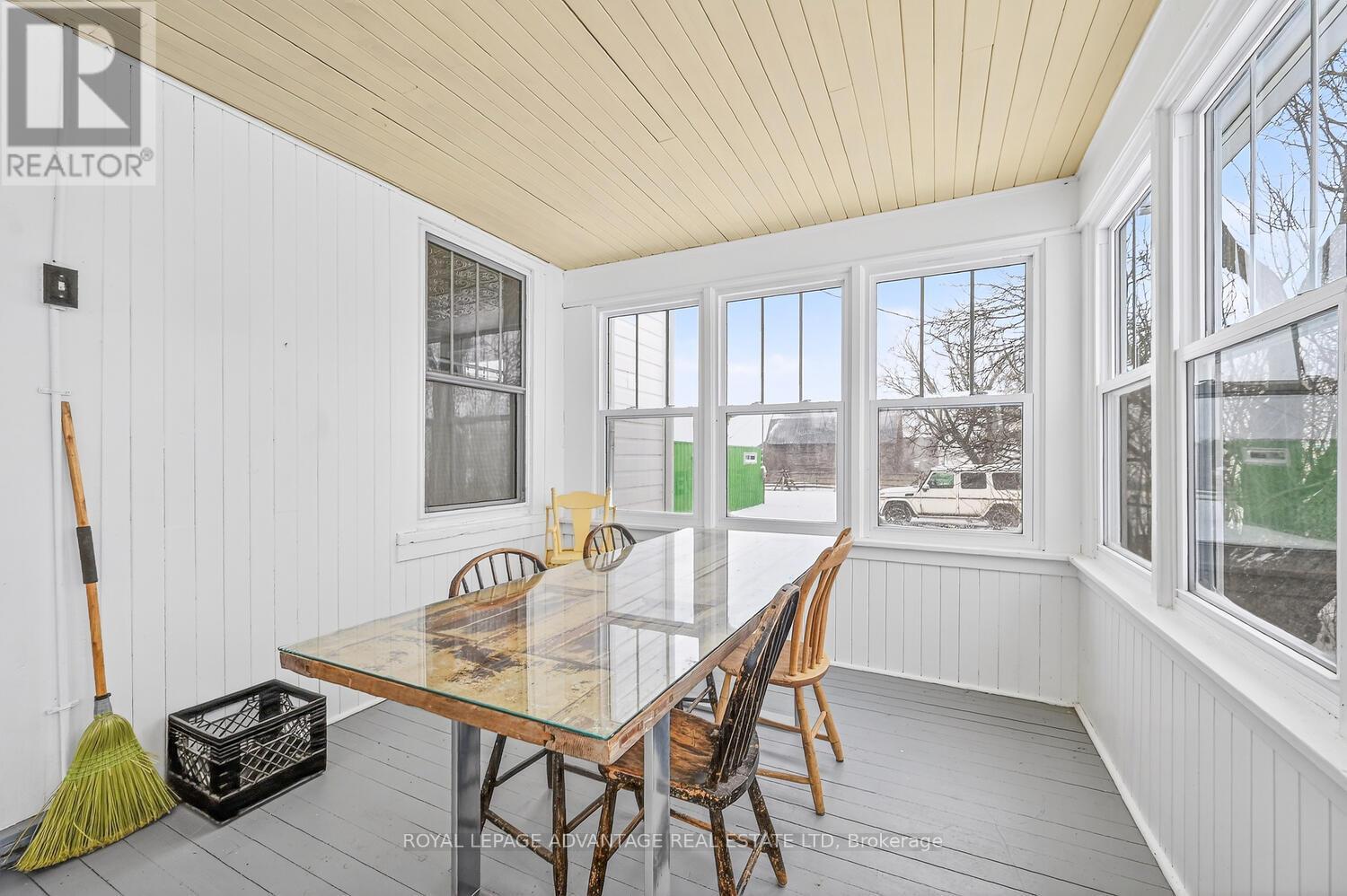 Discover the perfect rural retreat in this beautifully maintained 1 1/2 story country home, ideally located just minutes from the village of Portland. Framed by farmland, this property makes a wonderful first impression with its white siding, durable steel roof, and a vibrant red front door that welcomes you into a large, bright sun porch. Inside, the home blends character with modern feel, featuring broad plank pine floors, original baseboards, and elegant "reproduction" tin ceilings throughout several rooms.The thoughtful layout offers 3 bedrooms and two updated 3-piece bathrooms (completed in 2023), including one with a soaking tub and another with a standalone shower. The primary suite provides exceptional flexibility, featuring an adjacent bonus room perfect for a nursery, home office, or a dream walk-in closet. For those who work from home, stay connected with high-speed internet provided by WTC, ensuring you never have to sacrifice productivity for peace and quiet.This home is as functional as it is beautiful, boasting significant mechanical and energy upgrades. A modern heat pump, supplemented by a cozy wood stove for those crisp winter nights. The home has been enhanced with updated windows and professional spray foam insulation in both the attic and basement. With a septic system, survey, and well documentation all on file, plus updated plumbing (2023) and additional outbuildings for storage, this turn-key property is ready for its next owner. (id:64974)