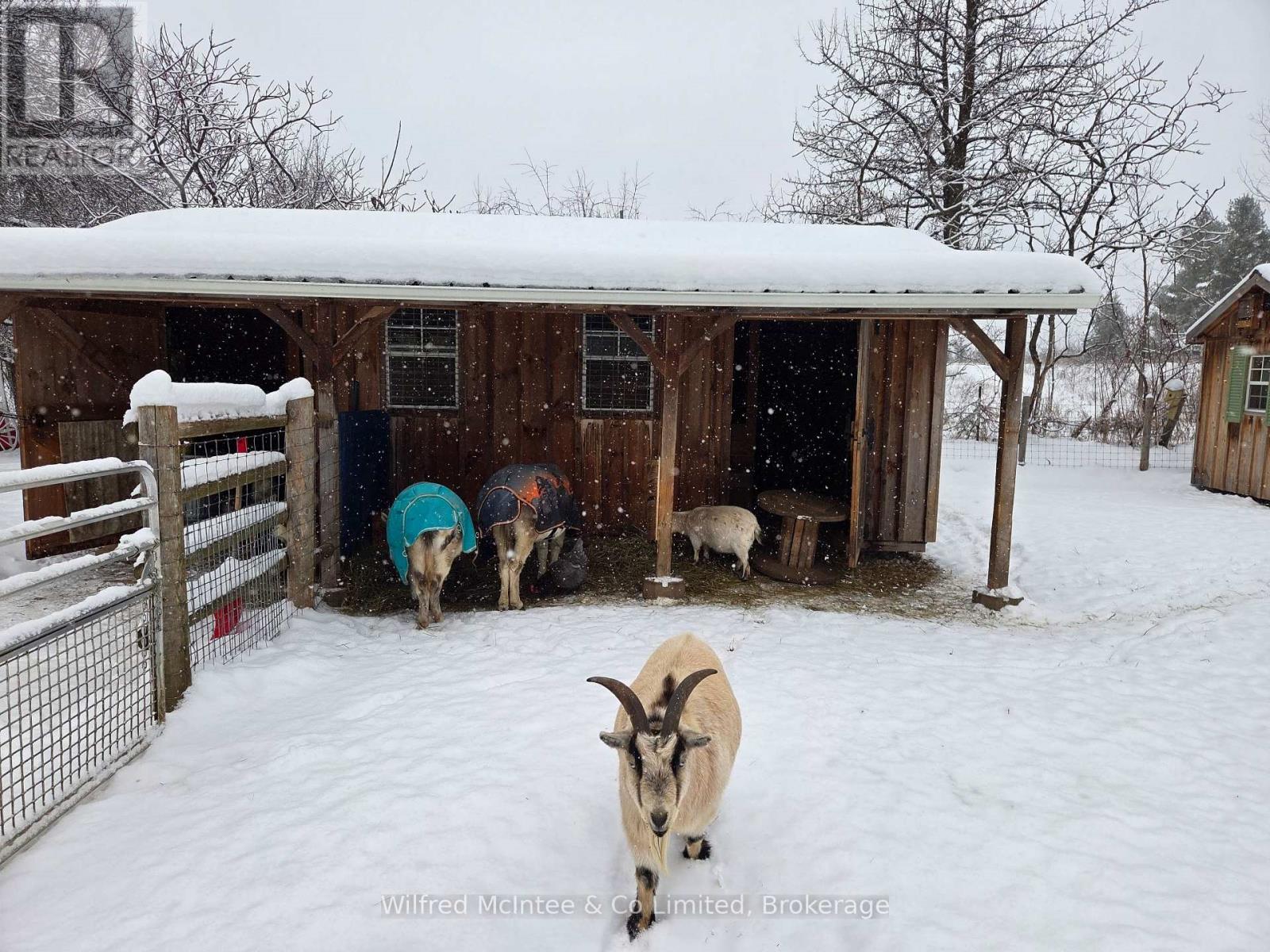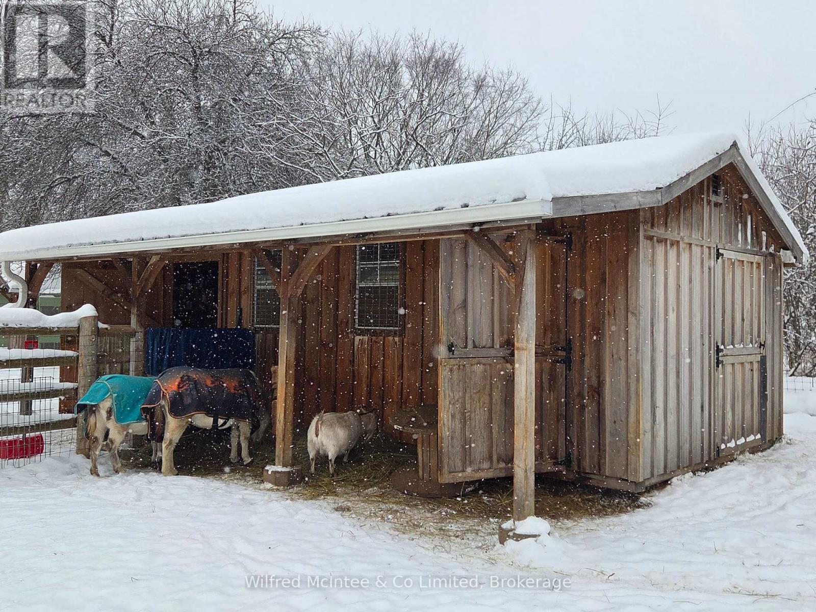 Embrace the rustic elegance of this charming 3-acre hobby farm retreat, featuring an extensively renovated and modernized addition to the original 1880 log home, offering 3 bedrooms and 2.5 bathrooms. New Maibec wood siding (Quebec white cedar), energy shield insulation + nova wrap, steel roof and eaves completed in 2021. Enjoy the serenity of a fully fenced property with a long, private driveway and mature trees, complete with an 8x6 greenhouse, cozy 8x10 bunkie, a 2-car heated detached garage, a 12.5x16.5 garden shed, and the 11x25 barn with stalls opening onto a fenced paddock (panel stalls are currently configured to be 8x7, 8x7, 8x5, 8x4.5), 2 paddock shelters (7x12 and 7x10), 8x14 hay storage, 6x8 chicken coop with 8x8 run. Quality Mennonite craftsmanship fences, outbuildings and house upgrades. Perfectly situated just minutes north of Owen Sound, this rural estate delivers the best of both worlds: ultimate privacy while remaining close to all city amenities and the marina. (id:64974)