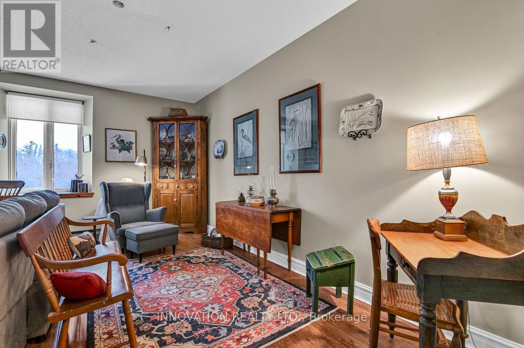 This meticulously restored 19th-century woollen mill harmoniously integrates historic stonework and industrial elements with contemporary boutique condominium living, distinguished by a magnificent waterfall and river setting. It presents a truly unparalleled residential environment. This highly sought-after one-bedroom-plus-den residence has been scrupulously maintained. Immersed in natural light, the interior honors its rich milling heritage with striking high ceilings and deep window ledges. The eat-in, updated kitchen features an expanse of counter space & storage in a modern & bright setting that flows seamlessly into the principal living area. Expansive windows in both the living room & bedroom afford tranquil, serene vistas of the waterfall and the Mississippi River. The exceptional nature of this suite is underscored by the privacy it offers, with no adjacent residences above or across the hall. Only a select number of Millfall residences benefit from this direct river-view access. The confluence of historic character, abundant natural illumination, and judicious updates positions this as one of Millfall's most distinctive homes. Residents are privy to a comprehensive suite of exceptional amenities, including a fitness facility, common & recreation rooms, a library, a workshop, kayak storage, an outdoor gazebo by the water, a BBQ area, along with a rentable guest suite, supplementary storage & locked bike room! Renowned for its breathtaking sunsets, beautiful woods, immaculately maintained grounds, safety & privacy, the community provides an elevated lifestyle mere steps from Almonte's vibrant downtown. Inside 3rd floor daily mail delivery in personal key locked mailbox. Located on the 3rd floor in the Annex with 3rd floor parking, no need for elevator use. Join the Friday night social hour, weekly fitness classes & movie nights! (id:64974)