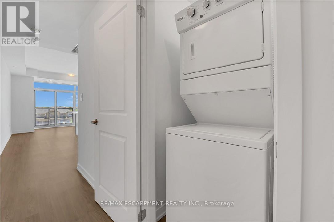 Recently built one bedroom condo comes with one parking spot, one storage locker, and features a state of the art Geothermal Heating and Cooling system which keeps the hydro bills low !!! Professionally cleaned and painted, ready for it's new owners. Includes upgraded flooring throughout, open concept kitchen and living room with stainless steel appliances. The condo is complete with in-suite laundry, a 4-pc bathroom, and a spacious private balcony. Enjoy all of the fabulous amenities that this building has to offer; including party rooms, modern fitness facilities, rooftop patios and bike storage. Situated in the desirable Waterdown community with fabulous dining, shopping, schools and parks. 5 minute drive to downtown Burlington or the Aldershot GO Station, 20 minute commute to Mississauga. (id:64974)