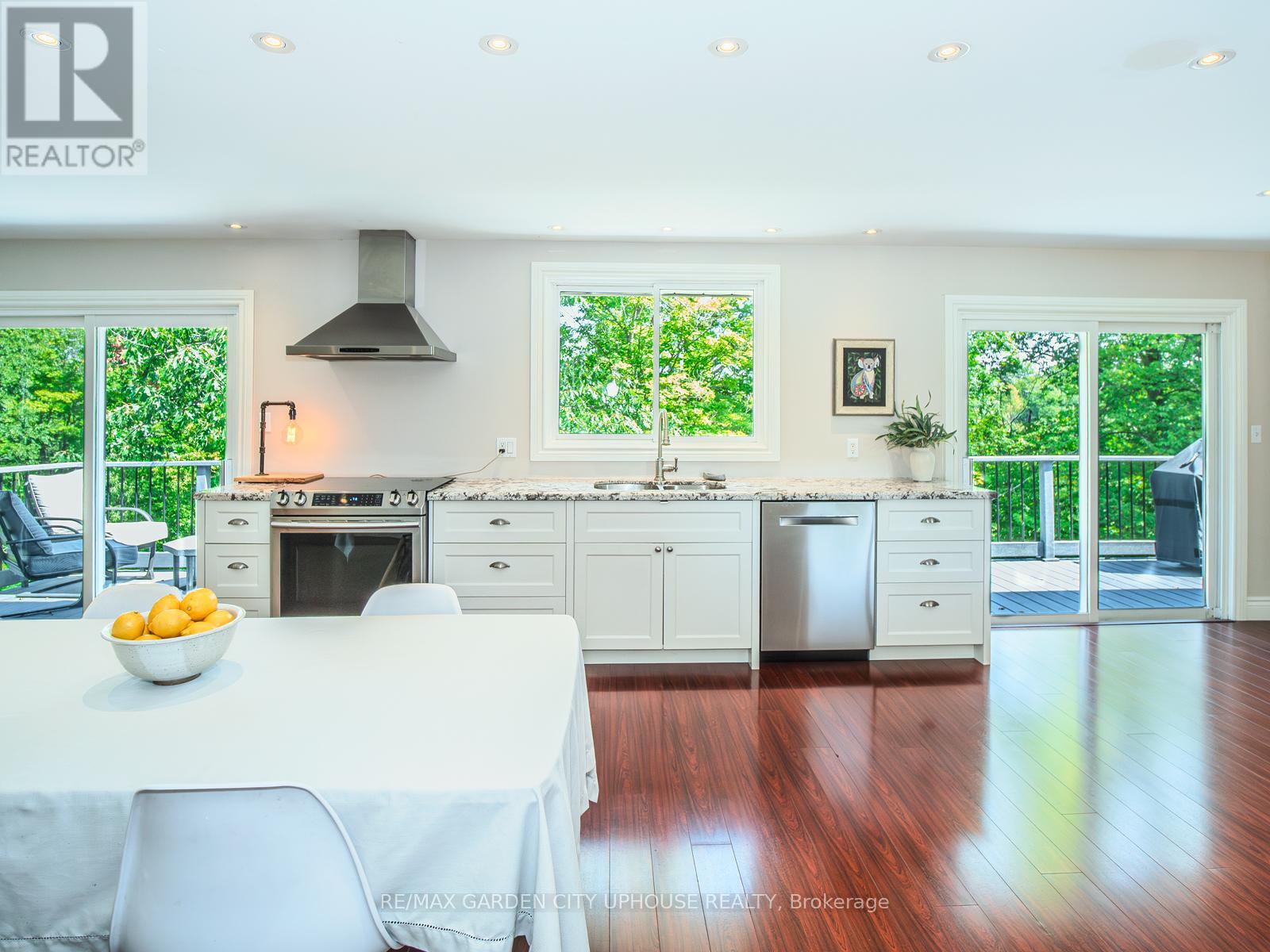 Welcome to a little slice of heaven here in Niagara in the bio diverse community of Rockway Glen. This 1500 sqft sprawling bungalow with a basement walks out into an enchanting 3/4 acre backing on to the woods of Rockway Glen. The moment you walk through the door you are going to know it feels right. Timeless cherrywood hardwood floors and oversized windows fill the room. A classic yet modern country kitchen to the back overlooking the lush canopy is the heart of the home. Easily picture a farm table for extended family gatherings. A bright living room to the front with sunsets over the award winning golf course. 3 good size bedrooms on the west wing with a picture perfect ensuite in the primary. Down, is an entertaining dream. Watch the big game or an Oscar winning performance with a high end theatre room set UP complete with high fidelity sound. A 4th bedroom, bath, plenty of storage and a perfect place for the kids to play. Complete with a dream workshop with its own entrance. Outback is where the magic happens. Host garden parties or just breath in the tranquility of the forest. Its a dazzling display of all 4 seasons. Feeling ambitious? This location has it all. A short hiking distance to the lower Waterfalls or celebrated wineries and farmers market stalls. Magic is abound. Ninth Street in Rockway Glen. This is the one you have been waiting for. (id:64974)