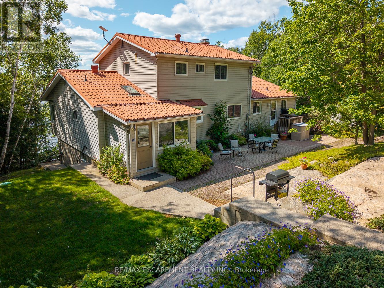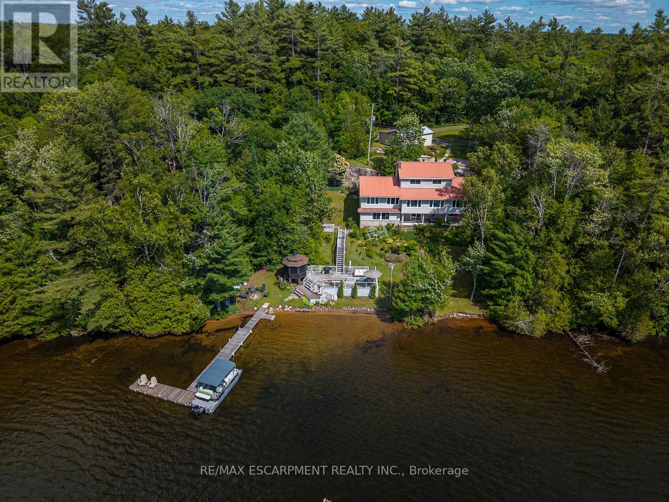 This exceptional year-round cottage or home offers 200 feet of west-facing shoreline with owned shore road allowance on the pristine waters of Little Whitefish Lake. Part of a peaceful three-lake chain with boating access to Big Whitefish and Clear Lake, this property features stunning sunset views, a beautiful sandy beach stretching the entire waterfront, and deep water off the dock, perfect for swimming and boating. Complementing this, is a large lakeside deck with an attached enclosed gazebo. This well-built and lovingly maintained home offers over 3,800 square feet of finished living space with an updated kitchen, spacious living and dining areas, a cozy den, and a bright enclosed porch overlooking the lake. The main floor primary suite includes a large bedroom, sitting room, 4 piece ensuite, walk-in closet, and storage space with potential for a laundry or kitchenette, making it ideal for guests or multi-generational use. Upstairs you'll find three additional bedrooms, 2 bathrooms, and more gorgeous lake views. The full walkout basement is designed for entertaining, with a built-in bar, large family room with propane fireplace, fifth bedroom, 3-piece bath, laundry room, and a generous insulated storage room. Fully winterized with a deep drilled well, propane furnace and central air (both new in 2021), and easy year-round access via a paved, well-maintained road. Two garages (double and a single) with ample room for vehicles and/or watercraft. Located just 10 minutes from Highway 400, this beautiful home is close to the charming village of Rosseau, and a short drive to Parry Sound. Luxury Certified. (id:64974)