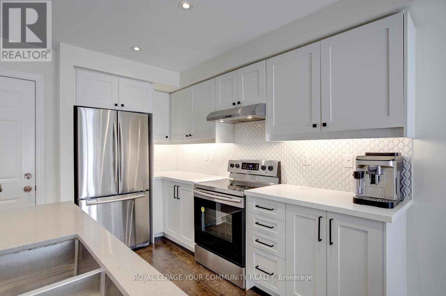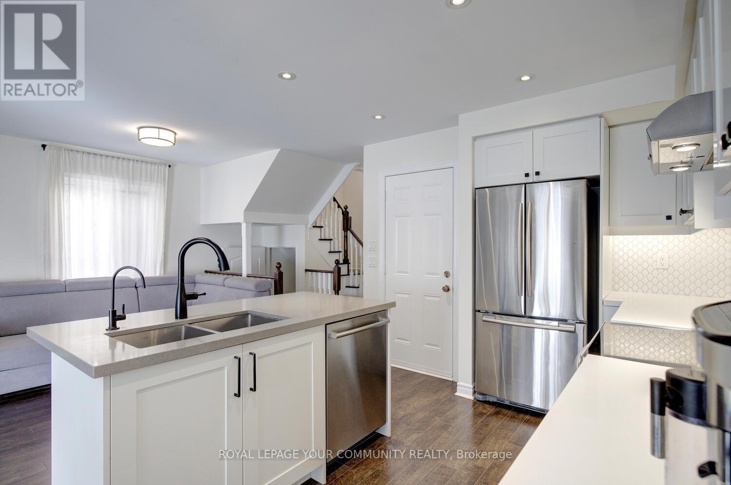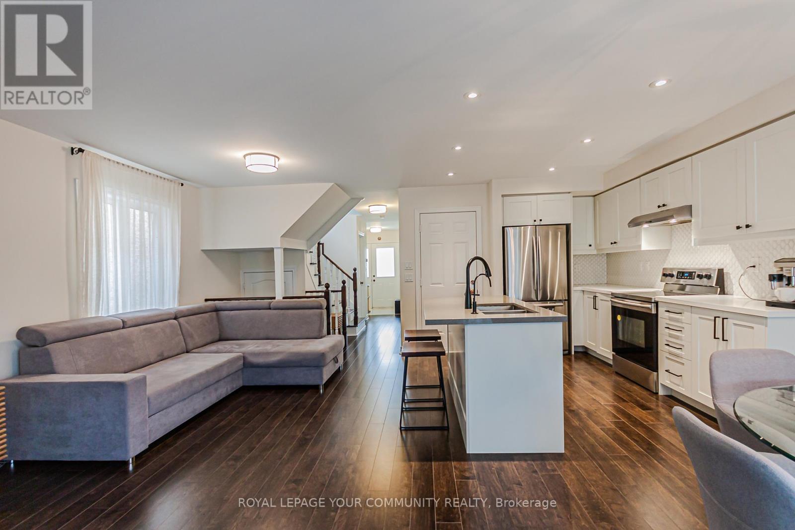 Bright. Beautiful. Move-In Ready! Discover this stunningly upgraded 3-bedroom and 2-storey semi-detached gem in the highly coveted Patterson community complete with a long extended driveway and NO sidewalk for extra parking and curb appeal. Modern Elegance: Open-concept main floor, sleek white kitchen with quartz counters, under-cabinet lighting, breakfast bar, and premium stainless steel appliances. Cozy Luxury: Stone-veneer gas fireplace with custom TV niche anchors the living & dining space. Retreat Upstairs: Double-door master suite with built-in custom closet organizers, spa-style 5-pc bath, frameless glass shower, and dual-sink quartz counter vanity. Finished Basement: Spacious recreation room, 2-pc bath, laundry with sink, and cold room - perfect for entertaining or a private escape. Outdoor Bliss: Private deck and tented backyard for year-round enjoyment. Upgrades Everywhere: Designer lighting, porcelain tile, rich laminate flooring, pot lights, too many to list! Prime Location: Steps to French Immersion & Catholic schools, walk to Maple GO Station, Walmart, shops, and all amenities. Homes like this sell fast in Patterson, come see it! Live here & work in downtown Toronto - walk to Maple Go train station, 30 min to Union Station! Don't miss! Move in & enjoy! (id:64974)