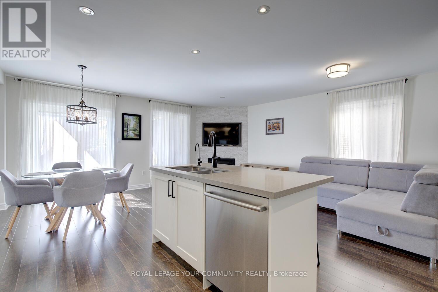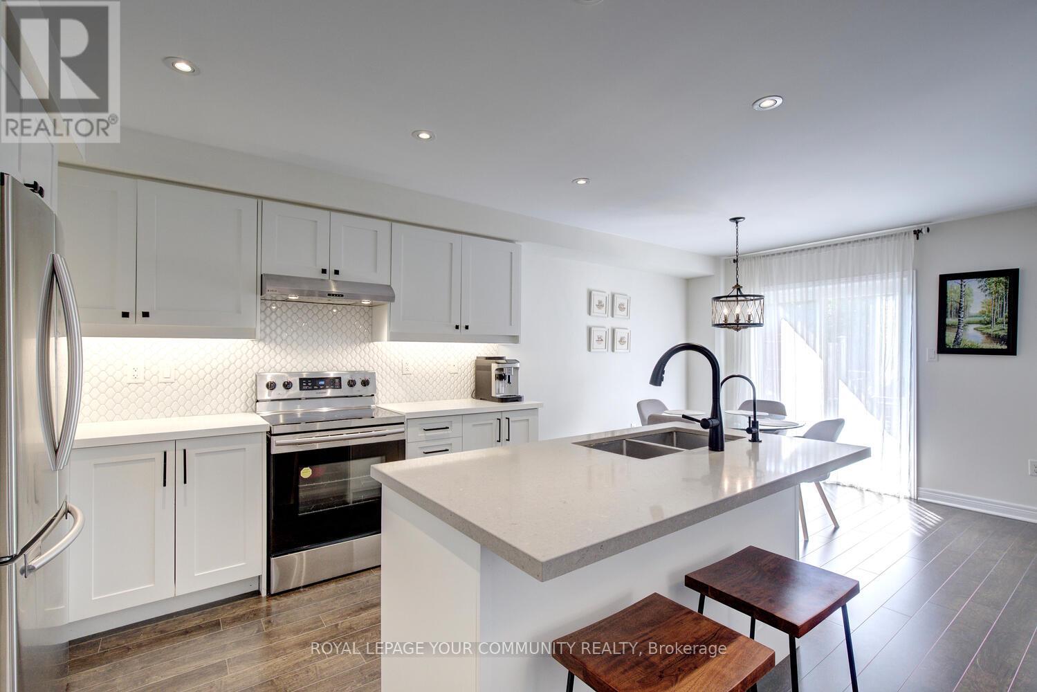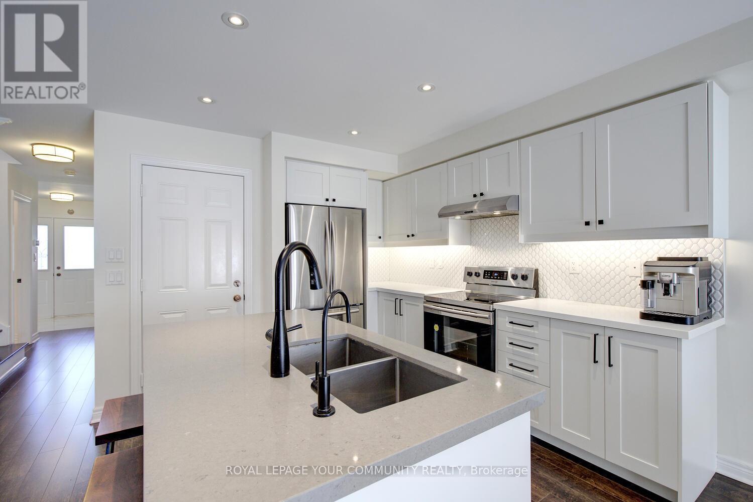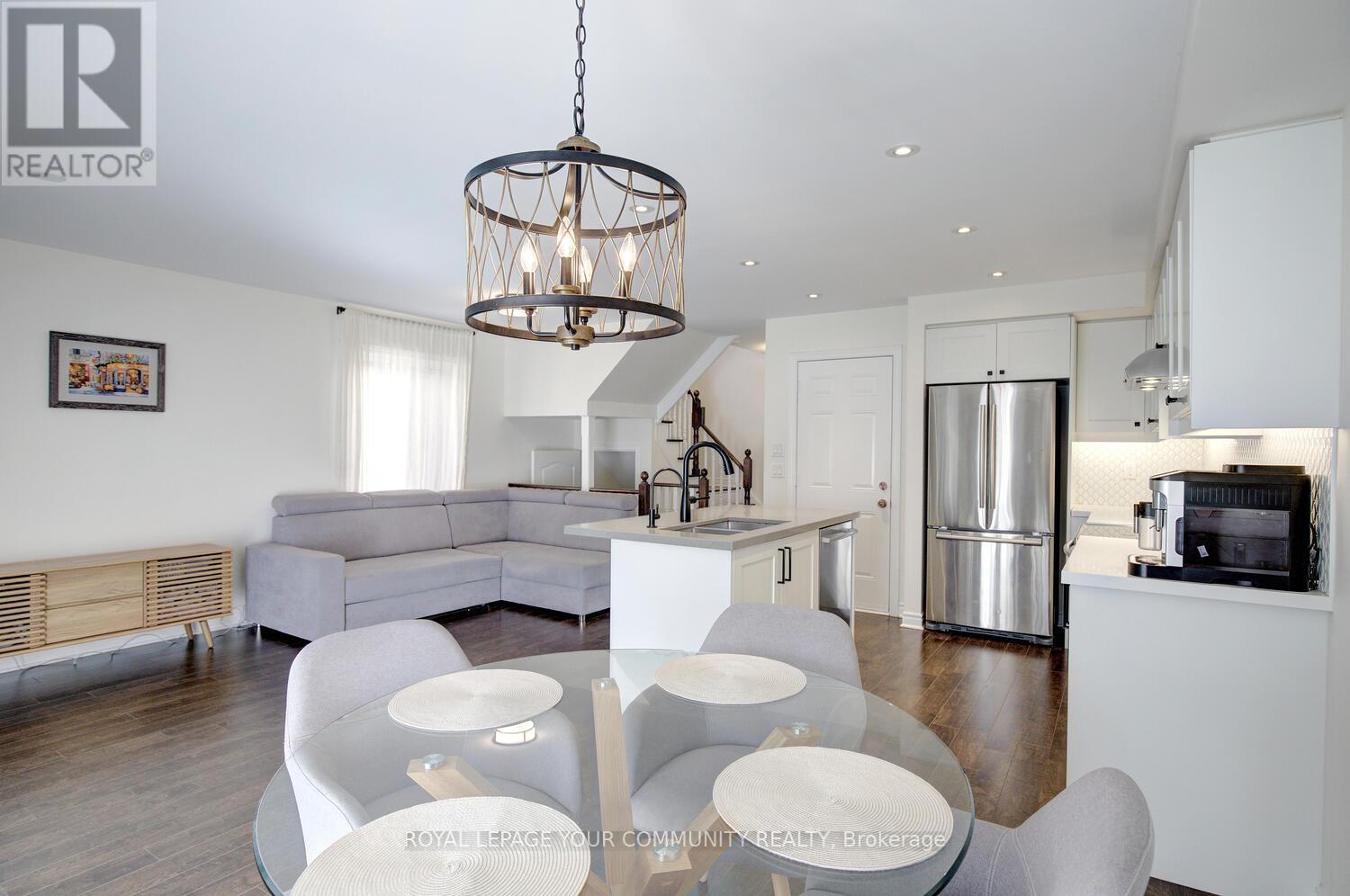 Bright. Beautiful. Move-In Ready! Discover this stunningly upgraded 3-bedroom and 2-storey semi-detached gem in the highly coveted Patterson community complete with a long extended driveway and NO sidewalk for extra parking and curb appeal. Modern Elegance: Open-concept main floor, sleek white kitchen with quartz counters, under-cabinet lighting, breakfast bar, and premium stainless steel appliances. Cozy Luxury: Stone-veneer gas fireplace with custom TV niche anchors the living & dining space. Retreat Upstairs: Double-door master suite with built-in custom closet organizers, spa-style 5-pc bath, frameless glass shower, and dual-sink quartz counter vanity. Finished Basement: Spacious recreation room, 2-pc bath, laundry with sink, and cold room - perfect for entertaining or a private escape. Outdoor Bliss: Private deck and tented backyard for year-round enjoyment. Upgrades Everywhere: Designer lighting, porcelain tile, rich laminate flooring, pot lights, too many to list! Prime Location: Steps to French Immersion & Catholic schools, walk to Maple GO Station, Walmart, shops, and all amenities. Homes like this sell fast in Patterson, come see it! Live here & work in downtown Toronto - walk to Maple Go train station, 30 min to Union Station! Don't miss! Move in & enjoy! (id:64974)