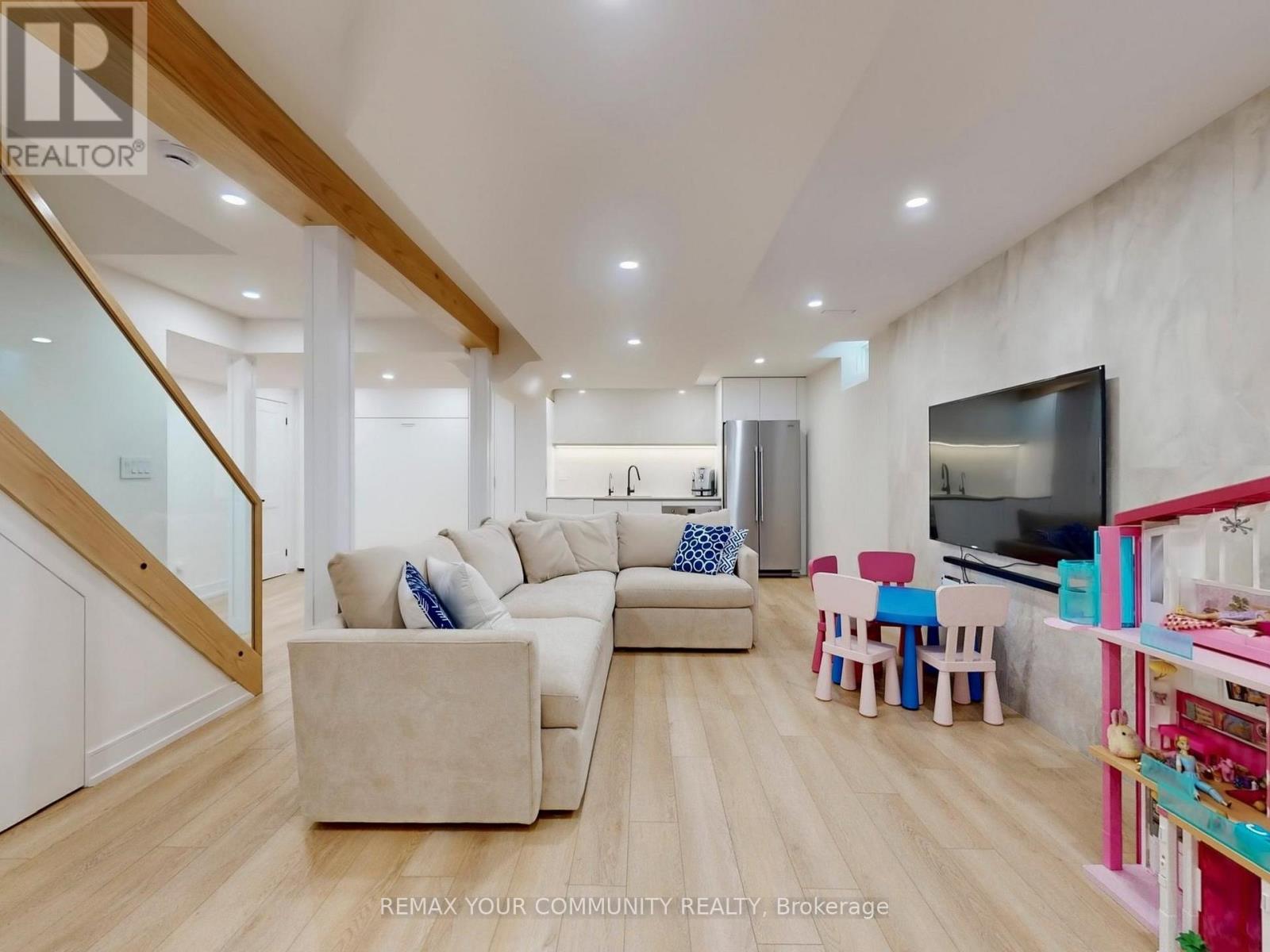 Beautifully Fully Renovated Home in One of the Most Desirable Communities of Thornhill Woods! This stunning home showcases exceptional craftsmanship, modern finishes, and thoughtful upgrades throughout. The open-concept kitchen features Caesarstone countertops, a large center island with breakfast bar, built-in pantry, spice racks, corner pull-out organizers, pot filler, and under-cabinet lighting, overlooking a bright breakfast area and the backyard. The inviting family room offers a cozy fireplace, custom built-in shelving, built-in speakers, and pot lights throughout. A formal dining room with elegant wall wainscoting provides a perfect space for entertaining. The upper level features four spacious bedrooms with custom built-in closet organizers and beautifully renovated bathrooms with Caesarstone countertops, including heated floors in the second-floor and basement bathrooms. A stylish staircase with decorative wall wainscoting adds architectural charm. The professionally finished basement offers a large modern recreation room, a modern bathroom , cold room, and a separate mirrored room with extra ventilation, ideal for a home gym, and plenty of storage spaces. Additional features include a Murphy bed and a mini bar with built-in dishwasher,stove and extra refrigerator, perfect for guests and entertaining. The home also features a custom 36-inch fibreglass front entry door, smart switches on the main and second floors, and numerous modern upgrades. Exterior highlights include an extended stone driveway with no sidewalk, an epoxy-finished garage floor with tire racks, and a private backyard with interlock patio stone, mature privacy trees, and a gas BBQ line. Ideally located within walking distance to parks, schools, and public transit, and just minutes to shopping plazas, restaurants, Highway 7, and Highway 407, offering both convenience and an exceptional lifestyle. (id:64974)