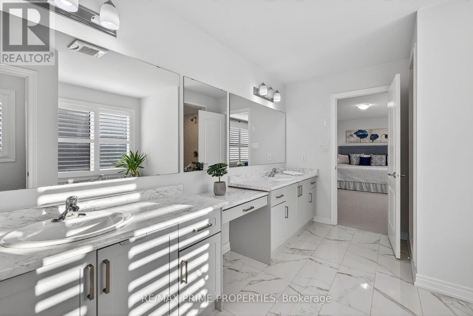 OFFERS ANYTIME - TRUE PRICING. Welcome to this truly distinguished residence, built in 2021, offering over 3,000 sq ft of refined living space. With four generous bedrooms, each accompanied by its own full ensuite (1 is shared), this home effortlessly combines modern comfort, elegant design, and family-friendly functionality. Interior Highlights: step into a light-filled foyer that leads to an inviting eat-in kitchen with a massive quartz island all overlooking the great room, a private office and dining room ideal for gatherings, large or intimate. All with large windows allowing tons of natural light. 32 Frederick Taylor Way is more than just a house-it is a sophisticated, turn-key home built for modern living, with luxury touches and a layout that supports both privacy and connection. With four bedrooms, four bathrooms, 2nd floor laundry room, over 3,000 sq ft plus an untouched basement, and fresh 2021 construction, it offers an exceptional opportunity for any homeowner. Included in this sale: existing stainless steel fridge, gas stove, dishwasher, washer & dryer, water softener system, 1 garage door opener, all electric light fixtures, outdoor Gemstone lighting, high efficiency gas furnace with HRV and central air conditioner, untouched basement with rough-in (id:64974)