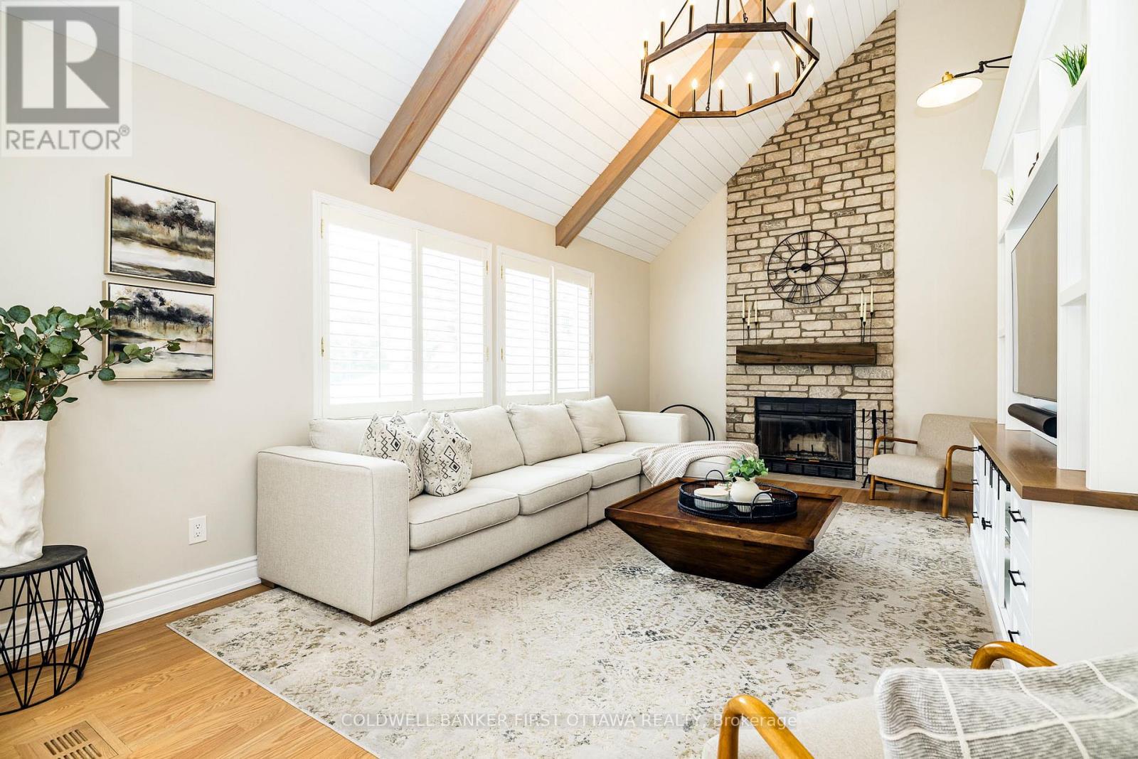 Set on a premium corner lot in Crossing Bridge, one of Stittsville's most walkable neighbourhoods. This home offers a rare balance of space, function, and lifestyle. The unique reverse pie-shaped lot creates an expansive front and side yard, while the private backyard is designed for summer with an inground saltwater pool and stone patio. The main floor is the true focal point of the home, with a seamless flow between living, dining, and kitchen spaces. The stunning, upgraded kitchen anchors it all, while the sunken family room features a breathtaking stone fireplace, creating a warm and inviting place to gather. Upstairs, a spacious loft offers flexibility as a fifth bedroom, playroom, office, or whatever suits your family's needs. The primary suite features a walk-in closet and private ensuite, complemented by three additional full-size bedrooms and a main bath. Freshly painted with designer lighting throughout, the home feels cohesive and move-in ready. The fully finished lower level extends your living space with a recreation area, bar, gym, office, full bath, and newly redone flooring, offering incredible flexibility for growing families, a home-based business, or creative studio space. Located just steps to schools, parks, restaurants, fitness studios, and everyday essentials, this home offers the rare ability to enjoy suburban living without giving up walkability. With easy highway access, this is a home that delivers both convenience and a true sense of community. (id:64974)