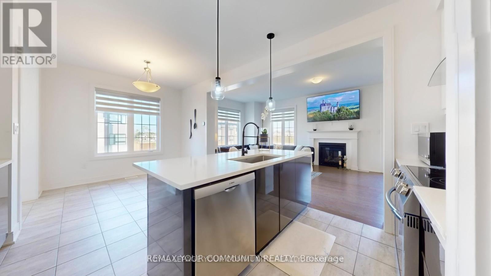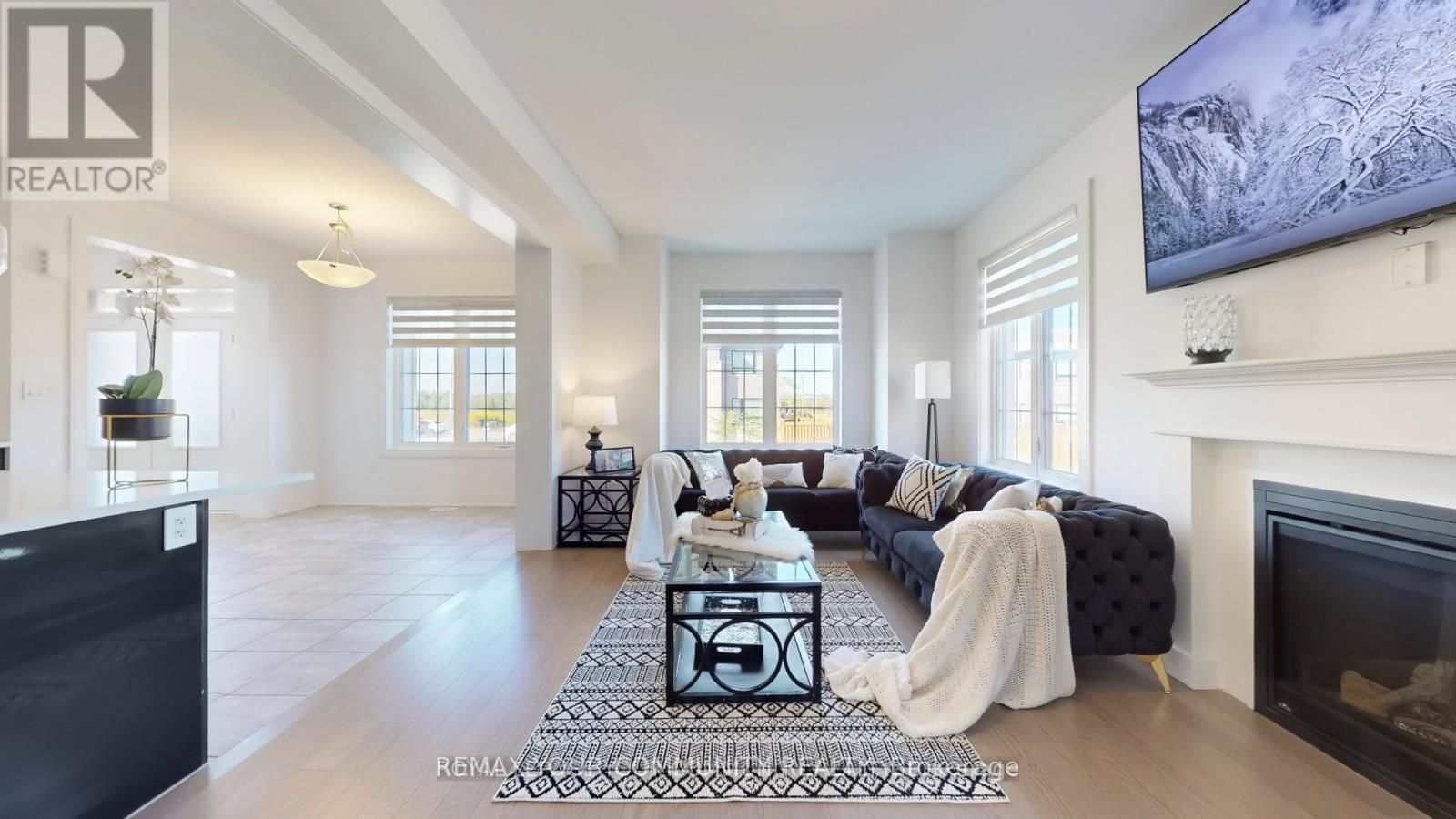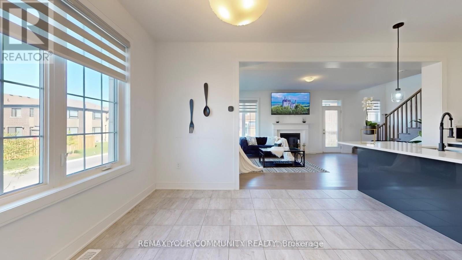 Welcome to this stunning, ONE-year-new detached residence situated on a premium corner lot! Featuring an attached 2-car garage, a double-wide driveway, and NO SIDEWALK, this property offers both convenience and curb appeal. Step through the inviting double-door entry into a bright, open-concept layout highlighted by 10 ft. ceilings, hardwood flooring, and custom zebra blinds throughout the main and second levels. The heart of the home is the impressive eat-in kitchen, complete with a large island with breakfast bar, quartz countertops, high-gloss cabinetry, stainless steel appliances. Cozy dining area. The open-concept living room is equally inviting, showcasing a natural gas fireplace and a walkout to the backyard. The main floor also features a stylish 2-piece bath, two closets, and direct garage access. Elegant oak stairs lead to the upper level, where the spacious primary suite awaits with a walk-in closet and a luxurious 4-piece ensuite offering two sinks and a shower with glass door. Three additional bedrooms, each with double closets plus a 4-piece main bath with two sinks provide plenty of room for family and guests. A full, unfinished basement offers endless potential for customization and future expansion. Perfectly located near shopping, restaurants, schools, public transit, and more, this home also provides easy access to Highway 400 and Highway 27 for seamless commuting. (id:64974)