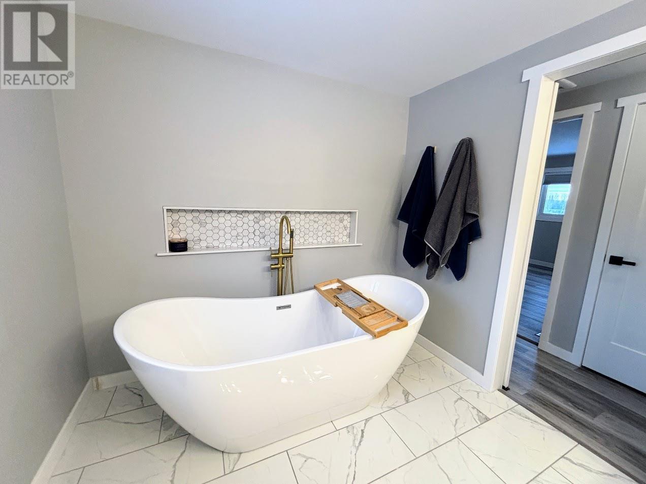 Welcome to this beautiful 2-storey home where modern luxury, thoughtful design, and natural surroundings come together. Step through the front door into a formal mudroom. From here, you’re welcomed into a bright and spacious living room bathed in natural light. The room is anchored by a stunning electric fireplace, wrapped in a white stone veneer that serves as an elegant centerpiece. This warm and inviting space is perfect for relaxing evenings or hosting guests. The main floor continues into a modern kitchen designed with both function and style in mind. Offering abundant counter space and clean contemporary finishes, this kitchen is ideal for anyone who loves to cook or entertain. The kitchen flows seamlessly into the dining area—a welcoming space perfect for family dinners. Upstairs, the home continues to impress with a well-planned layout. The primary bedroom is generously sized and features a large walk-in closet, offering plenty of storage. The standout on this level is the updated bathroom, designed with spa-like comfort in mind. It showcases glossy tile flooring, a coastal-blue dual-sink vanity, and a deep soaker tub—creating a serene retreat ideal for unwinding at the end of the day. Three additional bedrooms complete this level. A cozy rec room offers the perfect spot for movie nights and hobbies. This level also includes a dedicated laundry area, a utility room, and a convenient 3-piece bathroom. One of the most exceptional features of this property is its setting. The massive backyard provides endless opportunities for outdoor enjoyment, gardening, entertaining, or creating your dream outdoor oasis. Beyond the yard, the property backs directly onto lush greenspace with access to the beloved Blueberry Trail—a beautiful natural corridor. 32 Mona has a 1 car attached garage and shed. With its stylish interior, generous layout, and unbeatable location, this home offers comfort, beauty, and lifestyle—all in one impressive package. (id:64974)
