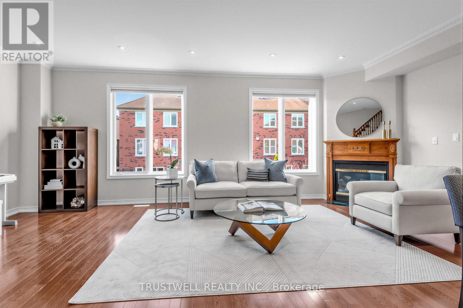 Location is everything-and this freehold townhouse delivers at the highest level. Offering approximately 2,160 sq ft of thoughtfully designed living space, this home is set in an unbeatable location with effortless access to Hwys 407 & 404, transit, and every daily convenience, just minutes from shopping, dining, parks, and top-rated schools-truly at the center of it all. Step inside to a bright, open interior where light and space take center stage. The thoughtfully designed layout offers seamless flow, perfect for both comfortable living and stylish entertaining. Main living areas are elevated by 9 ft smooth ceilings, hardwood flooring, pot lights, and crown moulding, creating a warm yet refined atmosphere. The eat-in kitchen is both striking and functional, featuring quartz countertops, an expansive prep surface, abundant cabinetry, and a layout that overlooks the heart of the home. A desirable south exposure floods the space with natural light throughout the day. Upstairs, enjoy the convenience of second-floor laundry and retreat to a sun-filled, generously sized primary suite complete with a 4-piece ensuite and a walk-in closet with custom organizers, along with two additional well-proportioned bedrooms. A rare opportunity to own a home that perfectly balances lifestyle, comfort, and an exceptional location. St Robert CHS Catchment! (id:64974)