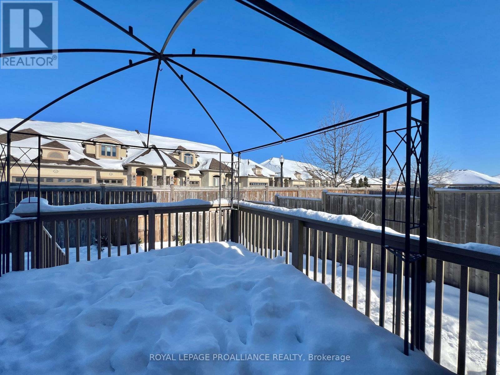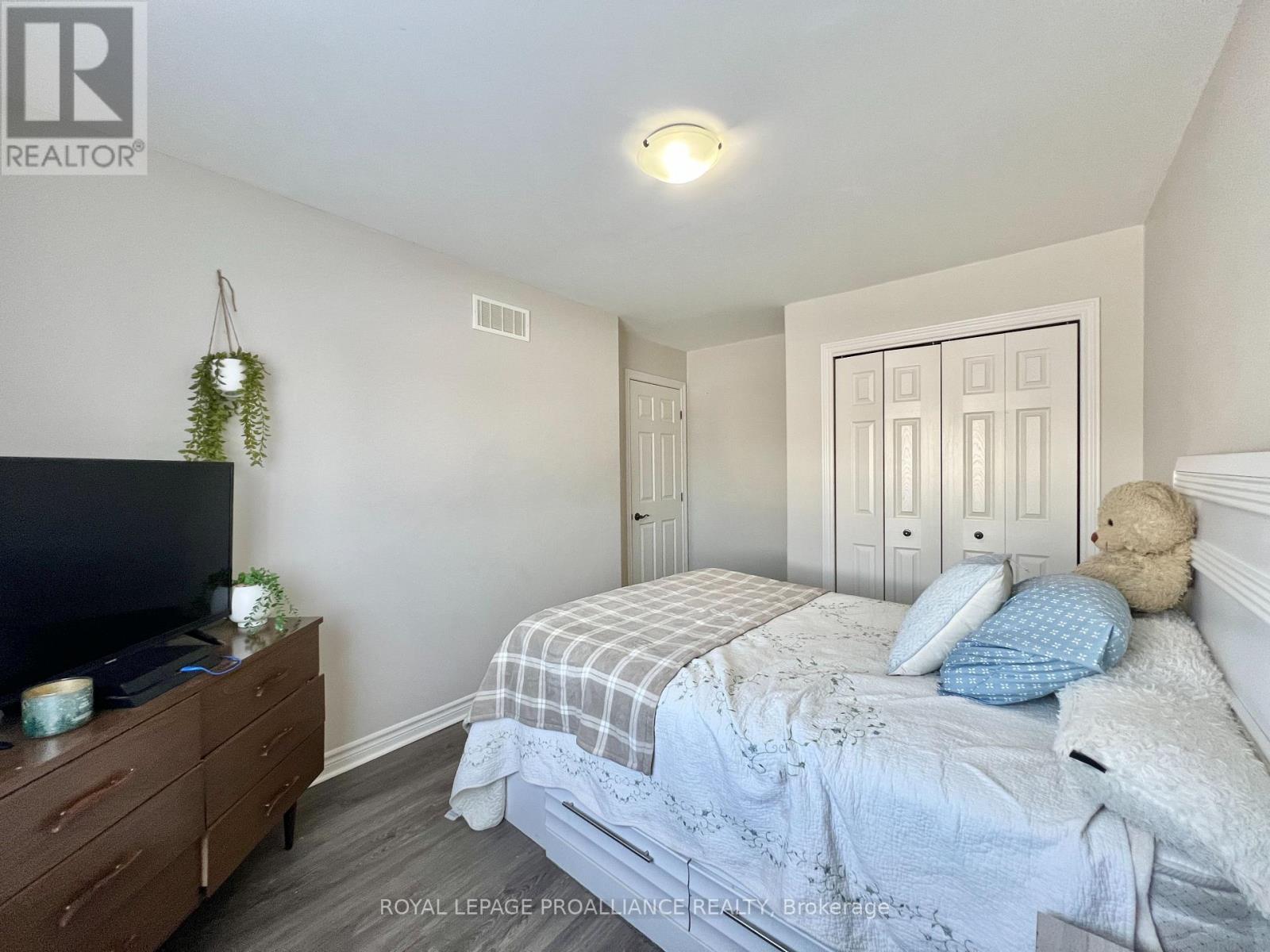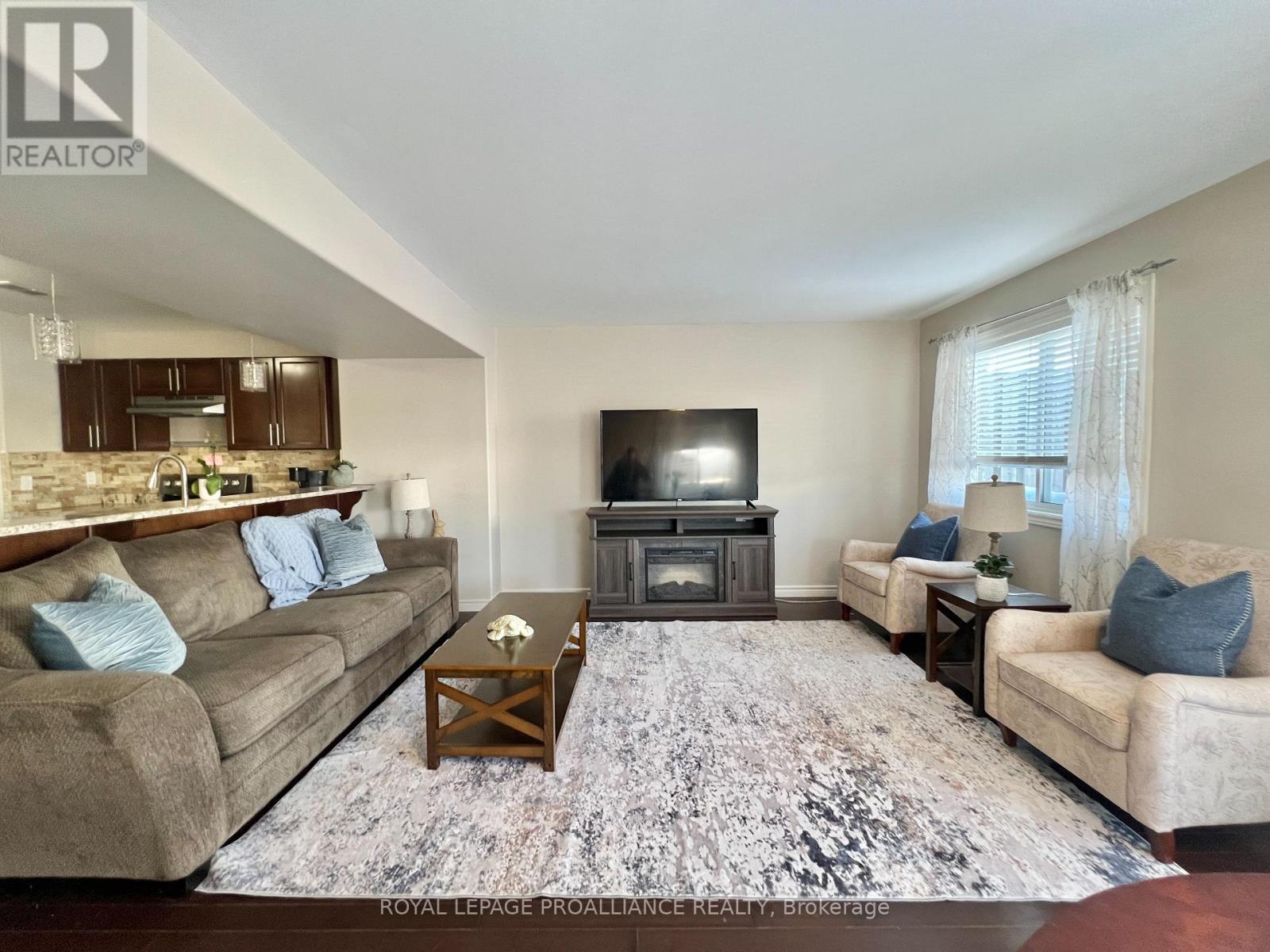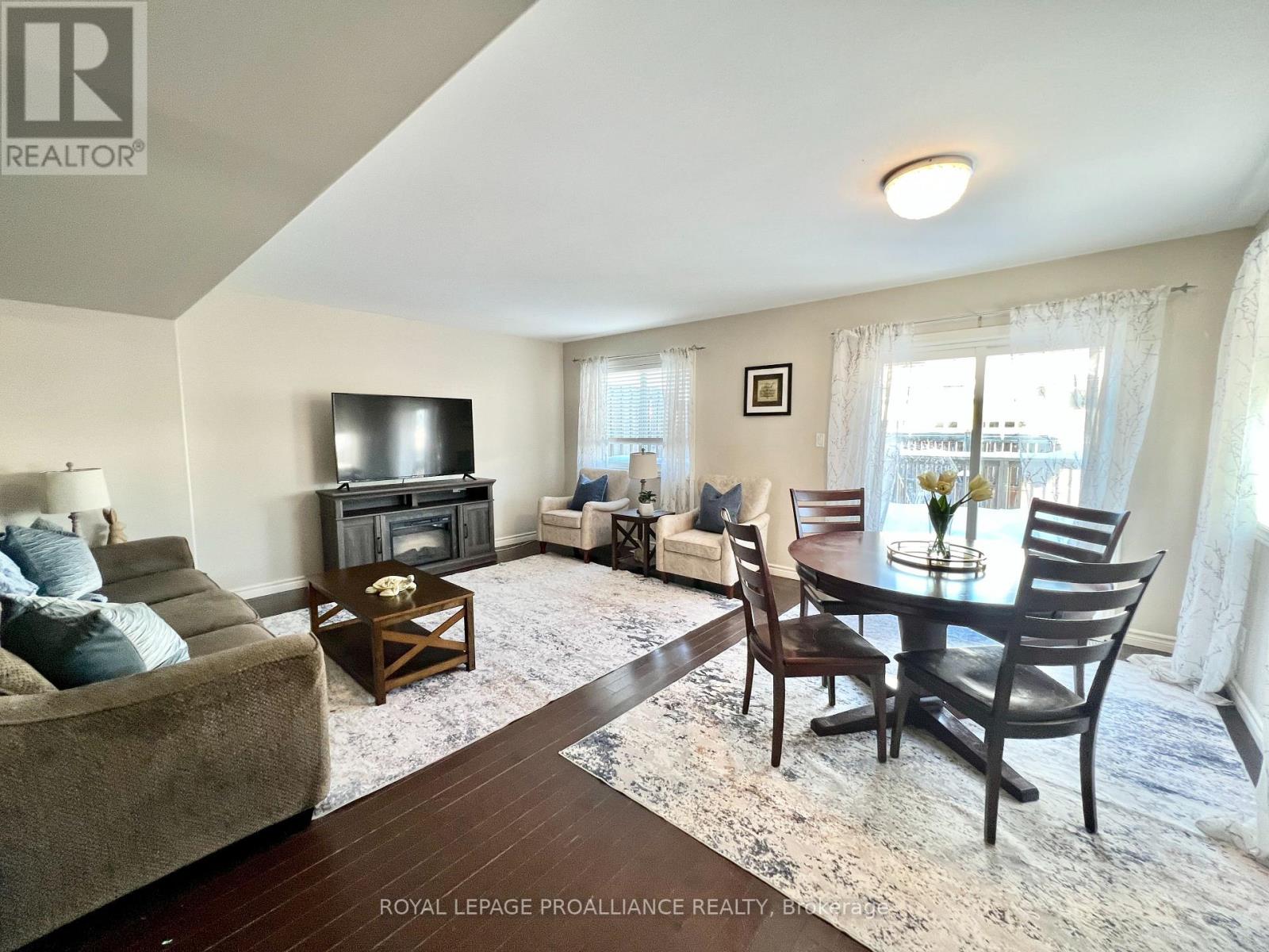 Welcome home to this all-brick freehold end-unit townhome offering 3 bedrooms, 4 bathrooms, and a finished basement, and recognized as one of the largest models on the street having over 2,000 sqft of finished living space. Located in the heart of Stettler's Ridge-an established, family-oriented community just north of the 401-you'll enjoy scenic walking trails, nearby parks, and an excellent commuter location only 15 minutes to CFB Trenton. Step inside to a bright, airy main floor where rich hardwood flooring flows through an open-concept layout. The stylish kitchen is the heart of the home, featuring quartz countertops, stainless steel appliances, and a raised breakfast bar-perfect for busy mornings and casual gatherings. Walk out from the dining area to the deck for effortless outdoor entertaining. Upstairs, the spacious primary retreat boasts a vaulted ceiling, walk-in closet, and private ensuite. Two additional bedrooms, a full bath, and convenient second-floor laundry make everyday family life easy. The finished basement adds outstanding flexibility with a rec room, 3-piece bath, and an unfinished space ideal for a future kitchenette-perfect for guests or in-laws. As an end unit, this home is filled with natural light and offers easy access to yard space. Completing the package is a widened driveway with parking for three cars, plus a single-car garage with interior entry. Space, light, and location-all the right moves for your next chapter. (id:64974)