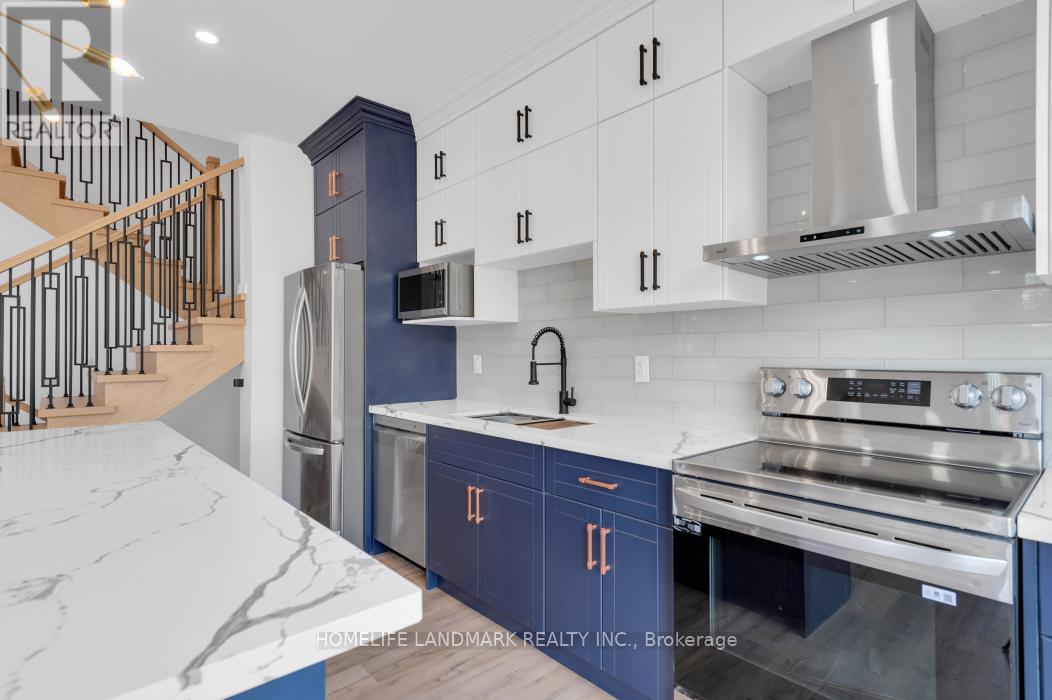 Freehold luxury new townhome! Main & second floor 1587 sq ft plus finished basement 906 sq ft, finished garage 215 sq ft, modern finished 3 large bedrooms, 4 washrooms, open concept kitchen quartz countertop 3ft x 8ft breakfast island. Red oak stair through out 3 floors. Large glass curbless showers with linear drains. Insulated Concrete Form (ICF) foundation best value for moisture, sound and insulation. Municipal water, sewer services natural gas heating with tankless water heater, central air conditioning. 7 years Tarion new home warranty. Close to shopping amenities, hospital care center and new Sunny Life Wellness & Recreation Centre. Please note this is a new lot to be registered, and tax has not assigned yet. All measurements are approximate and subject to change without notice. **EXTRAS** AC, fridge, dryer, washer, microwave, stove, dishwasher, electrical fireplace and EV charger included. 200-amp services. (id:64974)