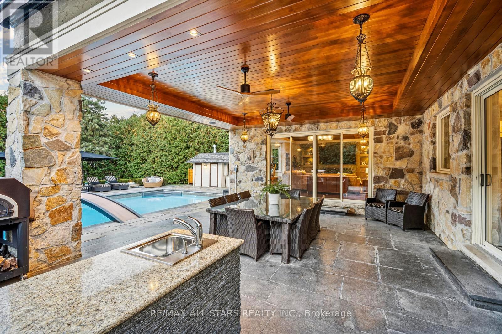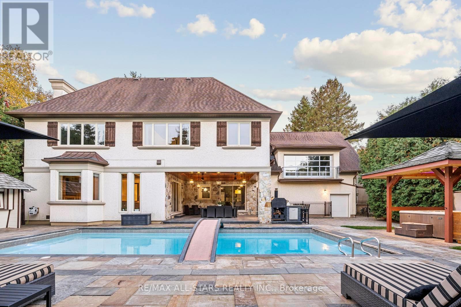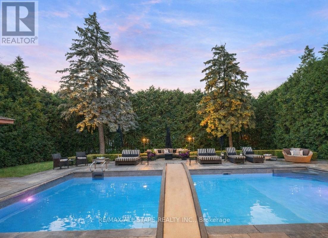 A rare opportunity on one of Unionville's most prestigious streets, 32 Wembley Avenue is an exceptional custom residence where timeless architecture and resort-inspired living come together on a spectacular 100 x 232 ft private lot. Just steps from the scenic trails of TooGood Pond, cafés, boutiques, and restaurants of historic Main Street Unionville. This remarkable home offers an extraordinary lifestyle in one of Markham's most sought-after communities. Inspired by classic French-Chateau architecture, the striking exterior features natural stone and stucco, copper accents, artisan-crafted oak and walnut doors, complemented by a three-car garage and professionally landscaped grounds. Inside, a dramatic cathedral foyer welcomes you to over 6,100 sqft of living space above grade, plus a finished lower level. Elegant principal rooms with soaring ceilings and expansive windows fill the home with natural light. The gourmet kitchen and adjoining family room overlook the backyard creating an inviting space ideal for everyday living and entertaining.The home offers 5+1 bedrooms & 8 bathrooms, including a luxurious primary suite with vaulted beamed ceilings and a beautifully updated ensuite. A spectacular entertainment loft crowns the home with 16-ft vaulted ceilings, barn-wood accents, retractable glass garage door, glass balcony, DJ booth, and custom wet bar. The backyard oasis features a resort-style pool with walk-over arch, limestone waterfall, covered terrace with cedar ceilings, outdoor kitchenette and bar, gazebo with jacuzzi, cabana bathroom, and outdoor shower, creating an exceptional setting for outdoor relaxation and entertaining.Located minutes from William Berczy PS, Victoria Square PS (French Immersion), Unionville High School, & Pierre Elliott Trudeau High School, as well as parks, shopping, and major commuter routes. Feng Shui approved by Master Paul Ng. 3 Money Centres. Also Controlling power for learning centres. Great energy for Health and relations. (id:64974)