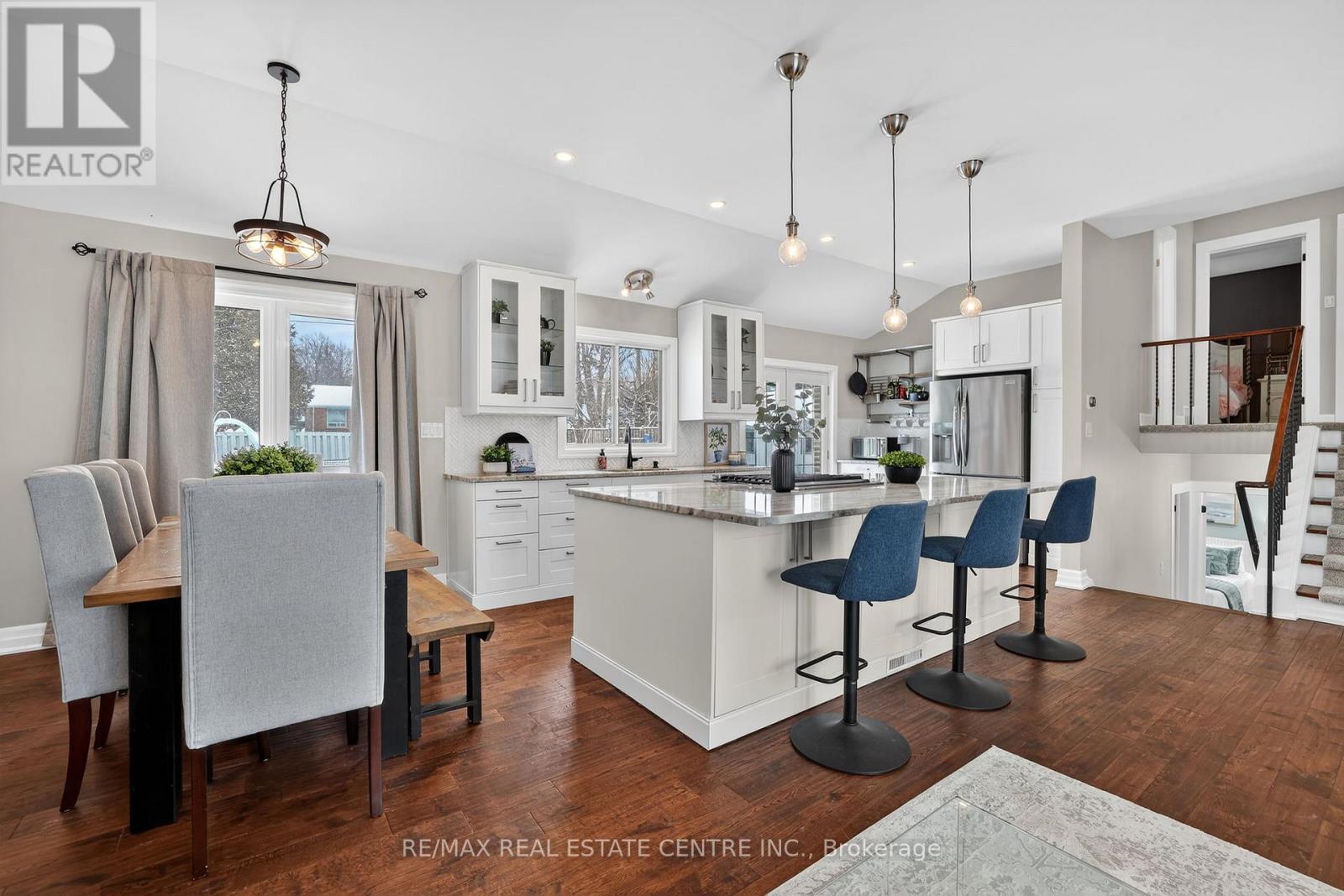 Fully finished 4-level sidesplit on a premium 60 x 130 ft lot in one of Orangeville's most desirable, mature neighbourhoods. This is not your typical subdivision setting. Towering trees, pride of ownership and a quiet, well-kept streetscape create a private, established feel rarely found in newer areas. Ideally located close to schools while maintaining a peaceful residential atmosphere. Ample driveway space provides parking for up to 5 vehicles, ideal for growing families and guests a like. Inside, the home offers a versatile layout designed to suit a variety of family dynamics. The main level features a stunning open concept living, dining and kitchen space highlighted by a vaulted ceiling and an abundance of natural light, creating a bright and spacious central gathering area. Upper and lower bedroom options provide flexibility for growing families, guests or multi-generational living. The lower level includes above-grade windows, a second family room with a gas fireplace, a private bedroom and bathroom, offering excellent in-law or teen retreat potential. The finished basement adds even more adaptable space perfect for a home gym, office, playroom or media room. Step outside into a south facing backyard oasis on this fully mature, oversized lot. Enjoy the in-ground pool complete with a new heater, extending your swimming season for months at a time. The expansive yard still offers plenty of manicured lawn space for recreation, entertaining and everyday enjoyment. A rare opportunity to own a spacious home on a large lot in a sought-after Orangeville location. (id:64974)