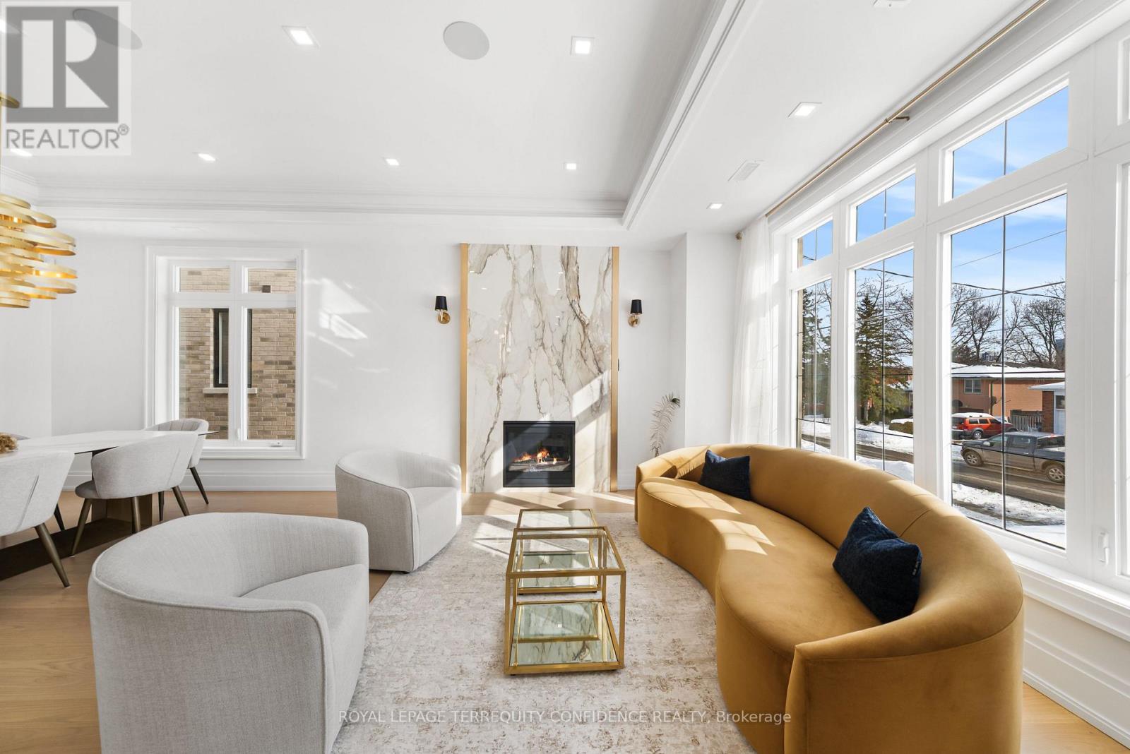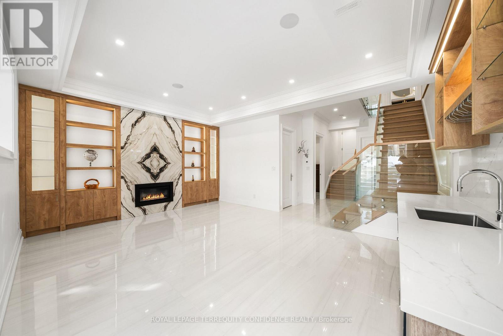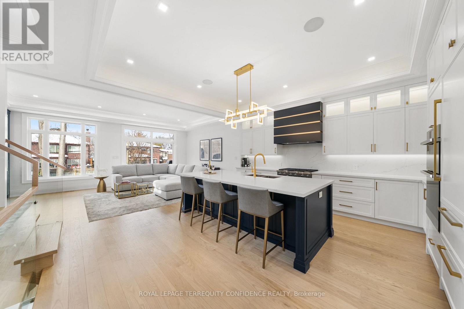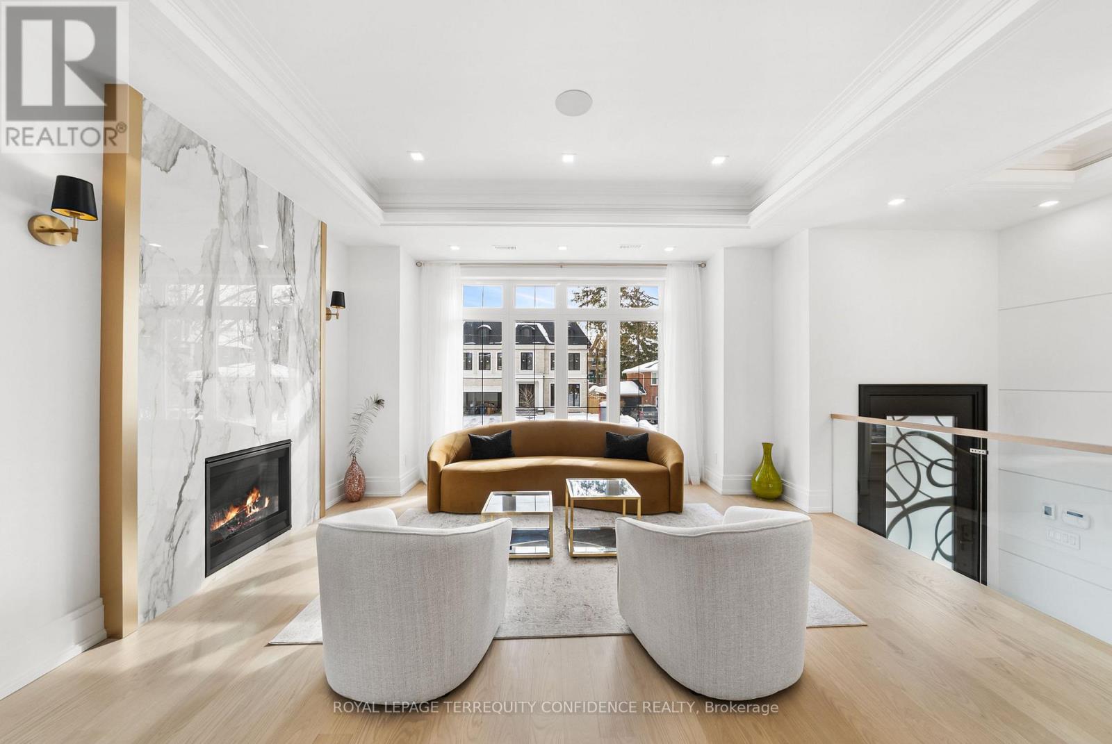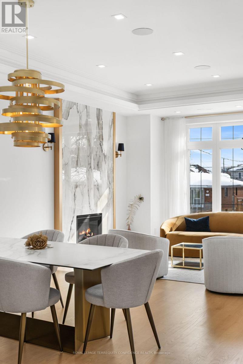 Welcome to 320 Hounslow Avenue, a distinguished luxury residence in the heart of Willowdale West, owner-occupied since completion! This elegant home makes an immediate impression with its eye-catching design, spacious floor plan, and meticulous craftsmanship with refined finishes, found throughout. In the thoughtfully designed interior, discover the bright living and dining areas, beautiful eat-in kitchen (complete with B/I appliances, a generous center island, quartz countertops & backsplash), and sizeable family room that walks out to the deck. Upstairs, an alluring skylight sets the scene for the upper level: that features four bedrooms, including the private primary suite with a large walk-in closet, fireplace, built-in speakers, & a glowing 6-piece ensuite (with heated floors & freestanding soaker tub). The finished walk-out/walk-up basement is an entertainer's haven; brightly lit with natural light flowing in through large above-grade windows, boasting a marvelous recreation room with heated porcelain floors, wet bar & gas fireplace, and an additional bedroom & bath. Discover what it means to live in both peace and opulence, with even more features found throughout: hardwood floors, built-in large slab gas fireplaces, LED pot lights & strip lights, cozy cove lighting, interlocking driveway, central vacuum, second-floor laundry, and more. Ideally situated a walking distance to local parks, schools, community center, TTC/transit, shops, coffee, and a minutes' drive to Yonge St. This home is truly a sanctuary in a highly-desired neighborhood. Welcome home! (id:64974)