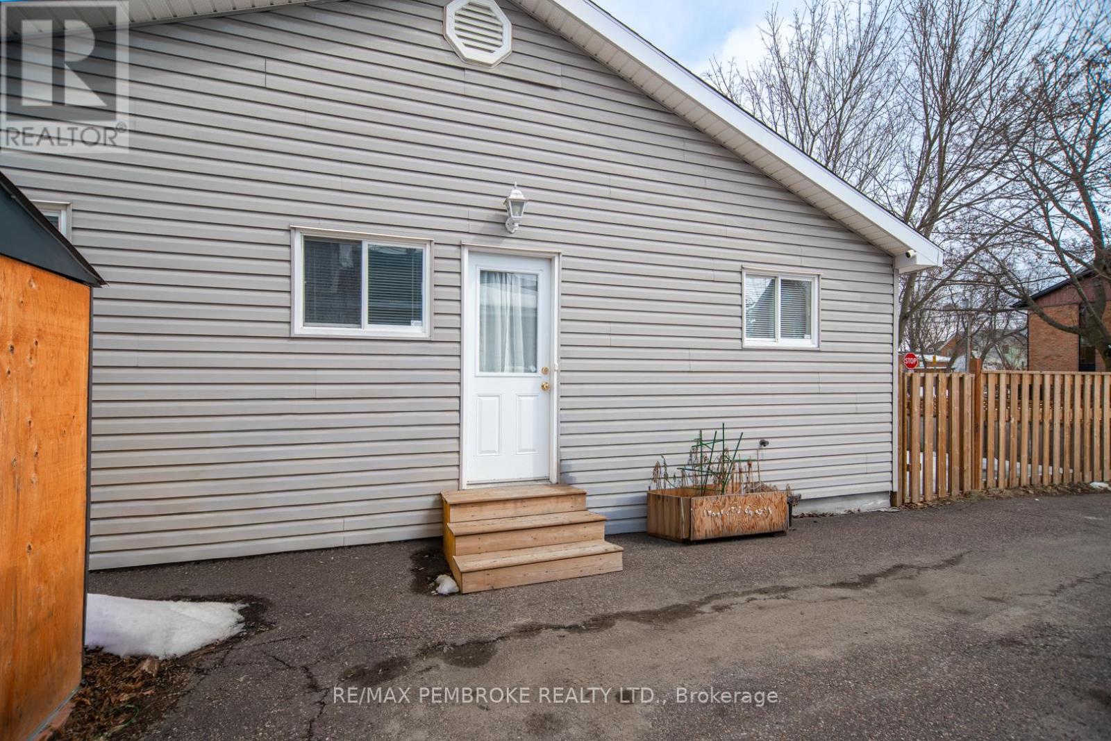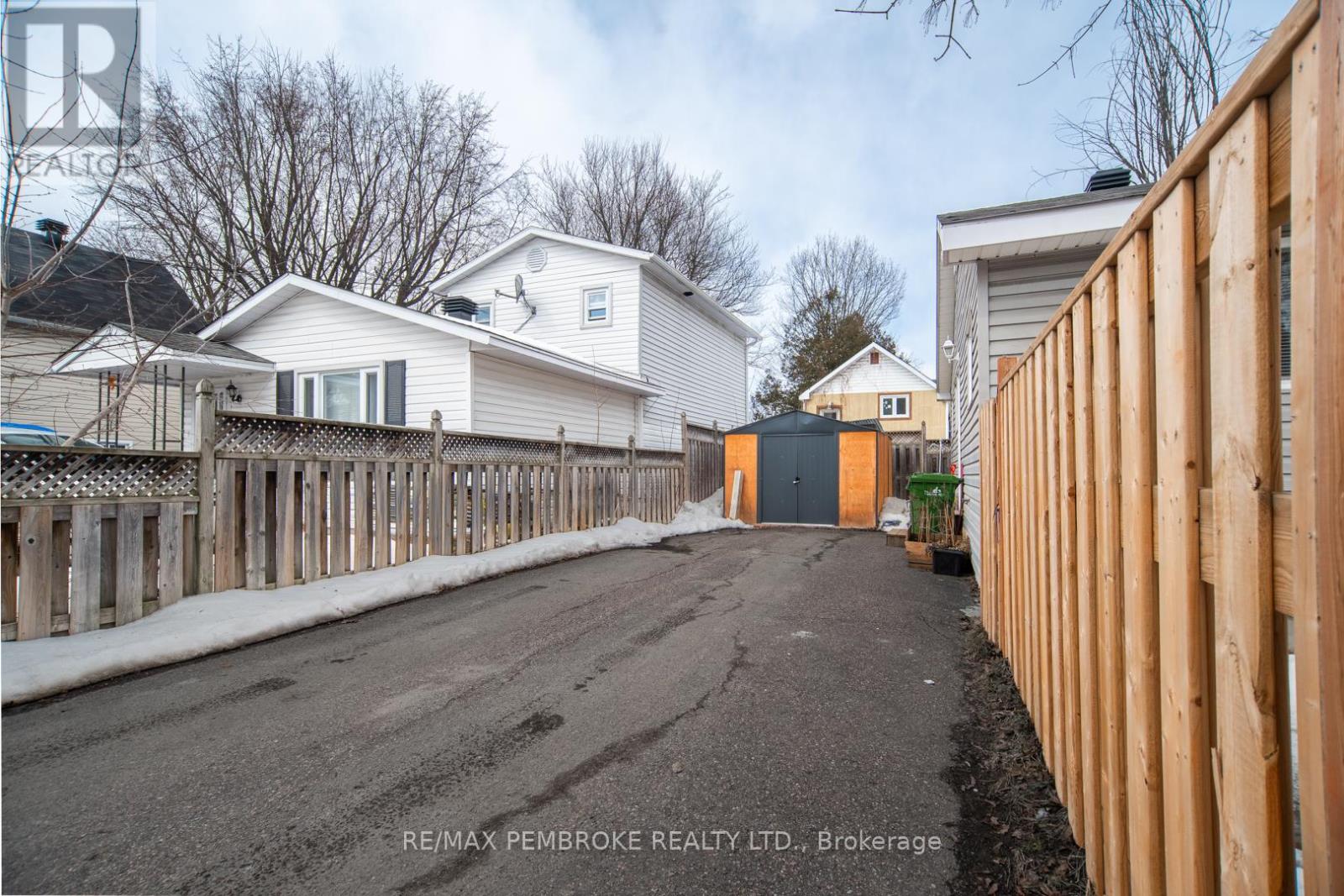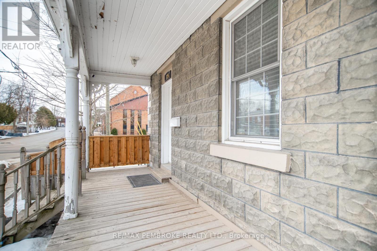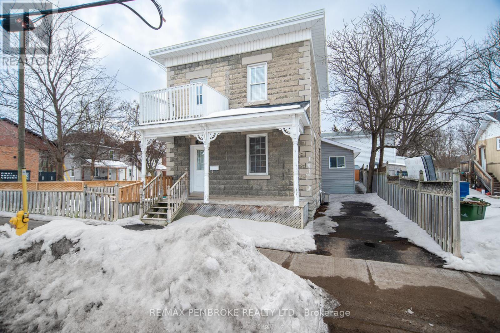 This two-story home is a rare find, offering both affordability and convenience in a prime central location, just a leisurely stroll away from downtown Pembroke. Whether you're a first-time home buyer or looking to downsize, this property is a fantastic opportunity you won't want to miss. The main floor opens with a spacious foyer leading to a large kitchen with oak cupboards, providing ample storage, spacious dining and living areas with gleaming hardwood flooring throughout. The main floor also features a good sized mudroom with a convenient laundry area, making everyday chores a breeze and a bedroom complete with a full en-suite. The second floor has 2 good sized bedrooms, also with hardwood flooring and a full bathroom. One of the bedrooms leads to a charming balcony perfect for a morning coffee or evening glass of wine. The full basement is perfect for all your storage needs, offering plenty of space to keep your belongings organized and out of sight. The property features 2 separate driveways for easy access and lots of guest parking, a fenced in green space and a storage shed which offers additional space for your tools and hobbies. Relax on the front veranda or cozy up with a book in the enclosed side porch. Enjoy the close proximity to shops, restaurants, parks, and community events that make Pembroke a desirable place to call home. At this price, this home offers a great opportunity to invest in your future. Book your viewing today! 48 hour irrevocable on offers. (id:64974)