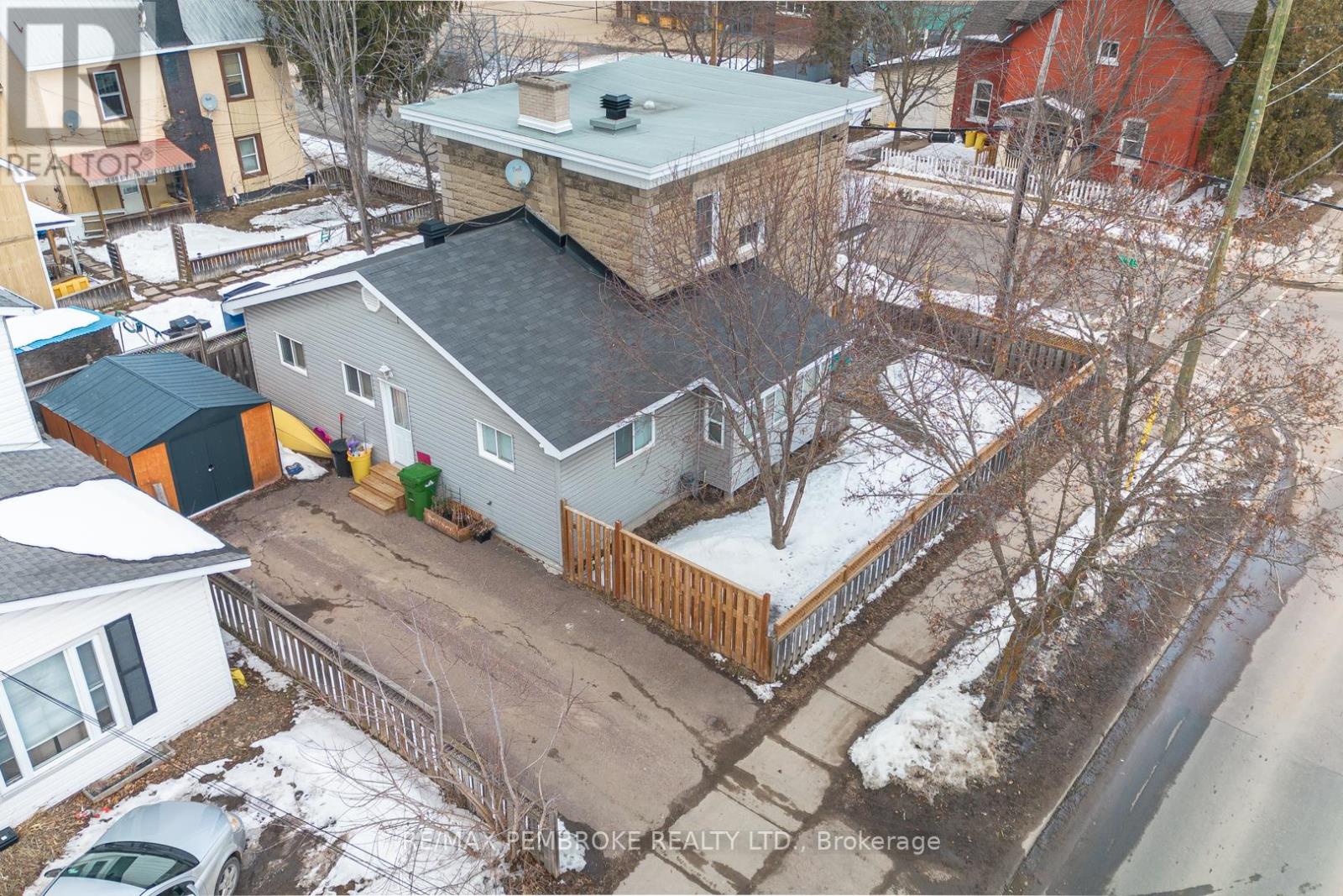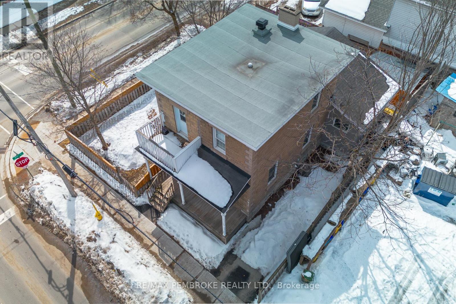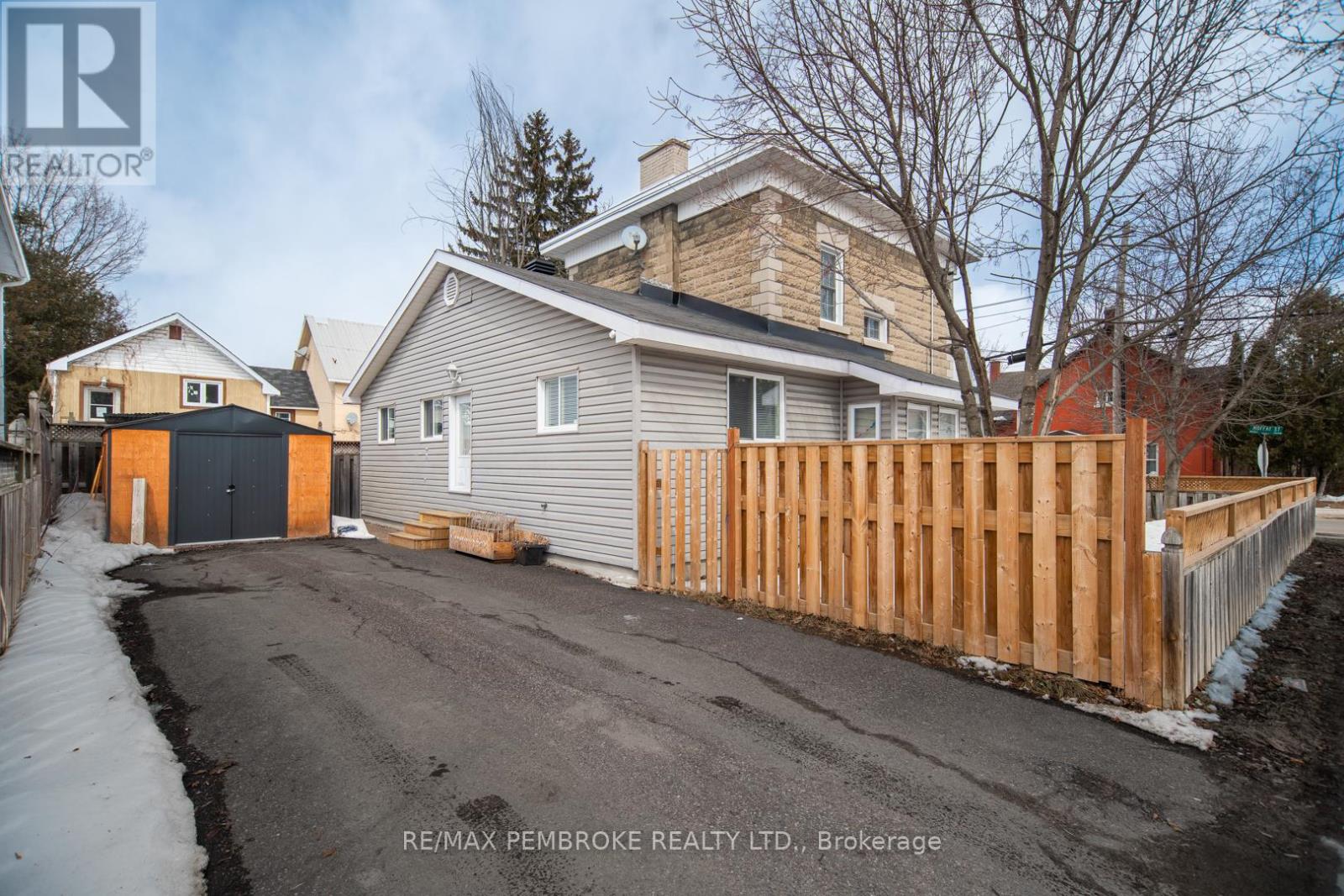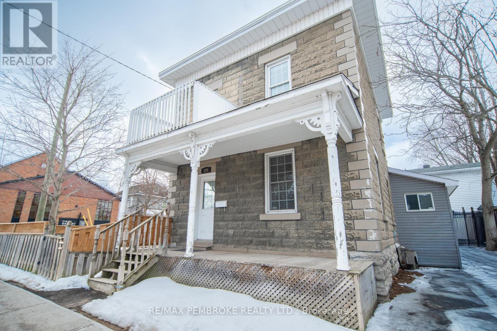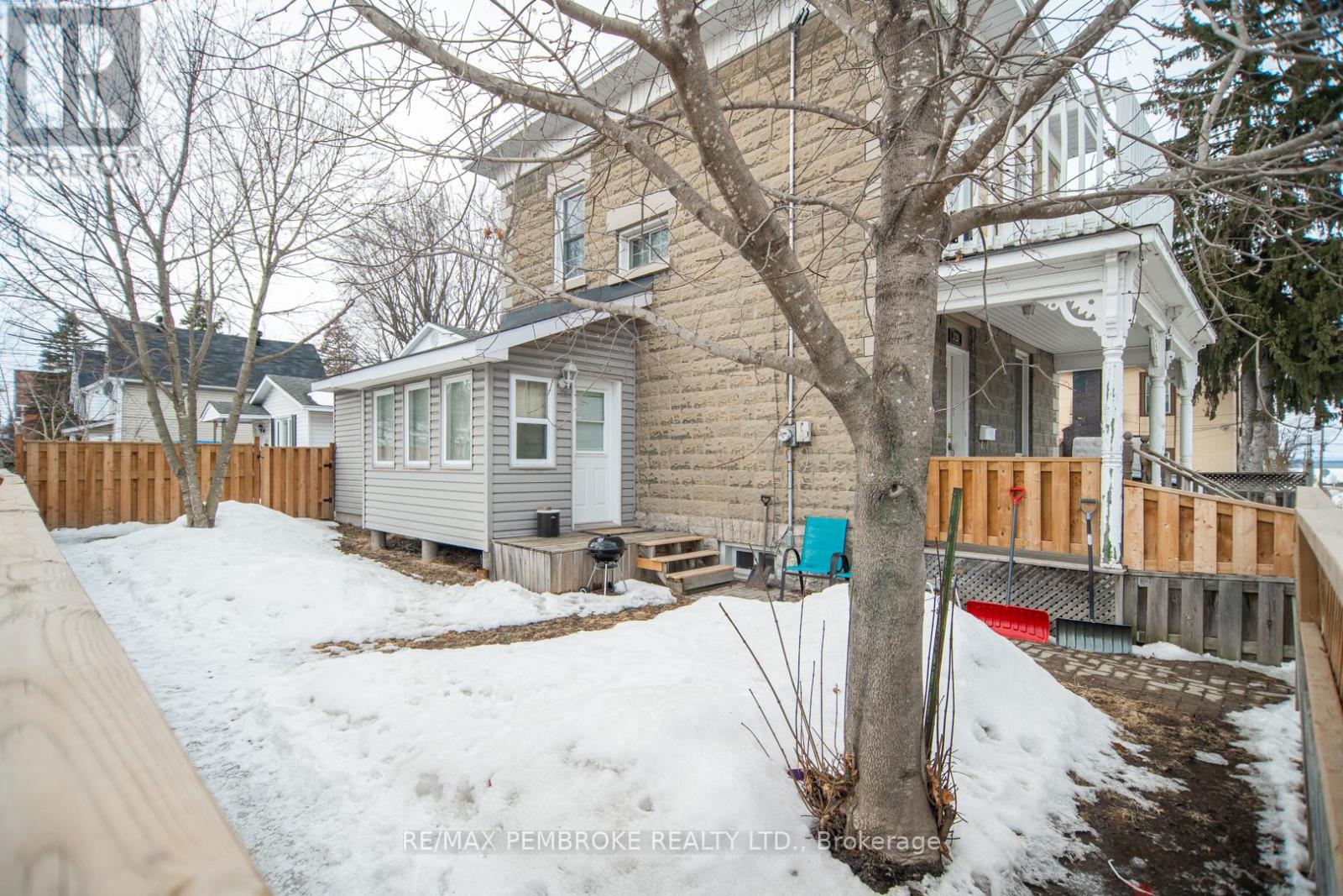 This two-story home is a rare find, offering both affordability and convenience in a prime central location, just a leisurely stroll away from downtown Pembroke. Whether you're a first-time home buyer or looking to downsize, this property is a fantastic opportunity you won't want to miss. The main floor opens with a spacious foyer leading to a large kitchen with oak cupboards, providing ample storage, spacious dining and living areas with gleaming hardwood flooring throughout. The main floor also features a good sized mudroom with a convenient laundry area, making everyday chores a breeze and a bedroom complete with a full en-suite. The second floor has 2 good sized bedrooms, also with hardwood flooring and a full bathroom. One of the bedrooms leads to a charming balcony perfect for a morning coffee or evening glass of wine. The full basement is perfect for all your storage needs, offering plenty of space to keep your belongings organized and out of sight. The property features 2 separate driveways for easy access and lots of guest parking, a fenced in green space and a storage shed which offers additional space for your tools and hobbies. Relax on the front veranda or cozy up with a book in the enclosed side porch. Enjoy the close proximity to shops, restaurants, parks, and community events that make Pembroke a desirable place to call home. At this price, this home offers a great opportunity to invest in your future. Book your viewing today! 48 hour irrevocable on offers. (id:64974)