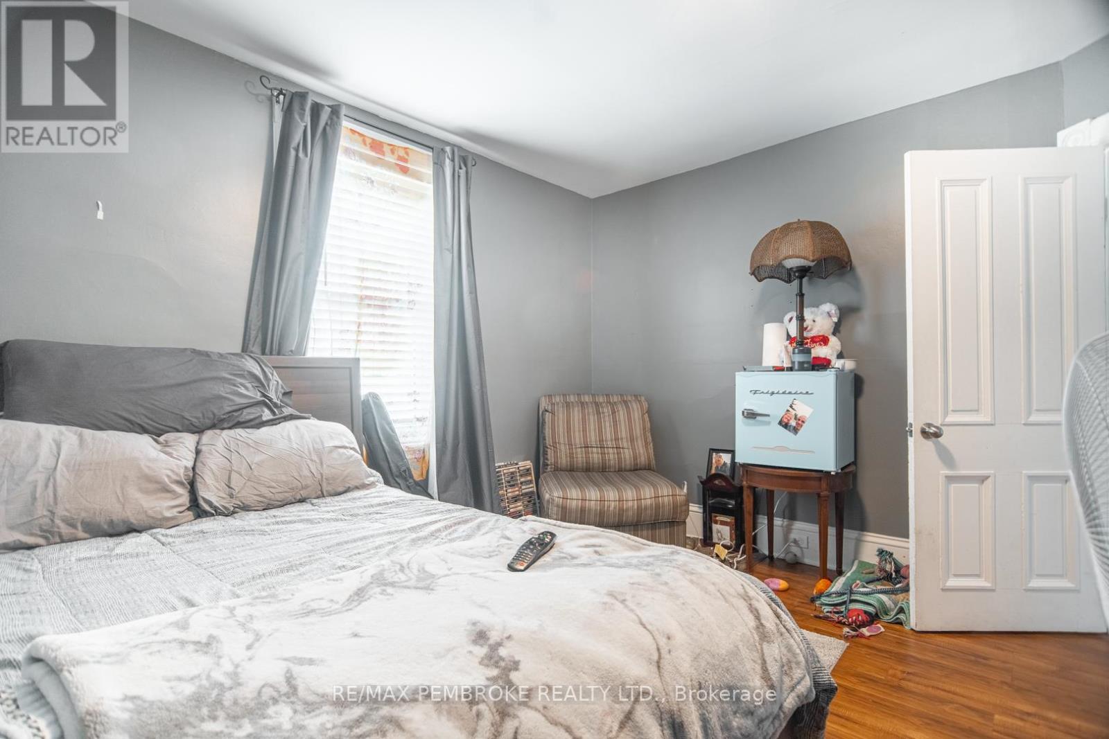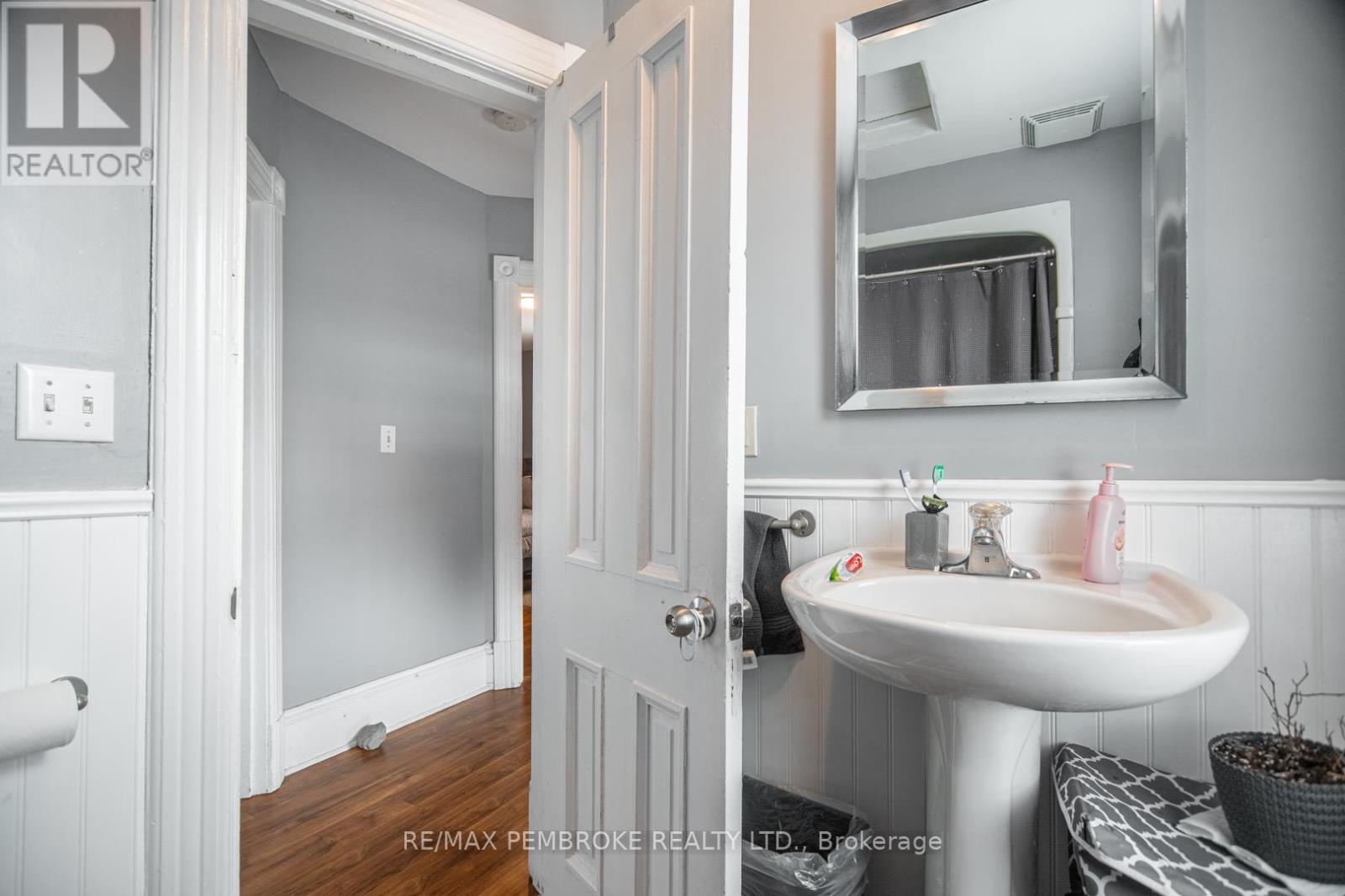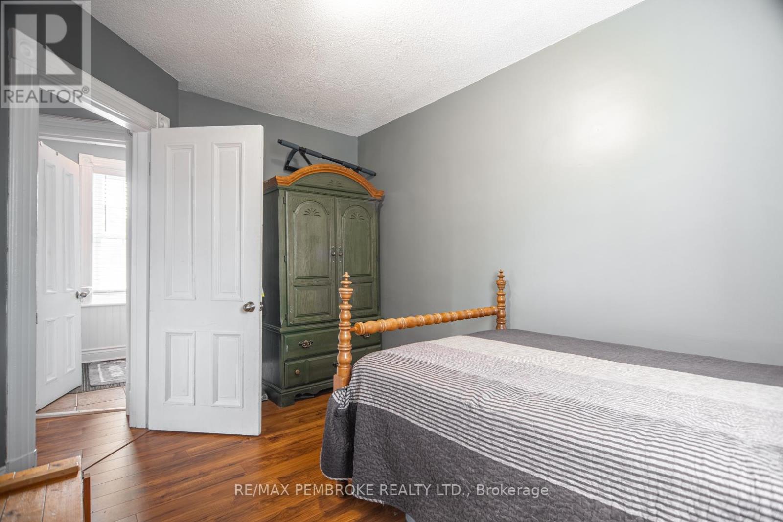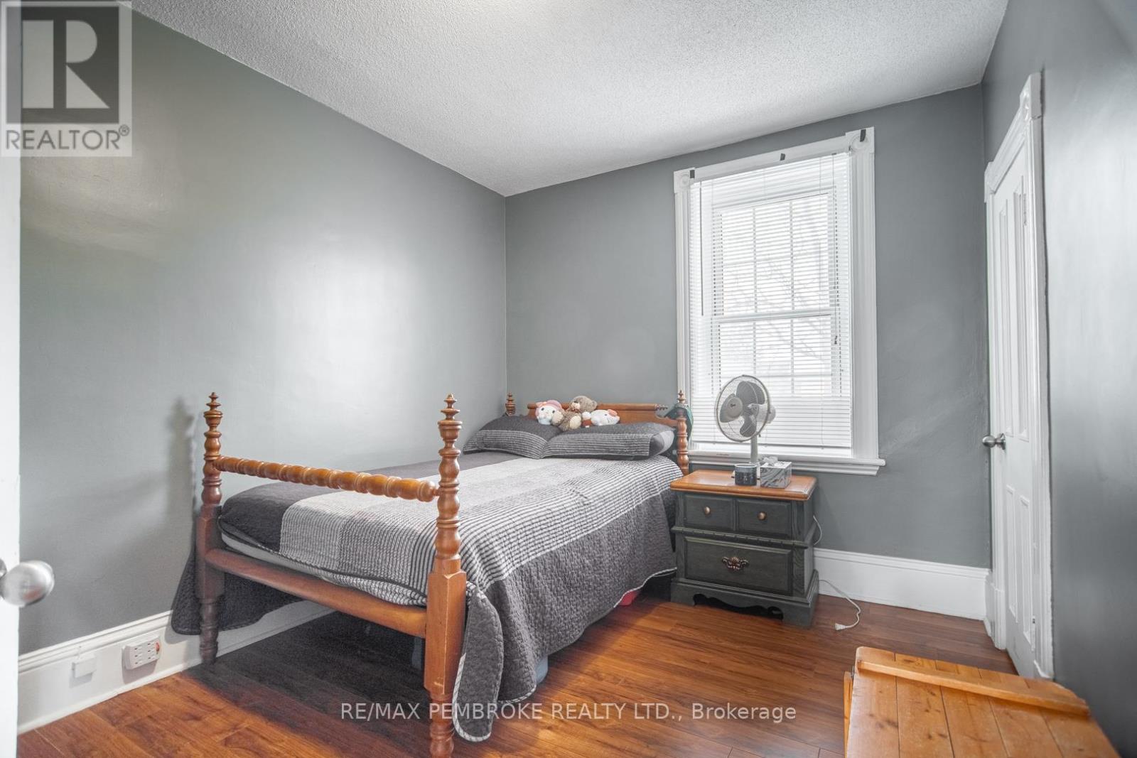This two-story home is a rare find, offering both affordability and convenience in a prime central location, just a leisurely stroll away from downtown Pembroke. Whether you're a first-time home buyer or looking to downsize, this property is a fantastic opportunity you won't want to miss. The main floor opens with a spacious foyer leading to a large kitchen with oak cupboards, providing ample storage, spacious dining and living areas with gleaming hardwood flooring throughout. The main floor also features a good sized mudroom with a convenient laundry area, making everyday chores a breeze and a bedroom complete with a full en-suite. The second floor has 2 good sized bedrooms, also with hardwood flooring and a full bathroom. One of the bedrooms leads to a charming balcony perfect for a morning coffee or evening glass of wine. The full basement is perfect for all your storage needs, offering plenty of space to keep your belongings organized and out of sight. The property features 2 separate driveways for easy access and lots of guest parking, a fenced in green space and a storage shed which offers additional space for your tools and hobbies. Relax on the front veranda or cozy up with a book in the enclosed side porch. Enjoy the close proximity to shops, restaurants, parks, and community events that make Pembroke a desirable place to call home. At this price, this home offers a great opportunity to invest in your future. Book your viewing today! 48 hour irrevocable on offers. (id:64974)