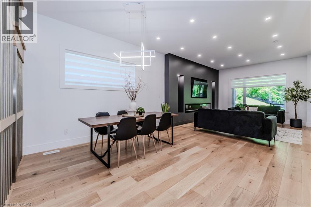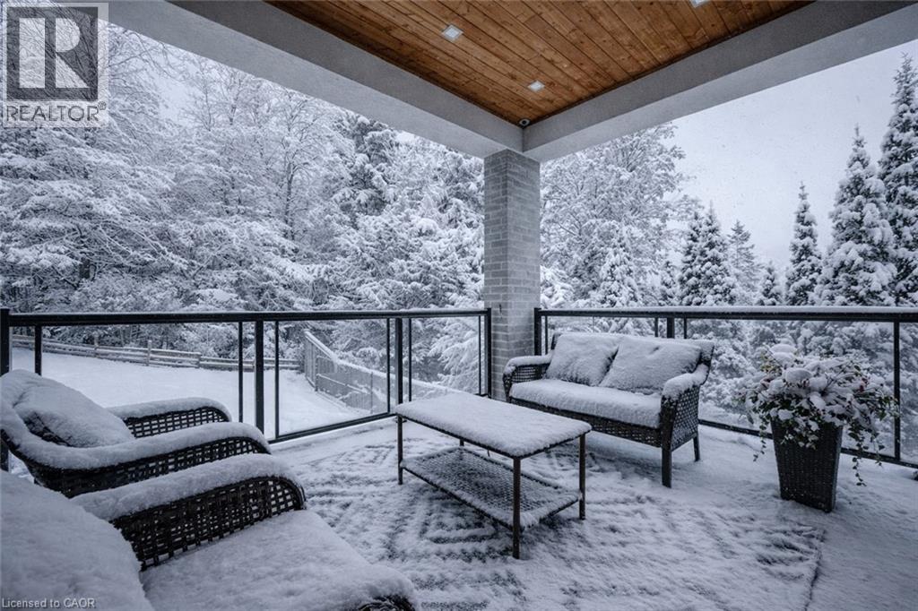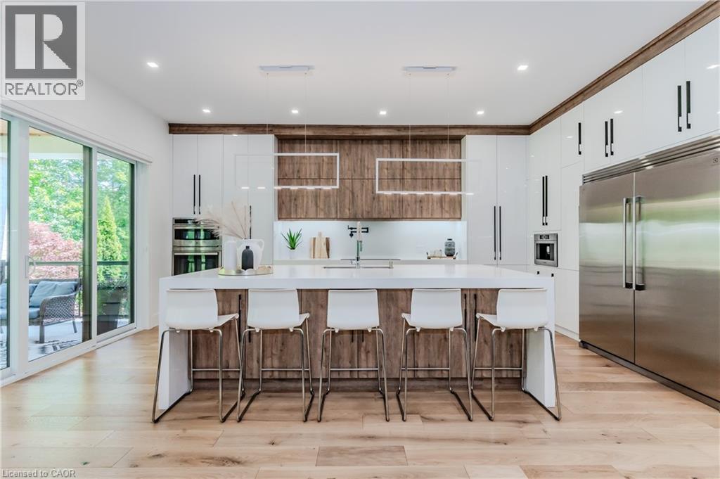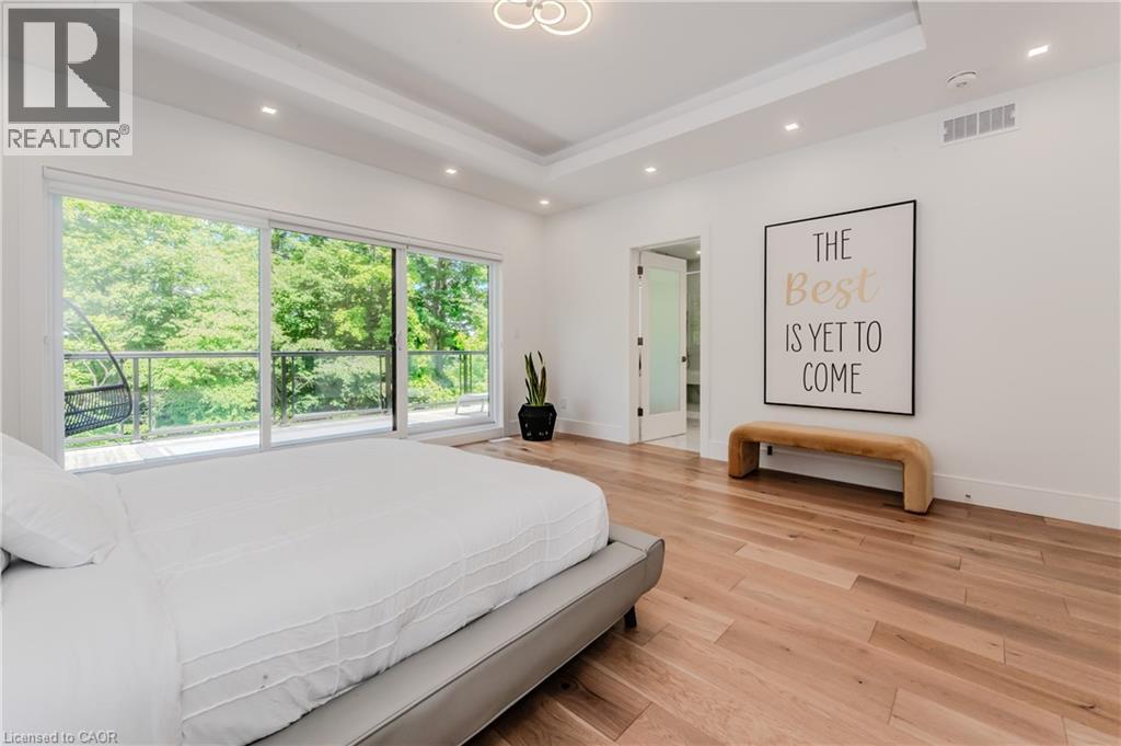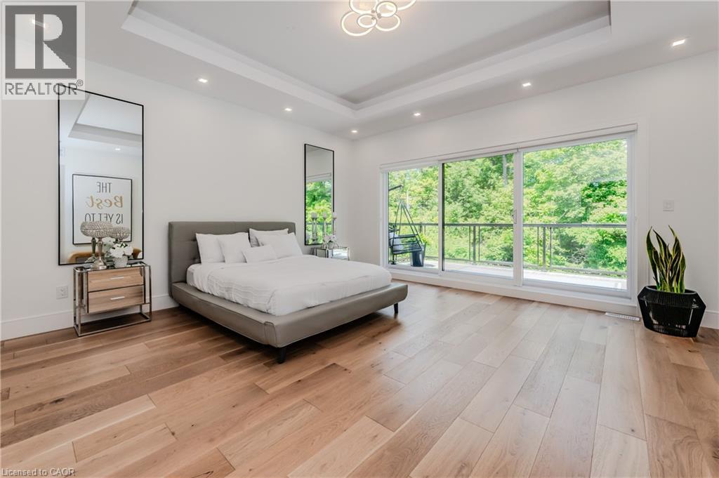 Welcome to your dream home! This stunning modern 2-storey residence offers over 4000 sq. ft. of luxurious living space with 5 bedrooms and 5 bathrooms. Step inside to 10-foot ceilings on the main floor, creating an airy, open feel. The custom kitchen is a chef's delight, featuring floor-to-ceiling cabinets, stainless steel appliances, a built-in double fridge, and a top-notch coffee machine. Beautiful hardwood floors flow throughout, complementing the stylish glass railing and wood staircase. Enjoy cozy moments by one of the two fireplaces, and relax on one of two balconies upstairs, where 9-foot ceilings enhance the spaciousness and offer serene forest views. The large covered porch provides the ideal spot for outdoor entertaining. Downstairs, a fully finished basement with 9-foot ceilings includes an additional bedroom, full bathroom, and two spacious cold rooms. The exposed concrete driveway leads to an expansive garage with high ceilings—perfect for car enthusiasts who may wish to install a hoist system. With upgraded trim, doors, and meticulous attention to detail, this home combines elegance and modern comfort in every corner. Don’t miss this opportunity to own a true gem of luxury living! (id:64974)