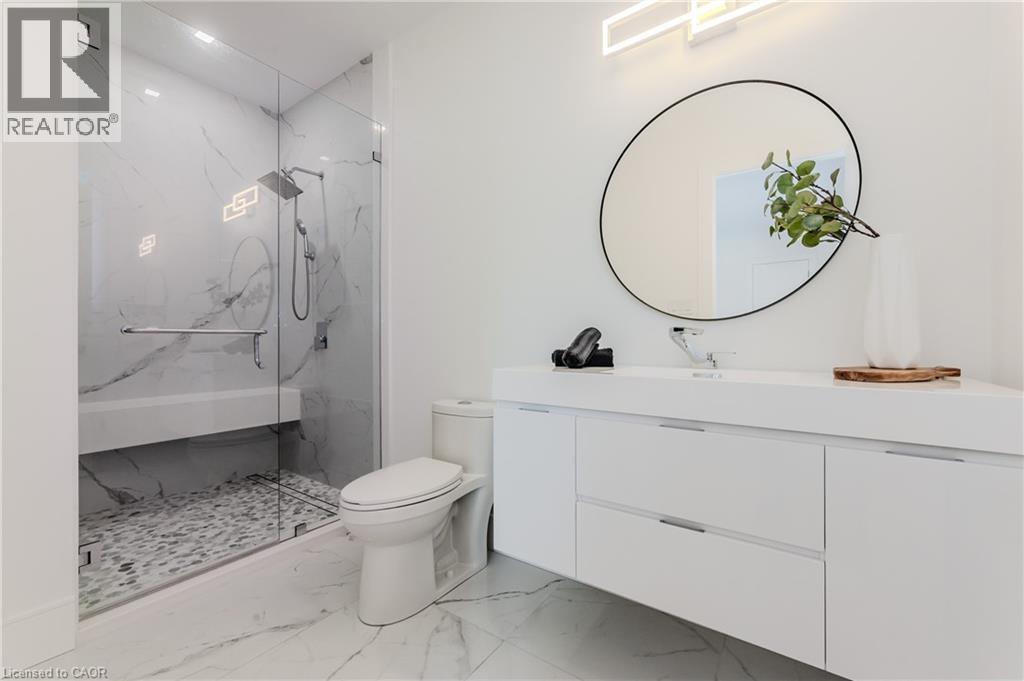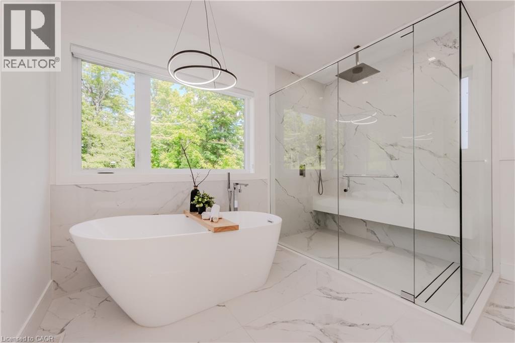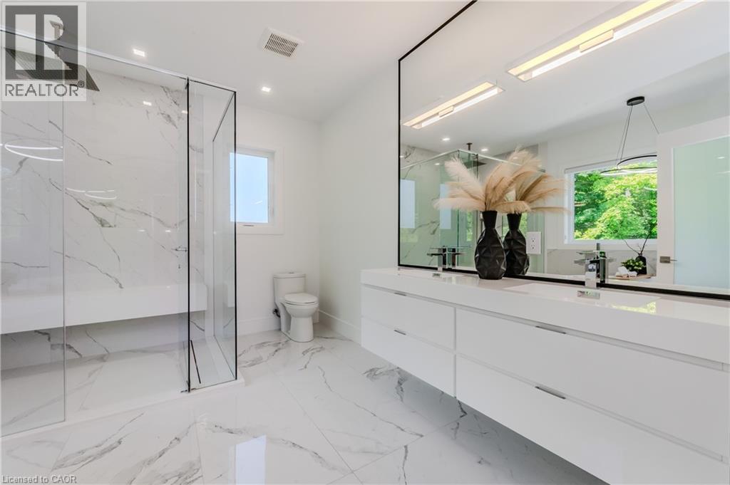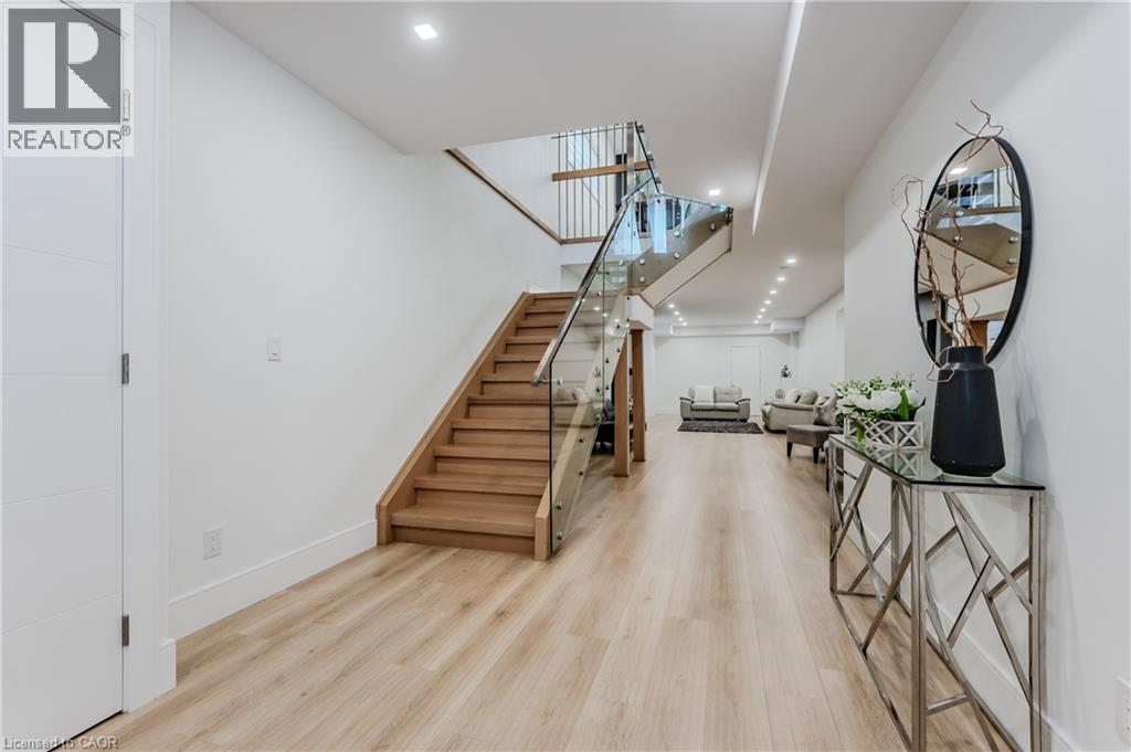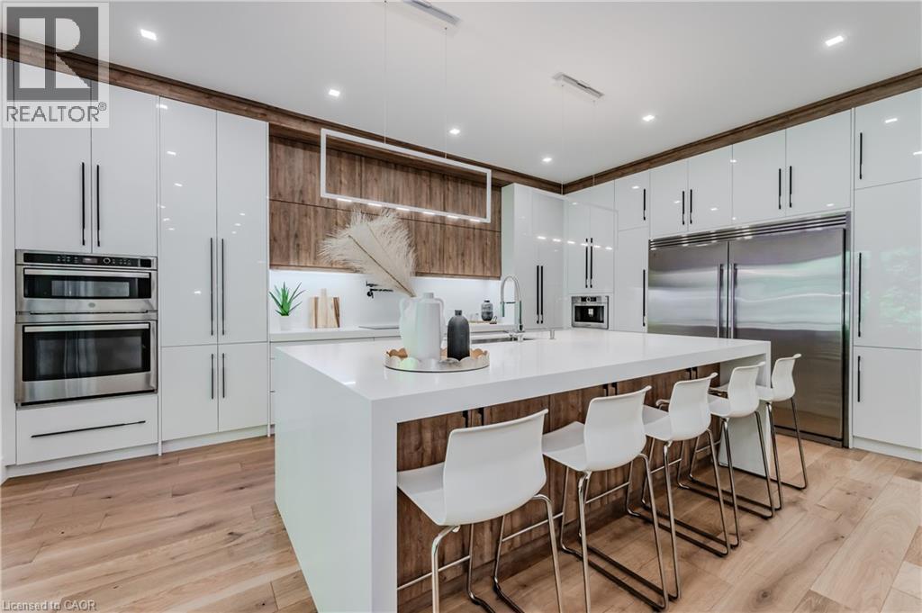 Welcome to your dream home! This stunning modern 2-storey residence offers over 4000 sq. ft. of luxurious living space with 5 bedrooms and 5 bathrooms. Step inside to 10-foot ceilings on the main floor, creating an airy, open feel. The custom kitchen is a chef's delight, featuring floor-to-ceiling cabinets, stainless steel appliances, a built-in double fridge, and a top-notch coffee machine. Beautiful hardwood floors flow throughout, complementing the stylish glass railing and wood staircase. Enjoy cozy moments by one of the two fireplaces, and relax on one of two balconies upstairs, where 9-foot ceilings enhance the spaciousness and offer serene forest views. The large covered porch provides the ideal spot for outdoor entertaining. Downstairs, a fully finished basement with 9-foot ceilings includes an additional bedroom, full bathroom, and two spacious cold rooms. The exposed concrete driveway leads to an expansive garage with high ceilings—perfect for car enthusiasts who may wish to install a hoist system. With upgraded trim, doors, and meticulous attention to detail, this home combines elegance and modern comfort in every corner. Don’t miss this opportunity to own a true gem of luxury living! (id:64974)