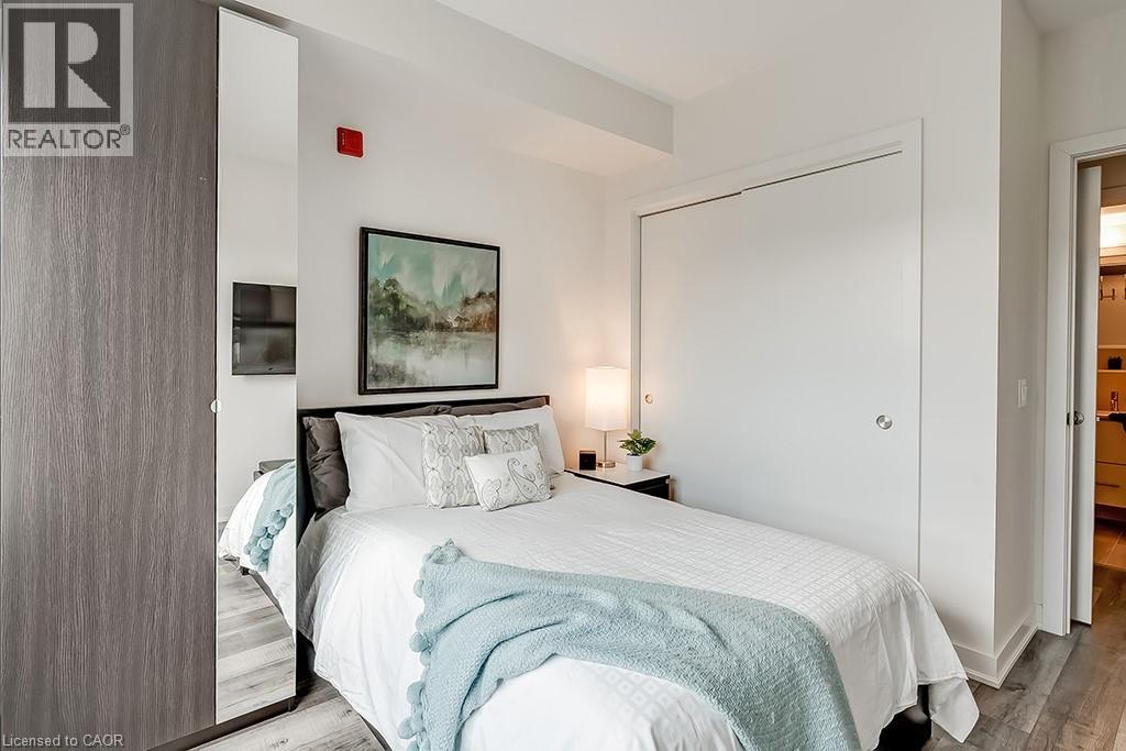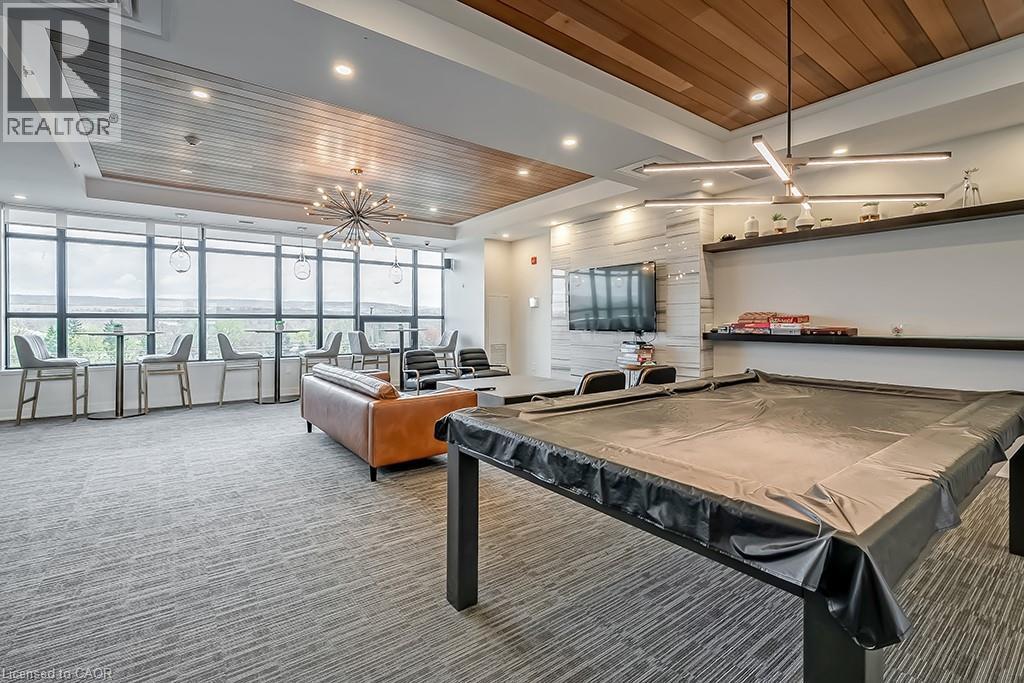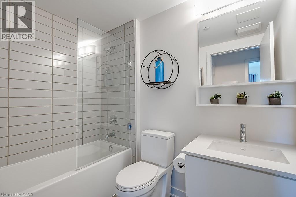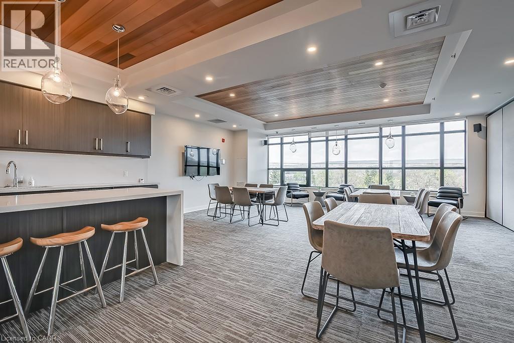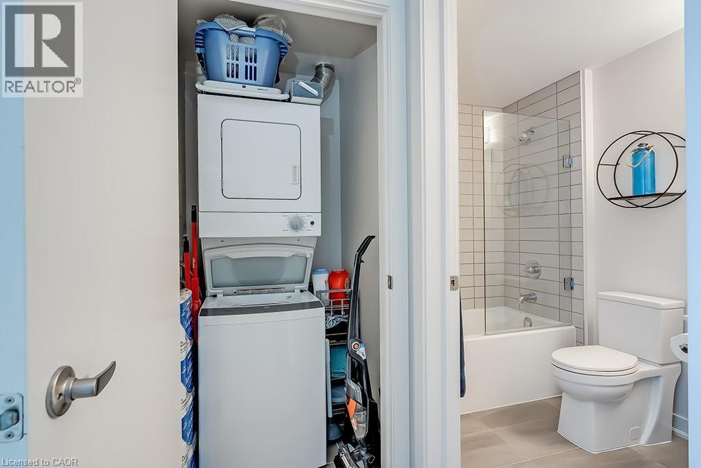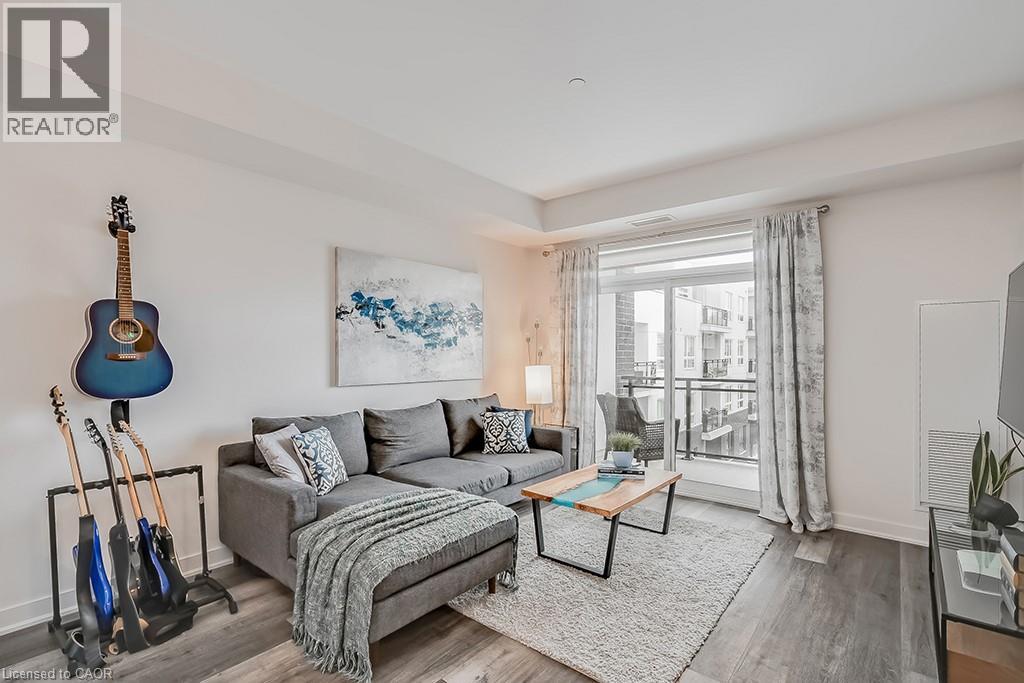Stunning one bedroom + den suite at Affinity in Aldershot! Custom kitchen with quartz, stainless steel appliances, breakfast bar and glass subway tile backsplash. Open concept living with 9' ceilings, in-suite laundry, 4-piece bathroom and spacious private balcony. Steps to the GO station, RBG, marina, library, schools and Burlington Golf & Country Club. One underground parking space and one storage locker on unit level. Building amenities include loads of visitor parking, electric car charging station, rooftop terrace with BBQs, gym, yoga room and party room! (id:64974)