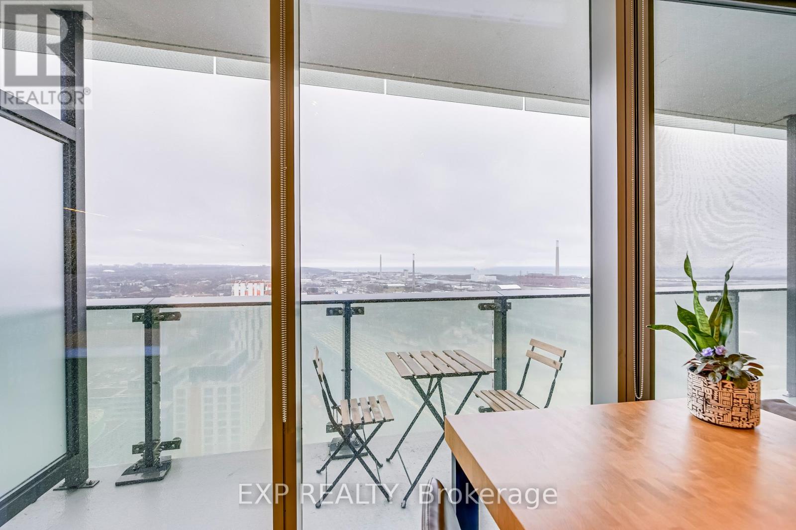 Stunning Modern Condo Suite at the Iconic Gooderham Building > Enjoy Amazing Breathtaking S.E. City/Lake View From This Exception Unit In The Heart Of The Historic Distillery District >> Steps To Charming Cafés, Impressive Restaurants, Art Galleries, Theaters, St. Lawrence Market, Canary District, Christmas Market, Ymca & Convenient Public Transit >> Carpet-Free Home Features Functional Open Concept Layout, Hardwood flooring Thru-out, Floor-To-Ceiling Windows, Full-Size Stainless Steel Appliances In The Sleek Chef's Kitchen, An Open Concept Workspace Den, Spacious Bedroom With Large Closet & Bright Living Room Access To A Large Balcony Perfect For Relaxing & Entertaining >> Just Pack & Move In To Experience The Vibrant City Life In One Of Toronto's Most Desirable Neighborhoods All Year Round; And To Enjoy The Top-Tier Building Amenities Including Outdoor Pool, Exercise Rm, Party Rm, Media Rm, Pool Tables, Outdoor Pool, Yoga Studio, Garden Bbq, 24 Hrs Concierge/Security & More...> **DON'T MISS THIS SWEET HOME For Professional & A Lovely Couple >> No Pet & Non-Smokers.> (id:64974)