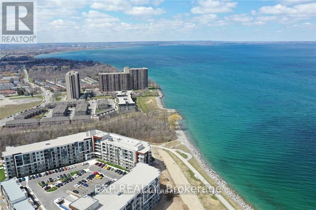 Welcome to Sapphire Condos. This beautifully designed 1 bedroom + den suite includes parking and a locker and offers 688 sq. ft of bright, functional living space. Floor-to-ceiling windows flood the home with natural light, complementing the open-concept layout and walk-out to a private balcony. The spacious bedroom features a walk-in closet, while the den provides an ideal work-from-home setup or flexible living area. Finished with upgraded quartz countertops, a modern vanity, and in-suite laundry, this condo delivers both style and convenience. Perfectly situated on the shores of Lake Ontario with quick access to the GO Station, QEW, and Lincoln Alexander Parkway, making it an excellent choice for commuters and waterfront lifestyle seekers alike. (id:65010)