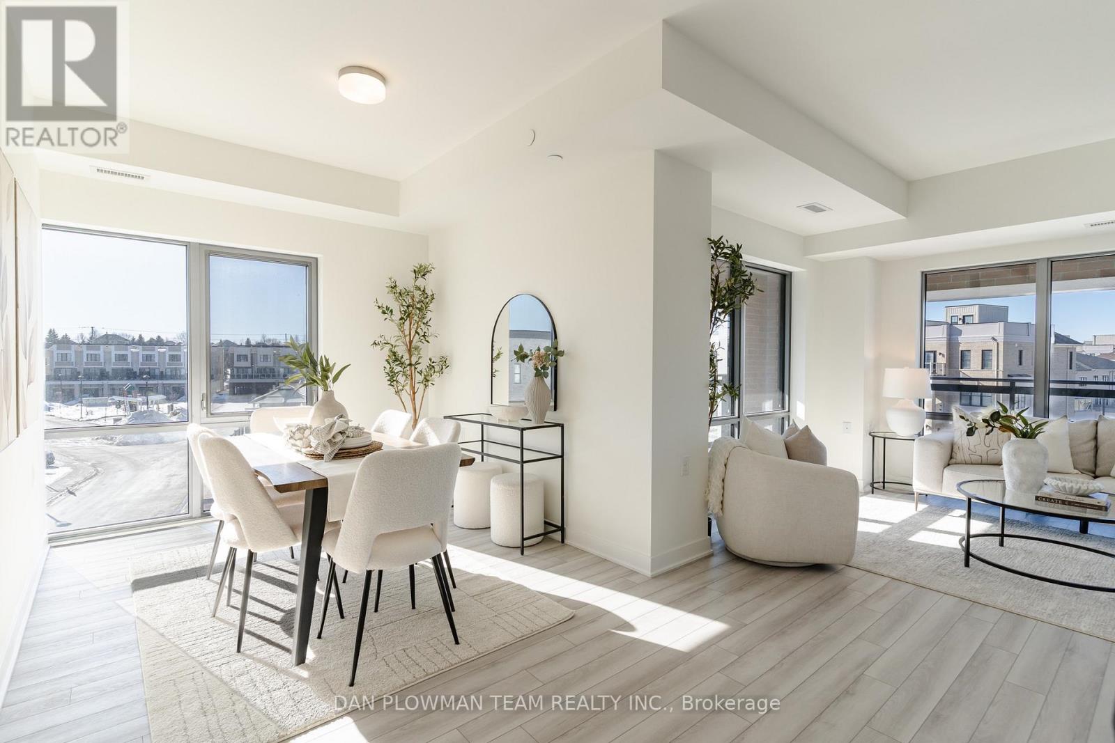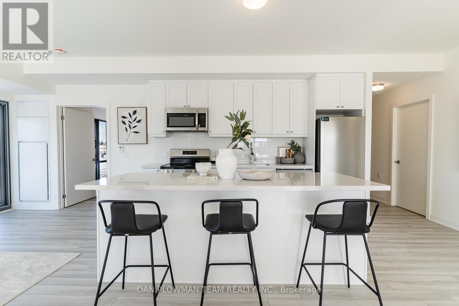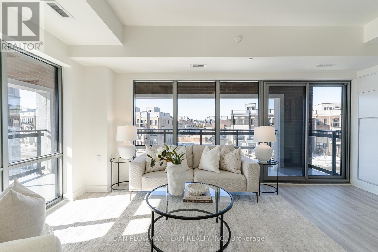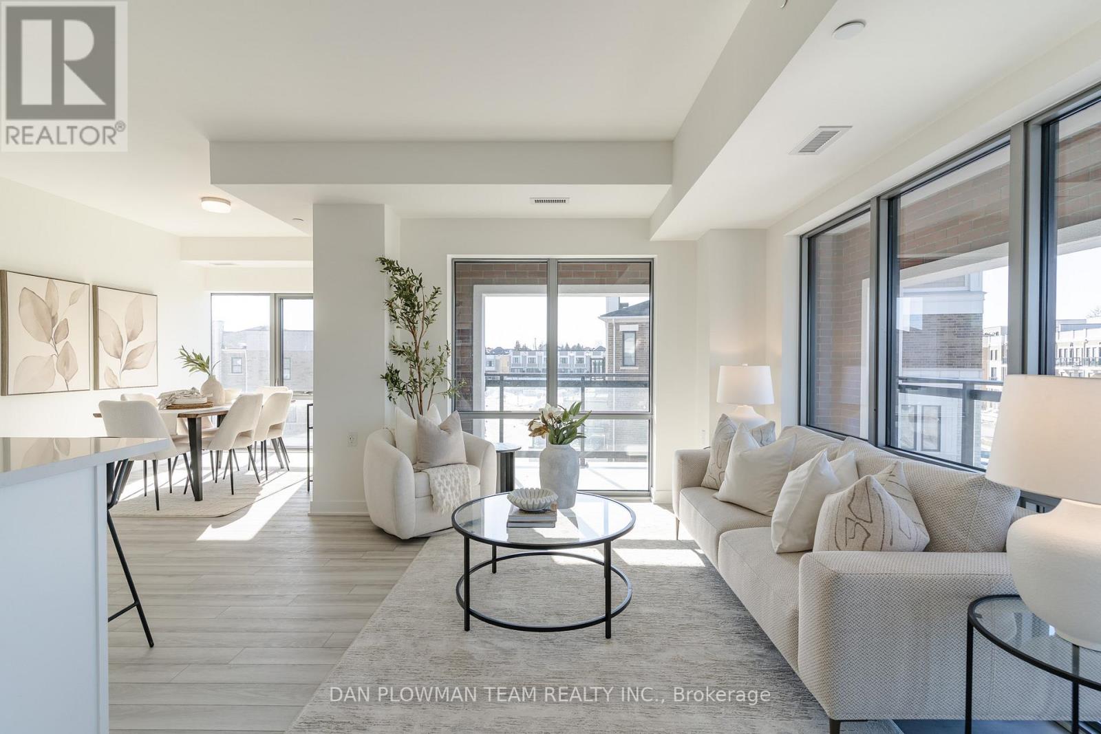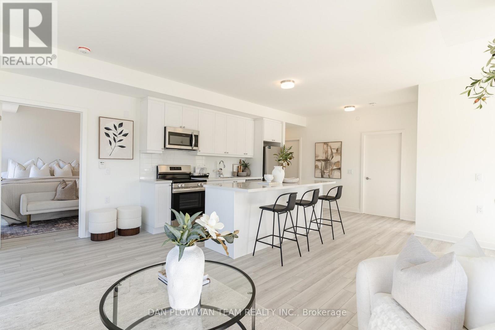 Be The First To Call This Stunning 1100+ Sq Ft Corner Condo Home In One Of Bowmanville's Most Beautiful New Buildings. Never Lived In And Finished With Today's Most Sought-After Upgrades, This Bright Two-Bedroom Plus Den Suite Blends Style And Function In All The Right Ways. Vinyl Plank Flooring Flows Throughout The Open-Concept Layout, Anchored By A Sleek Kitchen With Quartz Counters And A Large Centre Island Made For Gathering. Floor-To-Ceiling Windows Flood The Space With Natural Light And Lead To An Impressive L-Shaped Northwest-Facing Balcony Perfect For Sunsets. The Primary Suite Features Its Own Three-Piece Ensuite, While A Versatile Den Offers The Ideal Home Office Or Flex Space. Enjoy A Concierge-Attended Lobby, Yoga And Fitness Studios, Games And Party Rooms, Library, Board Room, Outdoor Terrace, Lounge, And Dining Areas. Underground Parking Included. Walking Distance To The Future Bowmanville Go Station, Shopping Entertainment And Dining. (id:64974)