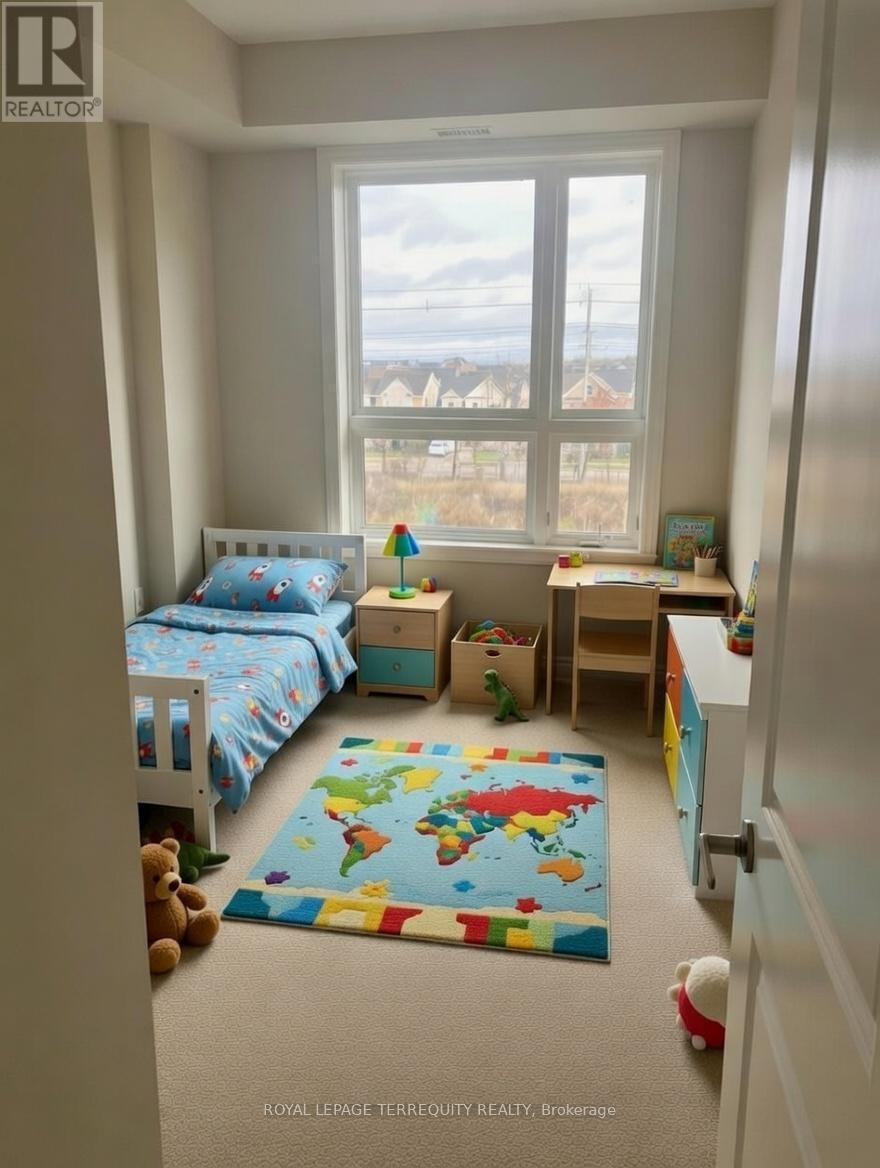 Welcome to the sought-after Beaty neighbourhood! This spacious and beautifully maintained 2- bedroom, 2-bathroom condo offers modern living with comfort and convenience in mind. Featuring 9-foot ceilings and oversized windows, this bright open-concept layout is filled with natural light, creating a warm and inviting atmosphere throughout. The modern kitchen is equipped with stainless steel appliances and seamlessly overlooks the generous living and dining area-perfect for entertaining or relaxing at home. Step out from the living room onto your private, ravine facing balcony, ideal for morning coffee or evening unwinding. The primary bedroom retreat boasts a walk-in closet and a 4-piece ensuite, while the second bedroom offers flexibility for guests, a home office, or growing families. Enjoy the convenience of one underground parking space, visitor surface parking, and fantastic building amenities including a fully equipped exercise room, party room, and stunning rooftop terrace. Ideally located on Sauve Street directly across from Irma Coulson Public School, and just minutes to parks, shopping, Milton Transit, the GO Train, and quick access to Hwy 401. This exceptional condo is perfect for first time buyers, professionals, downsizers, or small families seeking style, space, and a prime location. A wonderful opportunity to own in one of Milton's most desirable communities! Original Tenants From 2018 Willing To Stay. Images are virtually staged so not to show tenants personal belongings. (id:64974)