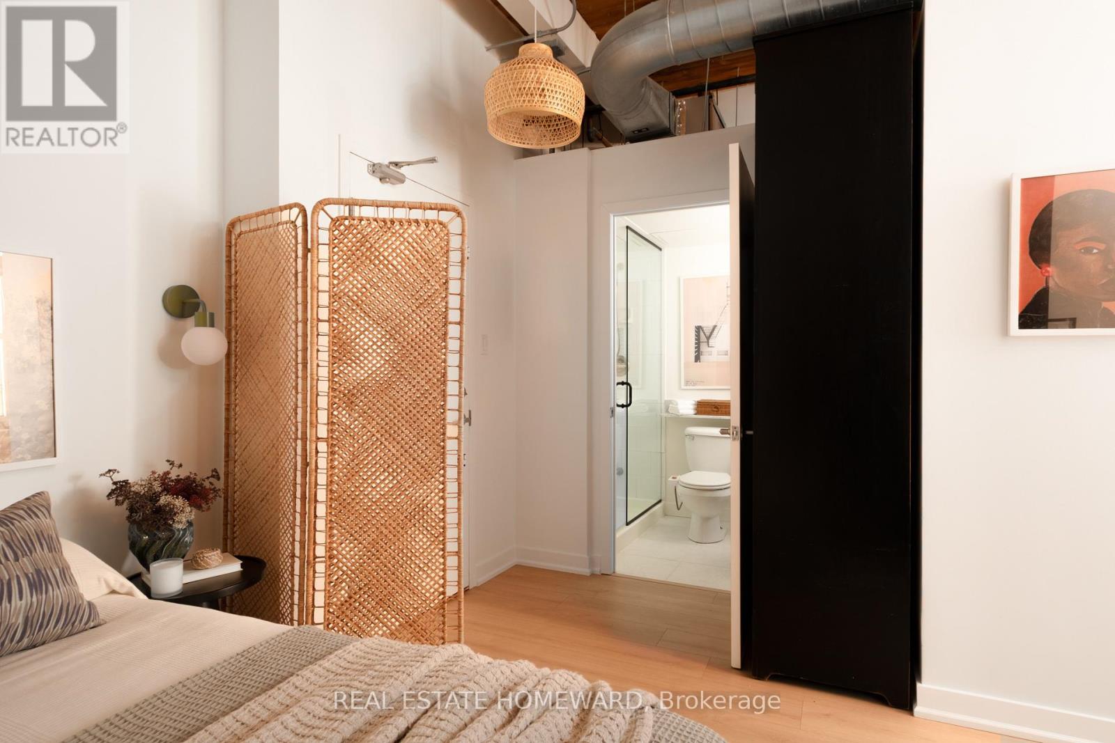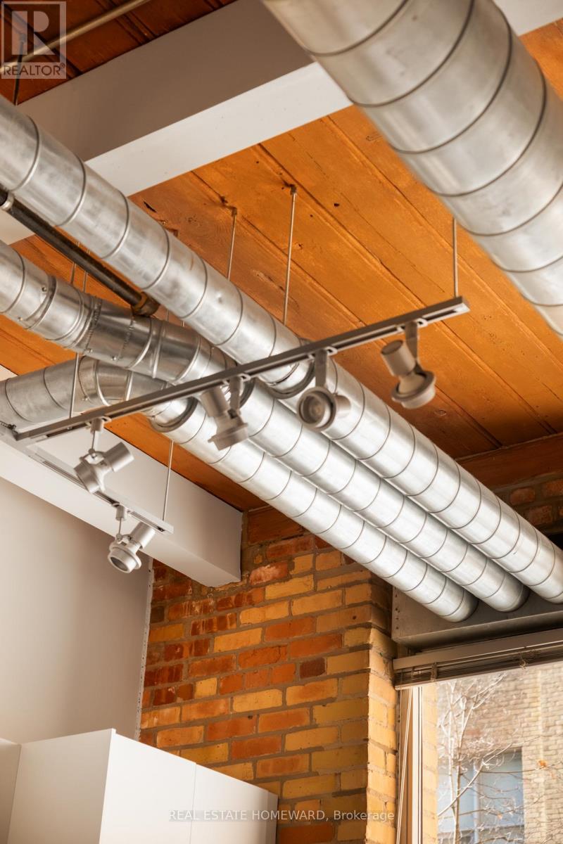 A true hard loft in one of Queen West's most iconic addresses - the Chocolate Company Lofts. Opportunities here are rare, and this newly refreshed suite is a standout. This thoughtfully renovated home pairs authentic brick-and-beam character with meaningful modern upgrades. Soaring ceilings, exposed brick, original wood beams, and oversized windows showcase the industrial charm loft lovers seek - now elevated with carefully selected improvements that make the space entirely move-in ready. The open-concept living, dining, and kitchen area has been completely reimagined with new flooring, brand-new cabinetry and countertops, and a newly installed heat pump ($8,500) provides efficient year-round heating and cooling. The kitchen offers space to dine in, while the generous living area allows for various flexible configurations (see various layouts in the photography). The washroom has been updated with a sleek new glass shower enclosure, adding a polished, contemporary finish. The bedroom is well proportioned and quietly tucked away, offering comfortable separation and ample closet space. In-suite laundry adds everyday practicality. Located directly across from Trinity Bellwoods Park, the setting is truly exceptional. Step outside to enjoy the very best of Queen West - acclaimed cafés, restaurants, boutiques, and convenient transit - all with the park as your front yard. A rare chance to own a renovated hard loft in a landmark building - where historic character meets modern comfort in one of Toronto's most coveted neighbourhoods. (id:64974)