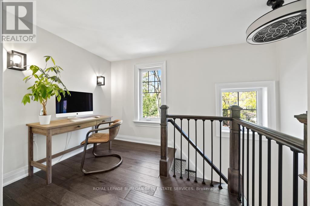 Welcome to this stunning, fully renovated character home in Burlington's prestigious Roseland community. Offering 4+1 spacious bedrooms and 3 beautifully updated bathrooms, this turnkey residence blends timeless charm with top-quality modern finishes throughout. Enjoy your 150 ft deep lot with minimal exposure to neighboring homes. Inside, you'll be impressed by the meticulous attention to detail, elegant design, and thoughtful updates that respect the home's original character while providing all the comforts of modern living. The open-concept kitchen and living space is ideal for family life and entertaining, while the finished basement with a fifth bedroom offers versatility for guests, a home office, or gym. Situated in the highly sought-after Tuck School District, this home is perfectly positioned just a short walk to Downtown Burlington, the lake, parks, shops, and restaurants - offering the ultimate in lifestyle and convenience. (id:64974)