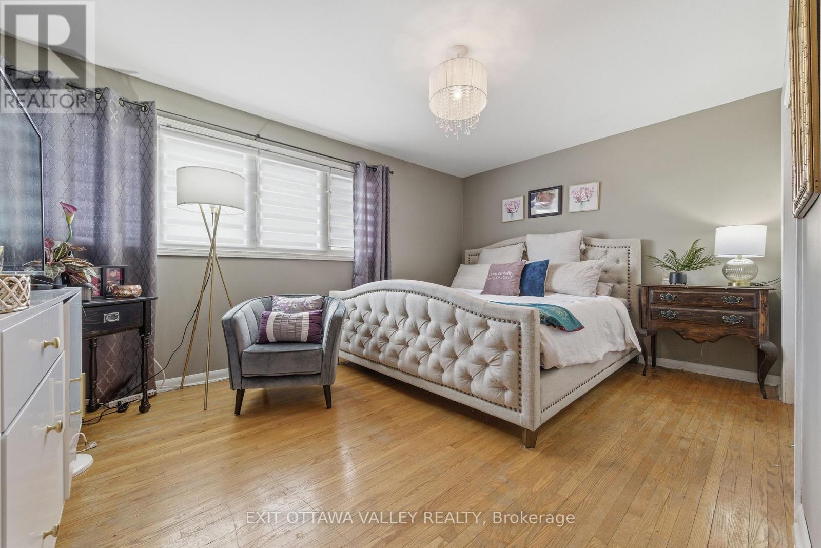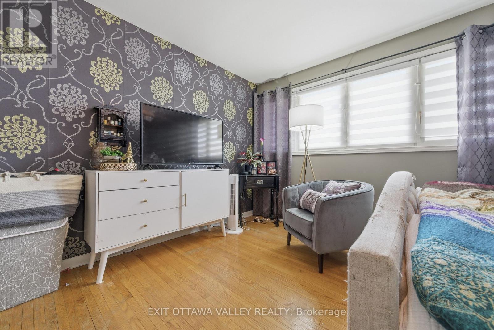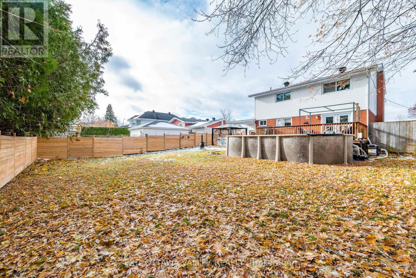 Welcome to this inviting 4-bdrm, 1.5-bathrm 2-storey home located in one of Pembroke's most desirable, well-established neighbourhoods. Warm, welcoming, designed for family living, this property blends classic charm with thoughtful modern updates. The spacious tiled foyer sets the tone, offering a bright & practical entrance w excellent storage options. Original hardwood flooring extends throughout both the main and 2nd levels, adding character/timeless appeal. Large eat-in kitchen provides plenty of room for meal prep & gathering, while the separate dining area features a patio door that opens to the deck - perfect for summer barbecues & taking in the view of the fully fenced yard. Step outside to enjoy your own private retreat complete with a 12' x 24' above-ground oval salt water pool with gas heater (2021), and a relaxing Hydropool hot tub (2021) tucked beneath a gazebo for year-round relaxation. Extra deck boards will remain, all Hampton Bay light fixtures throughout the home elevate the overall aesthetic, appliances will stay. Upstairs, 4 large comfortable bedrooms offer room for everyone, not to mention decent size closets! Main level includes an electric fireplace for added ambiance, while the lower-level recreation room showcases a beautiful fieldstone fireplace-stunning in appearance, currently used for decorative purposes only. Imp updates incl roof shingles replaced approx 3 yrs ago, forced-air natural gas furnace installed 2019. The attached garage adds convenience, while the interlock walkway, covered front entrance, & asphalt driveway enhance curb appeal. With brick & vinyl siding, this home is as durable as it is charming. Close to schools, shopping, amenities, this is an ideal choice for families seeking space, comfort, and a fantastic neighbourhood to call home. *further updates in progress: windows & new front door with sidelight on order from Valley Windows and Doors, garage to be painted to match, some interior painting in progress!* (id:64974)