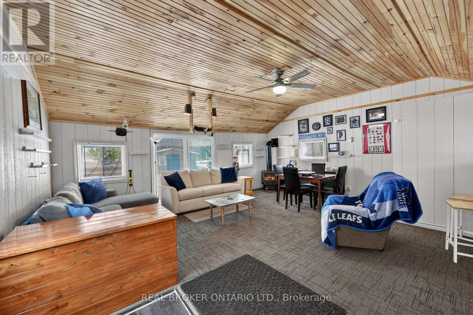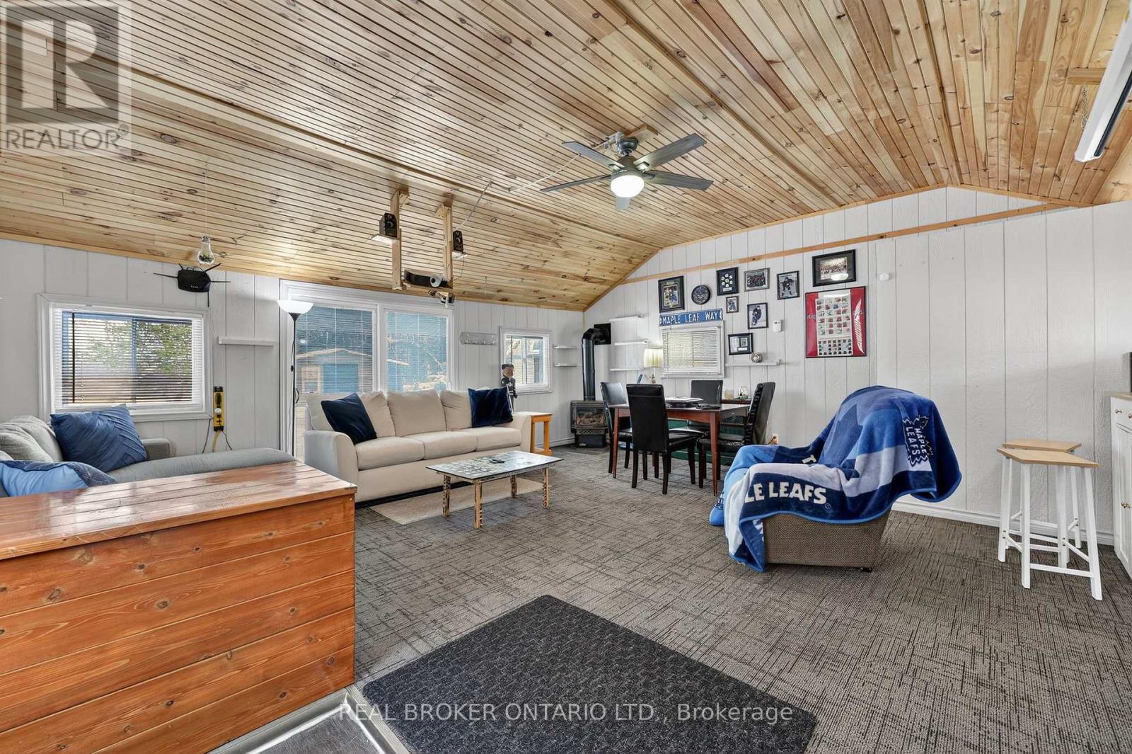 This thoughtfully updated century home in Hawkstone offers the perfect blend of character, functionality, and modern comfort, ideally located just 15 minutes north of Barrie and only 5 minutes from Orillia. Set on a generous lot backing onto parkland, the property provides privacy, space, and easy access to outdoor recreation.The two-bedroom, one-and-a-half-bath home has been tastefully updated while maintaining its warm appeal. Features include a modernized kitchen, new waterproof/scratch-resistant flooring, an updated bathroom, some newer appliances, new window coverings. Family room features a cozy gas stove, creating a comfortable gathering space. Additional upgrades to the house include vinyl windows, new insulation, new vinyl siding (2025/2025) with fresh trim paint, a steel roof (2015) , a high-efficiency gas furnace, and a newer iron-out/water softener system. The outdoor space is equally impressive and highly versatile. A fully renovated detached garage has been transformed into an exceptional recreation and family space (2022). Fully insulated, it features new vinyl siding, soffit and fascia, a steel roof, new windows, a sliding patio door, a propane gas fireplace, electricity, and a dedicated IT line from the house for reliable internet-ideal for gaming, streaming, hobbies, or additional living space.Three additional outbuildings provide excellent storage and flexibility, including a new tool/work shed in 2021, new garden shed 2025, new bunkie-style playhouse shed 2023, all with vinyl siding and steel roofs.The large parking area offers plenty of space for vehicles and guests, while the expansive yard provides room for gardening, outdoor games, or relaxing around evening campfires.Located just steps from the park, beach, pier, community centre, rail trail, and local corner store, this versatile property offers small town charm in coveted Hawkestone with convenient access to Barrie and Orillia. (id:64974)